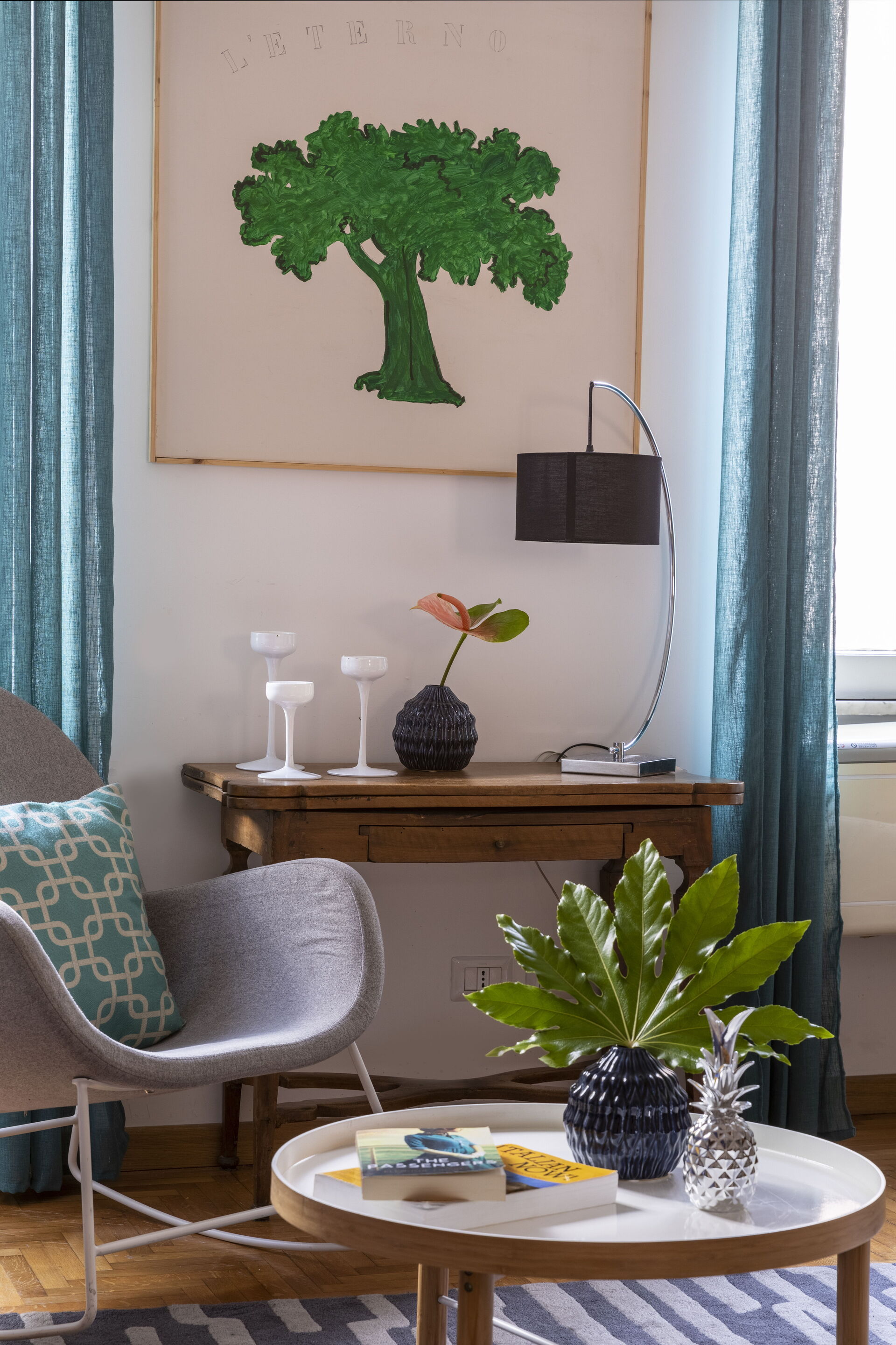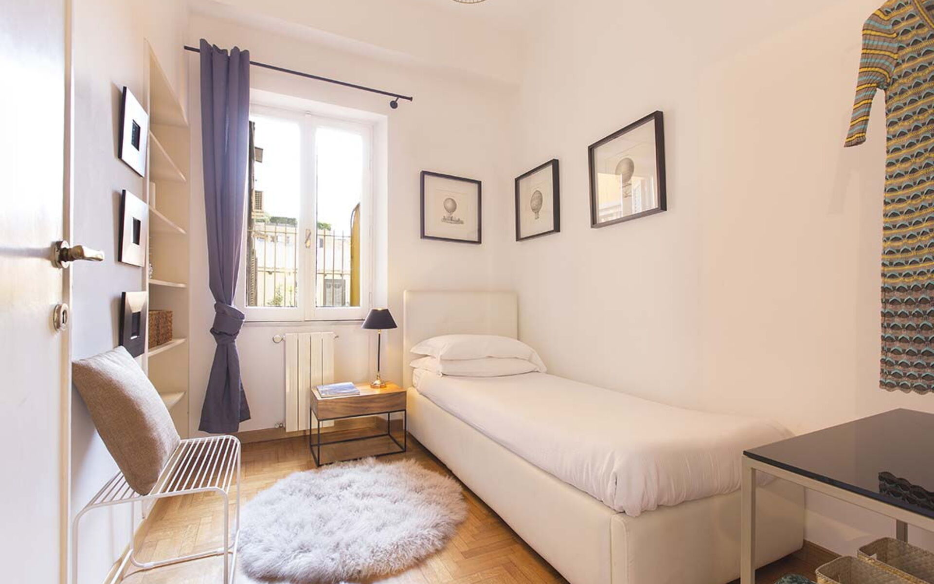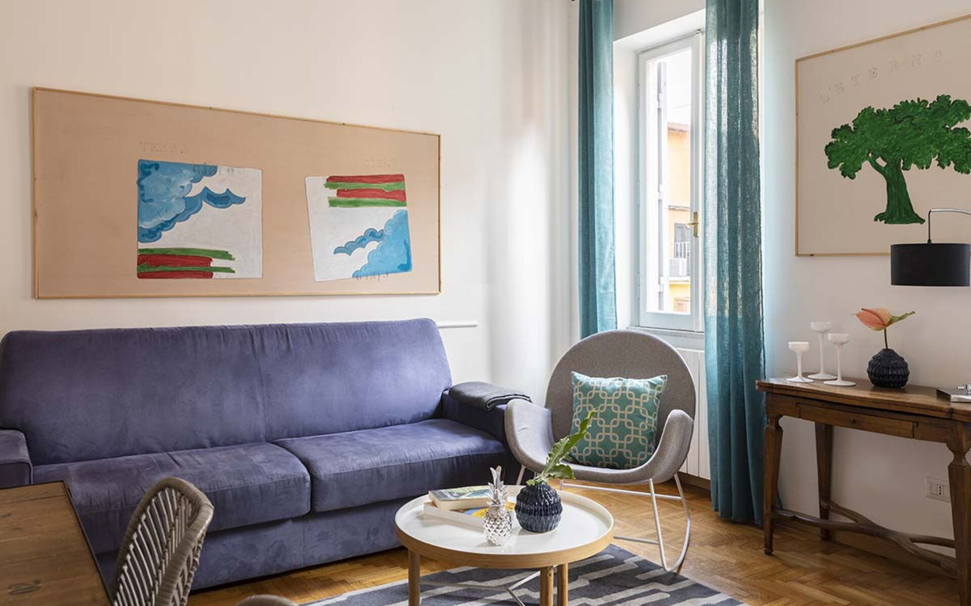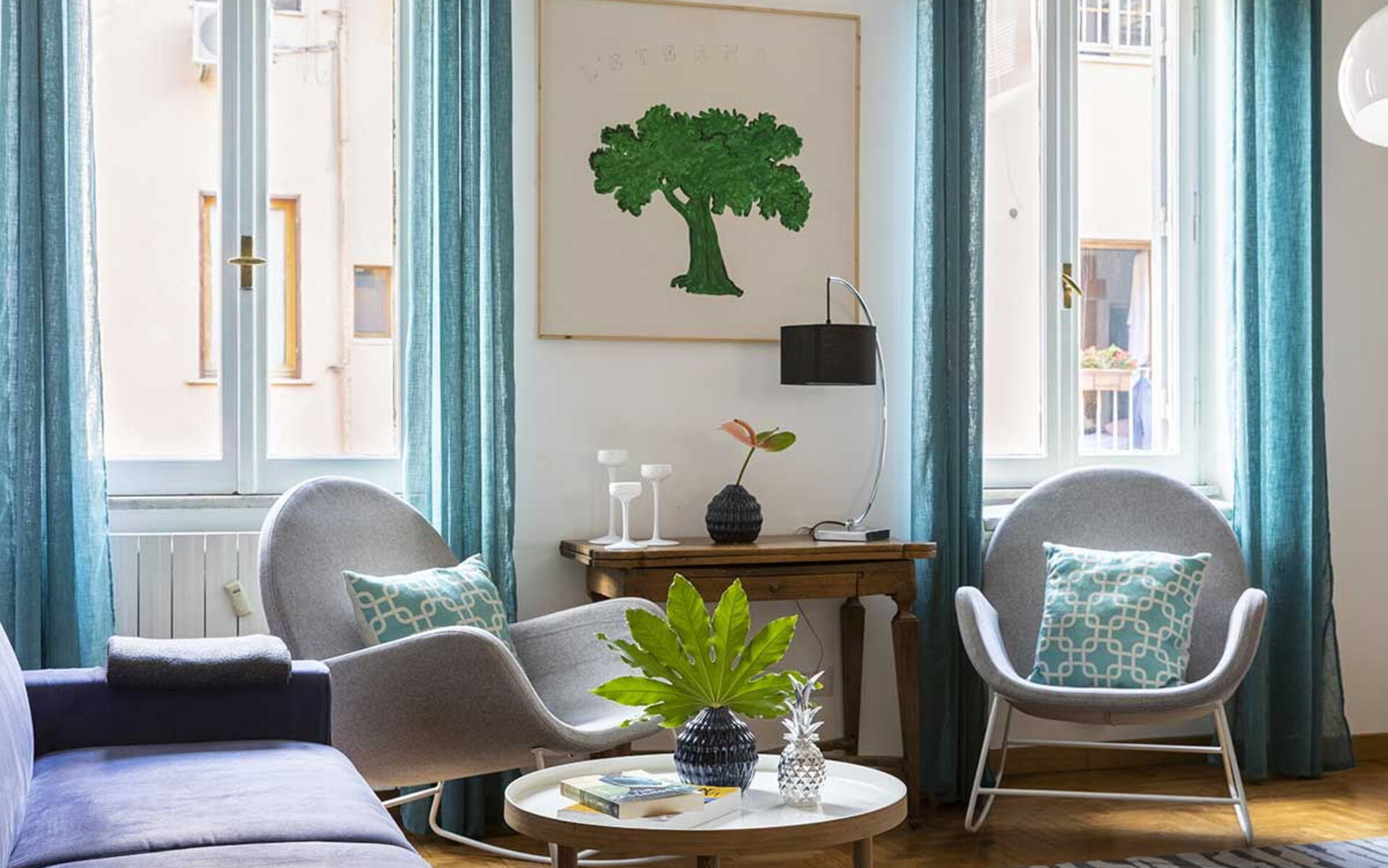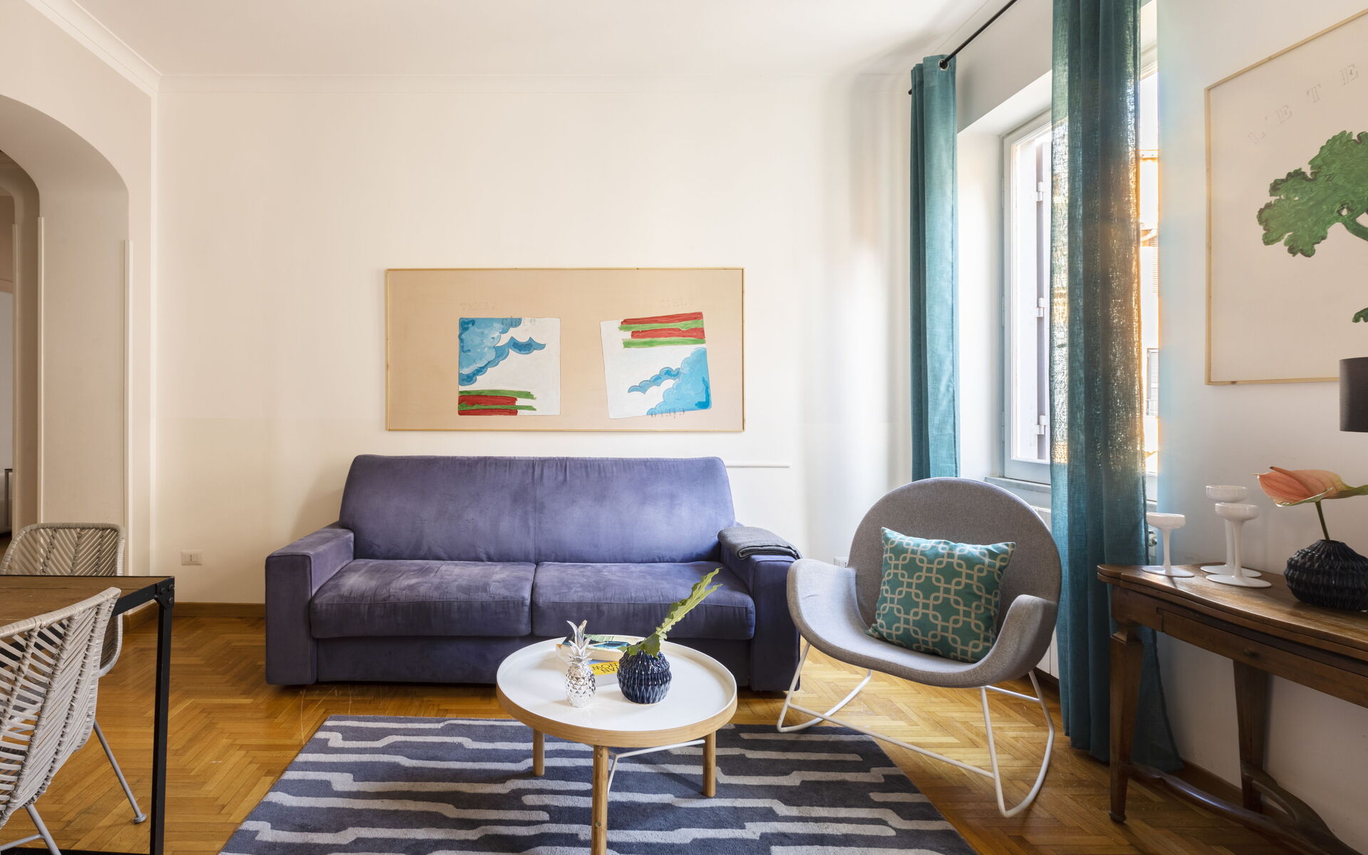 bietet diese Wohnung die Möglichkeit, das authentische italienische Dolcevita zu erleben, mit dem Vorteil, dass mehrere Restaurants, Konditoreien und Promenaden zu Fuß erreichbar sind. Die Gegend gilt als das zentrale Einkaufsviertel Roms, in dem sich Designerboutiquen und exklusive Geschäfte befinden. Das Design des Hauses, das auf der Erforschung des historischen Kontextes basiert, führt zu einem zeitgenössischen Stil mit weißen Wänden und hohen, hellen Fenstern, die zur ruhigen Seite des Gebäudes zeigen. Elemente der klassischen italienischen Wohnarchitektur, wie die verglaste Veranda und der kleine Innenhof, werden mit zeitgenössischen, skandinavisch inspirierten Akzenten kombiniert, wie der gut ausgestatteten Küche, den Holzböden und Möbeln, die Vintage, Modernität und Eleganz miteinander verbinden. Ein schicker Rückzugsort voller gemütlicher Atmosphäre, der traditionelle und moderne Architektur miteinander verbindet. Das Innere des Anwesens misst 110 Quadratmeter und bietet Platz für 2 weitere Personen auf einem Schlafsofa im Wohnzimmer.