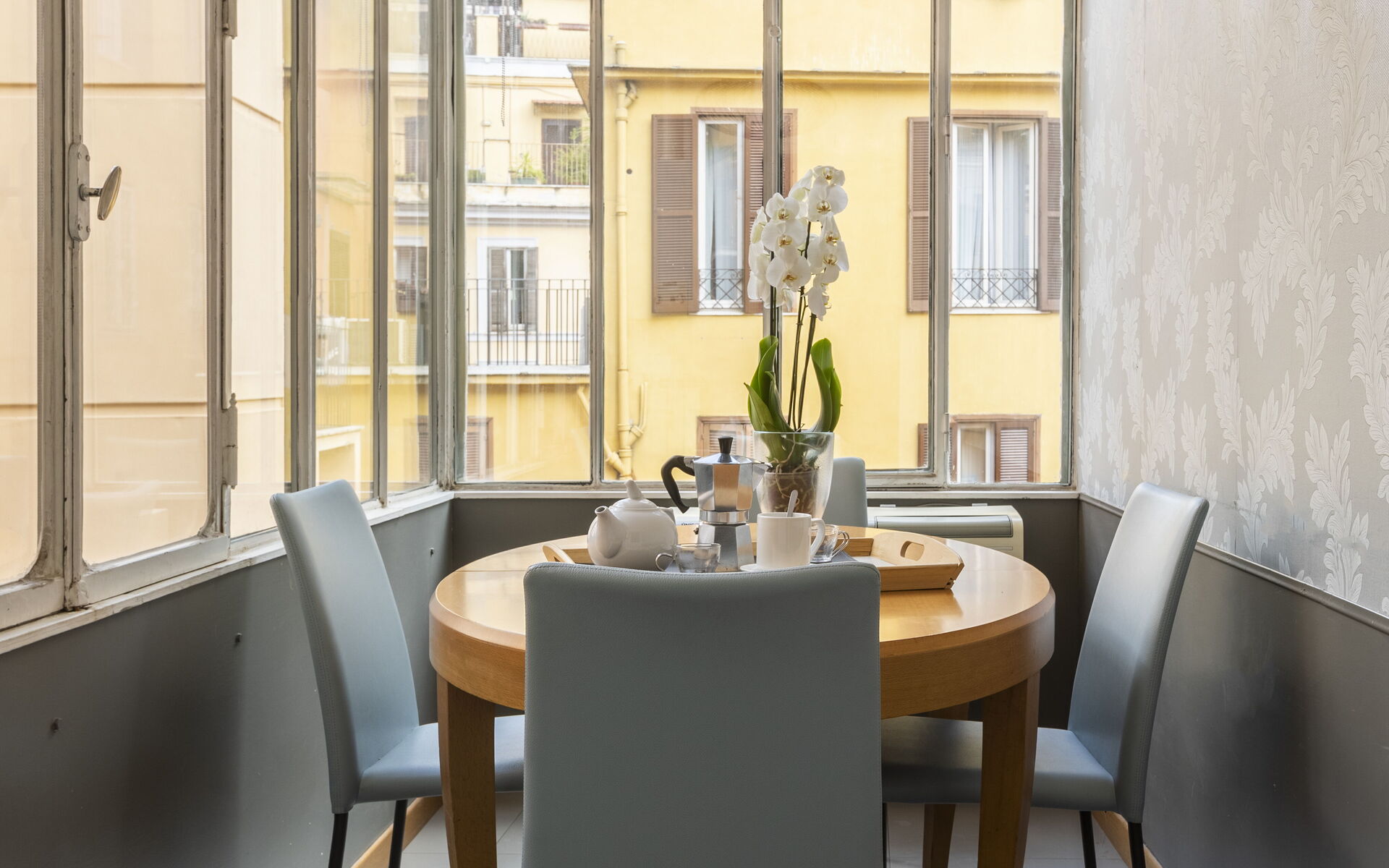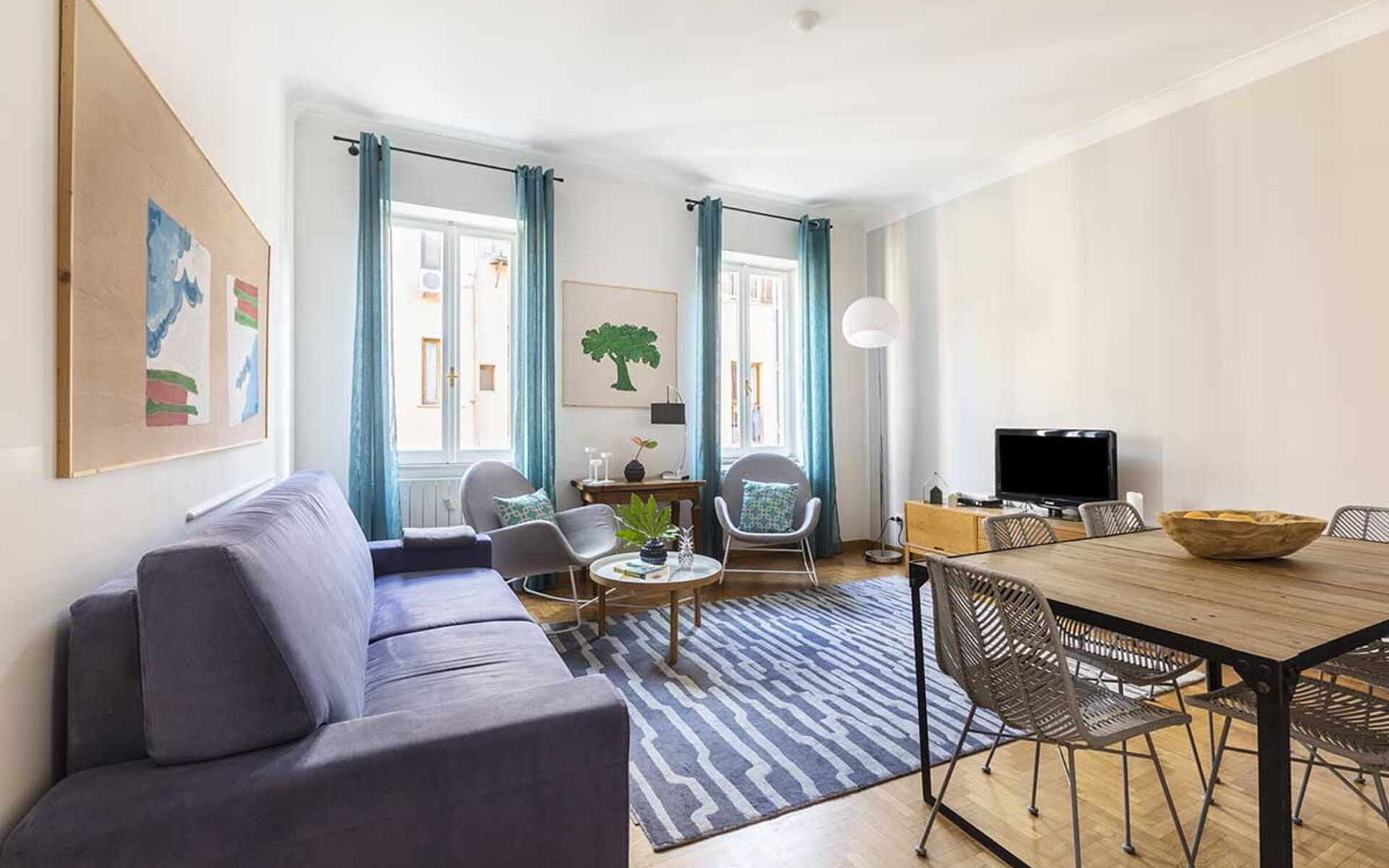Die Wohnung befindet sich in einem der beliebtesten Wohnviertel der Spanischen Treppe und bietet die Möglichkeit, ein authentisches italienisches Dolcevita zu erleben, mit dem Vorteil, dass Restaurants, Konditoreien und Promenaden zu Fuß erreichbar sind. Die Gegend gilt als das zentrale Einkaufsviertel Roms, in dem sich Designerboutiquen und exklusive Geschäfte befinden. Das Design des Hauses, das auf der Grundlage von Recherchen zum historischen Kontext entstand, ist in einem zeitgenössischen Stil gehalten, mit hellen weißen Wänden und hohen Fenstern mit Blick auf die ruhige Seite des Gebäudes. Elemente der klassischen italienischen Wohnarchitektur, wie die verglaste Veranda und der kleine Innenhof, werden mit zeitgenössischen, skandinavisch inspirierten Akzenten kombiniert, wie der gut ausgestatteten Küche, den Holzböden und den Möbeln, die Modernität und Vintage-Eleganz miteinander verbinden. Ein schicker Rückzugsort voller gemütlicher Atmosphäre, der traditionelle und moderne Architektur miteinander verbindet. Die Innenfläche des Anwesens beträgt 110 Quadratmeter und bietet Platz für zwei zusätzliche Gäste auf einem Schlafsofa im Wohnzimmer.