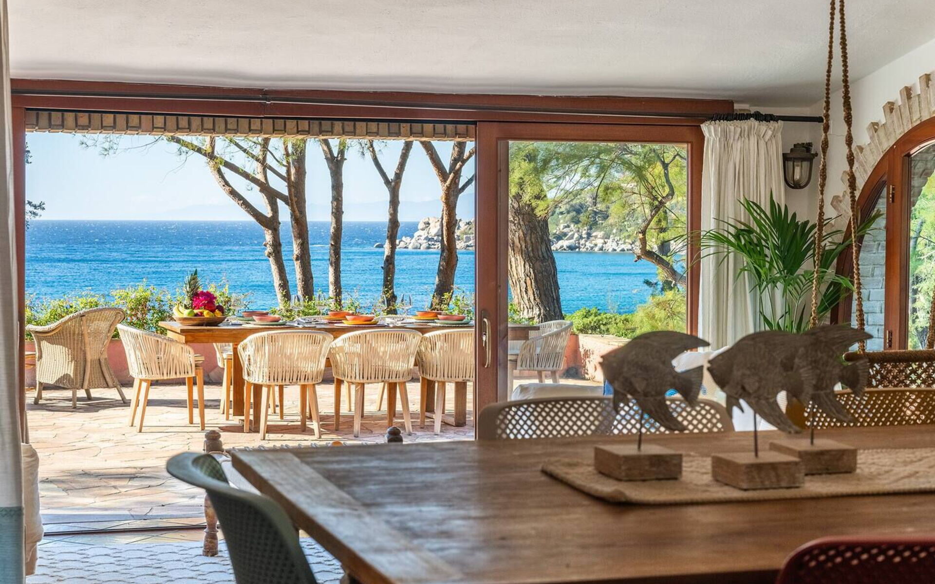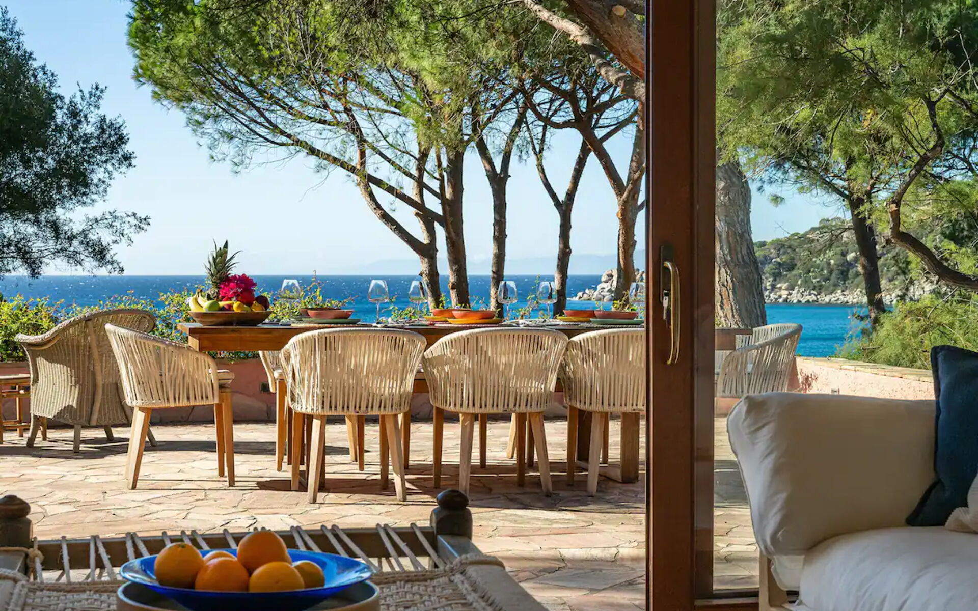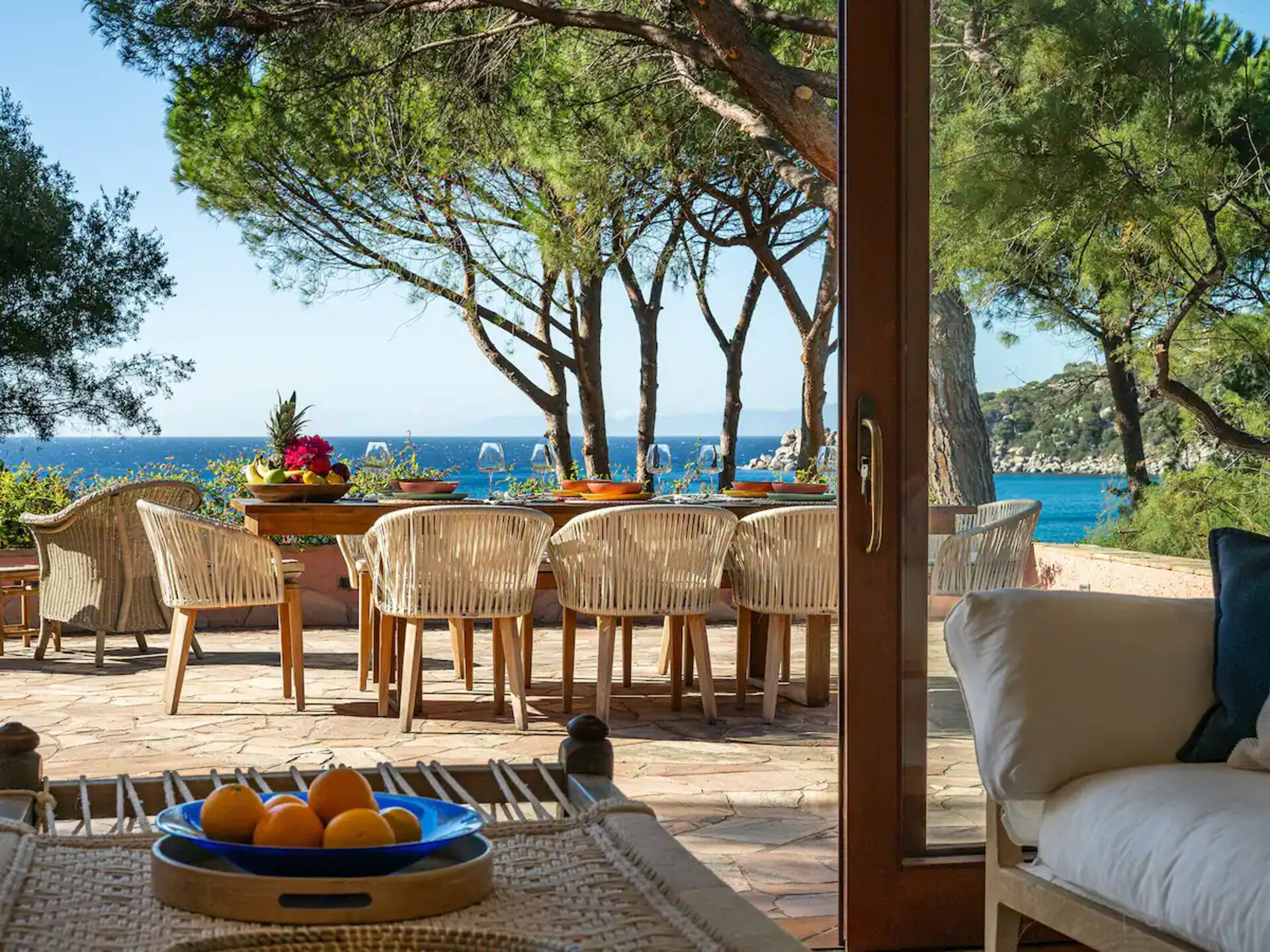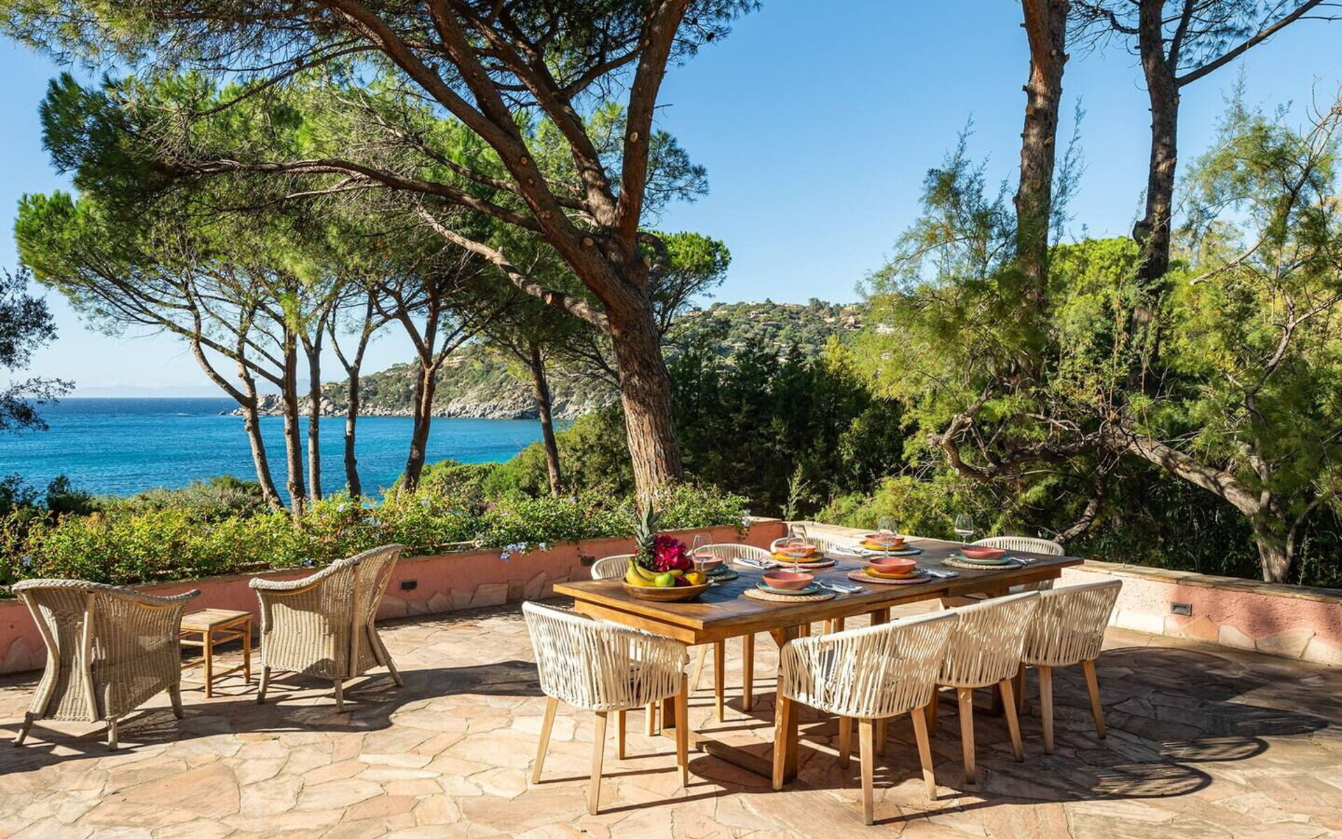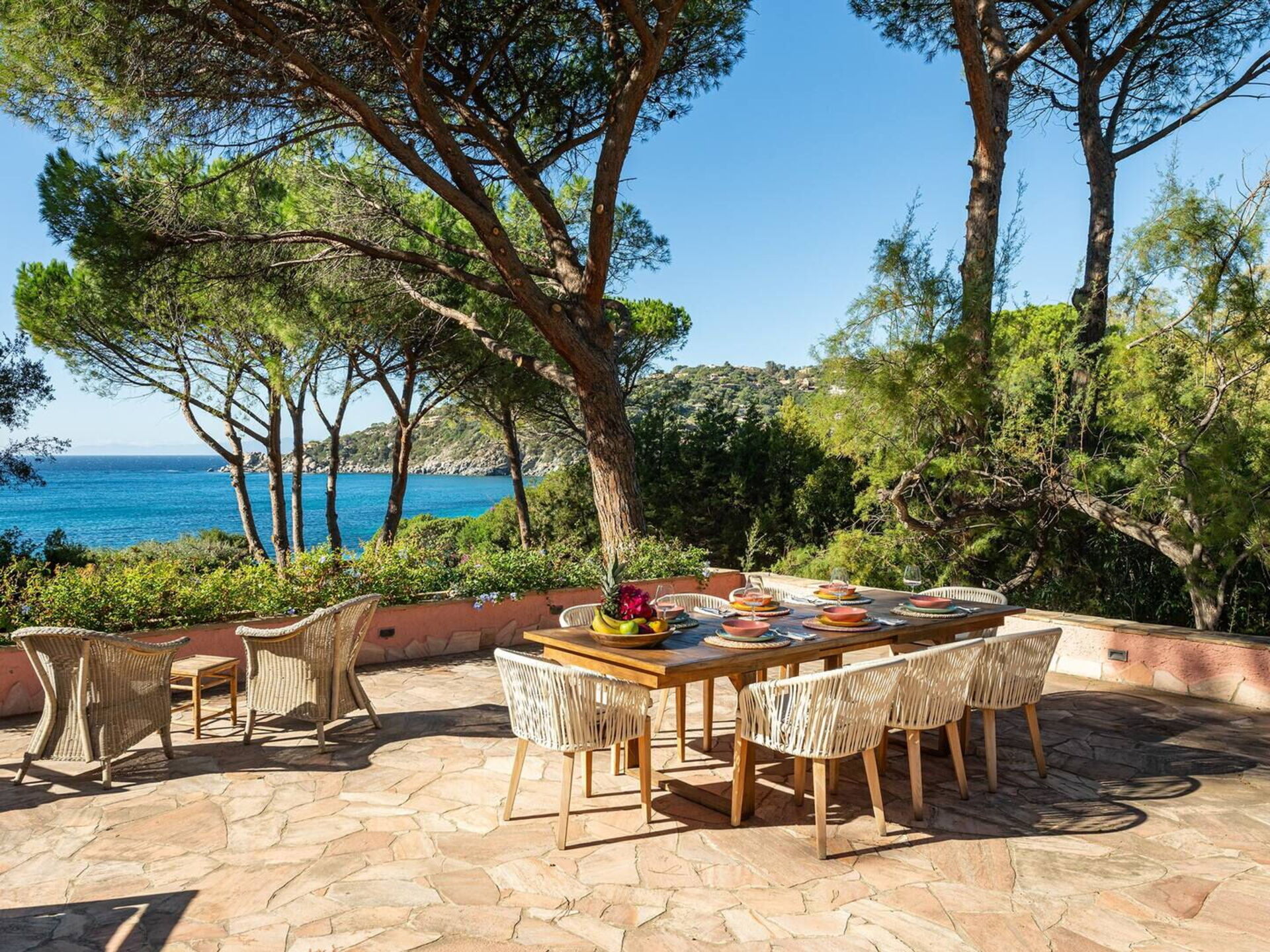 Das Anwesen. Direkt an einem goldenen Strand an der Südküste Sardiniens gelegen, bietet das Anwesen Villa Torretta einen direkten Zugang zum Strand und zum türkisfarbenen Meer, umgeben von einem üppigen, grünen Garten und in Laufnähe zu Restaurants und Parks, wodurch ein exklusiver Rückzugsort in einer der beliebtesten Gegenden Sardiniens entsteht. Mit einem unvergleichlichen Blick auf das kristallklare Meer bietet diese außergewöhnliche Villa Platz für zwanzig Personen in zehn Doppelzimmern sowie drei Gäste auf zwei Schlafsofas (ein Doppel- und ein Einzelschlafsofa). Mit ihren kreativ gestalteten Suiten, Alkoven, Schlafzimmern und Badezimmern ist sie gemütlich und perfekt für Familien oder Gruppen von Freunden, die zusammen reisen.