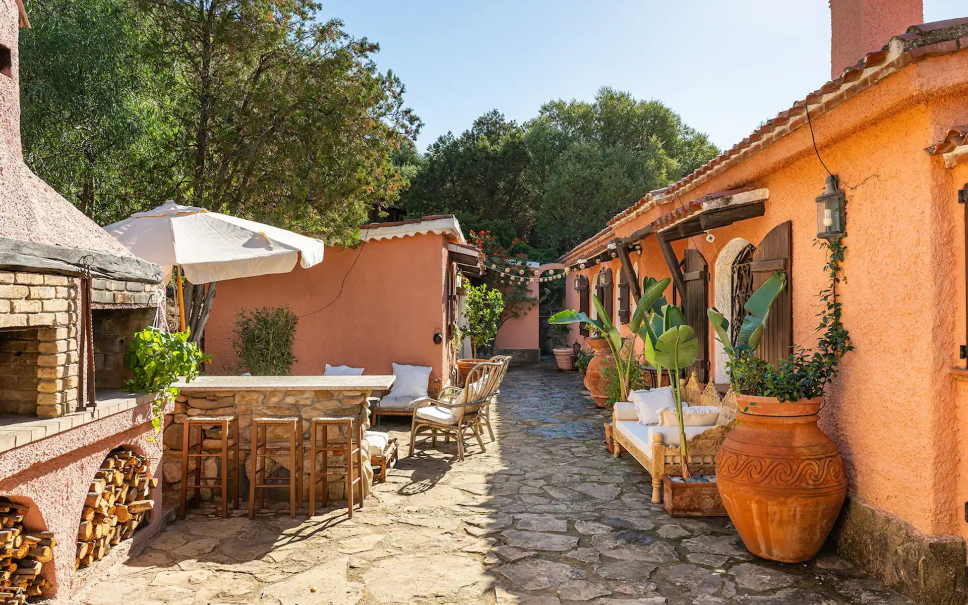 Diese exklusive Villa mit sieben Schlafzimmern befindet sich in Torre delle Stelle, einem der schönsten Orte Südsardiniens, und bietet ihren Gästen Privatsphäre und Ruhe. Sie ist ein einzigartiger Rückzugsort für alle, die die schönen Strände und das kristallklare Wasser dieser Gegend erkunden möchten. Die 35 km lange Küste zeichnet sich durch eine endlose Abfolge von kleinen Buchten, langen weißen Stränden, die am Meer entlang verlaufen, Granitfelsen und die duftende mediterrane Macchia aus.