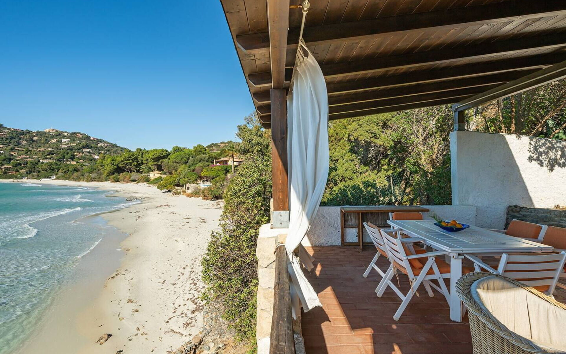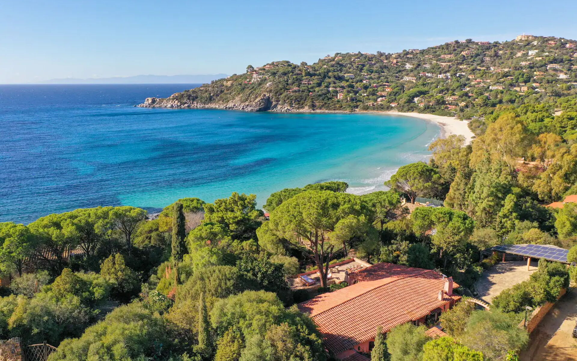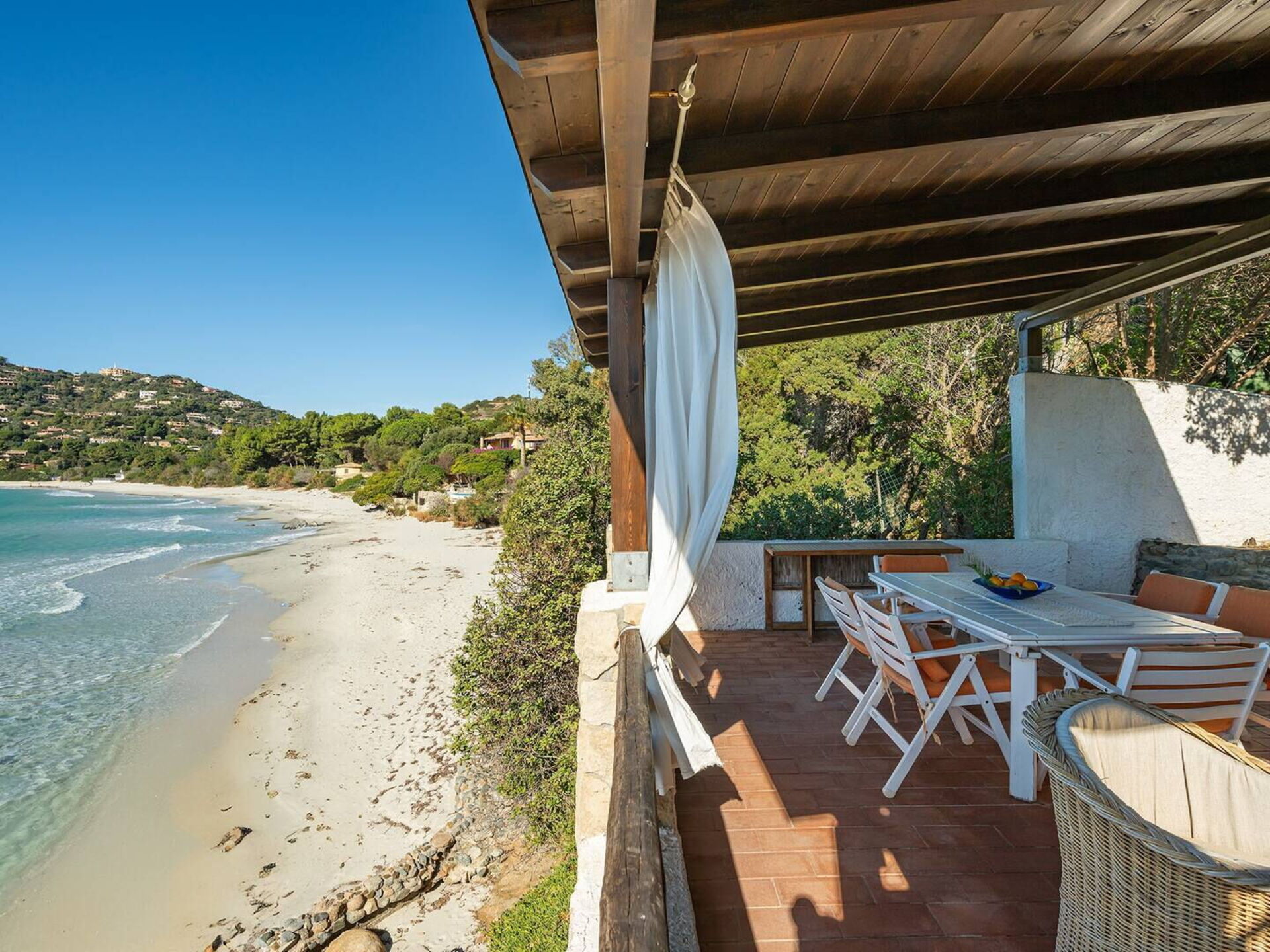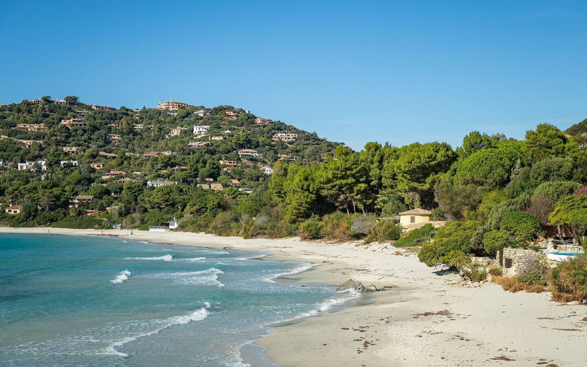 Die Villa liegt direkt an einem goldenen Strand an der Südküste Sardiniens.