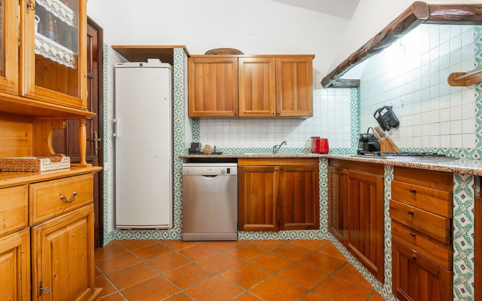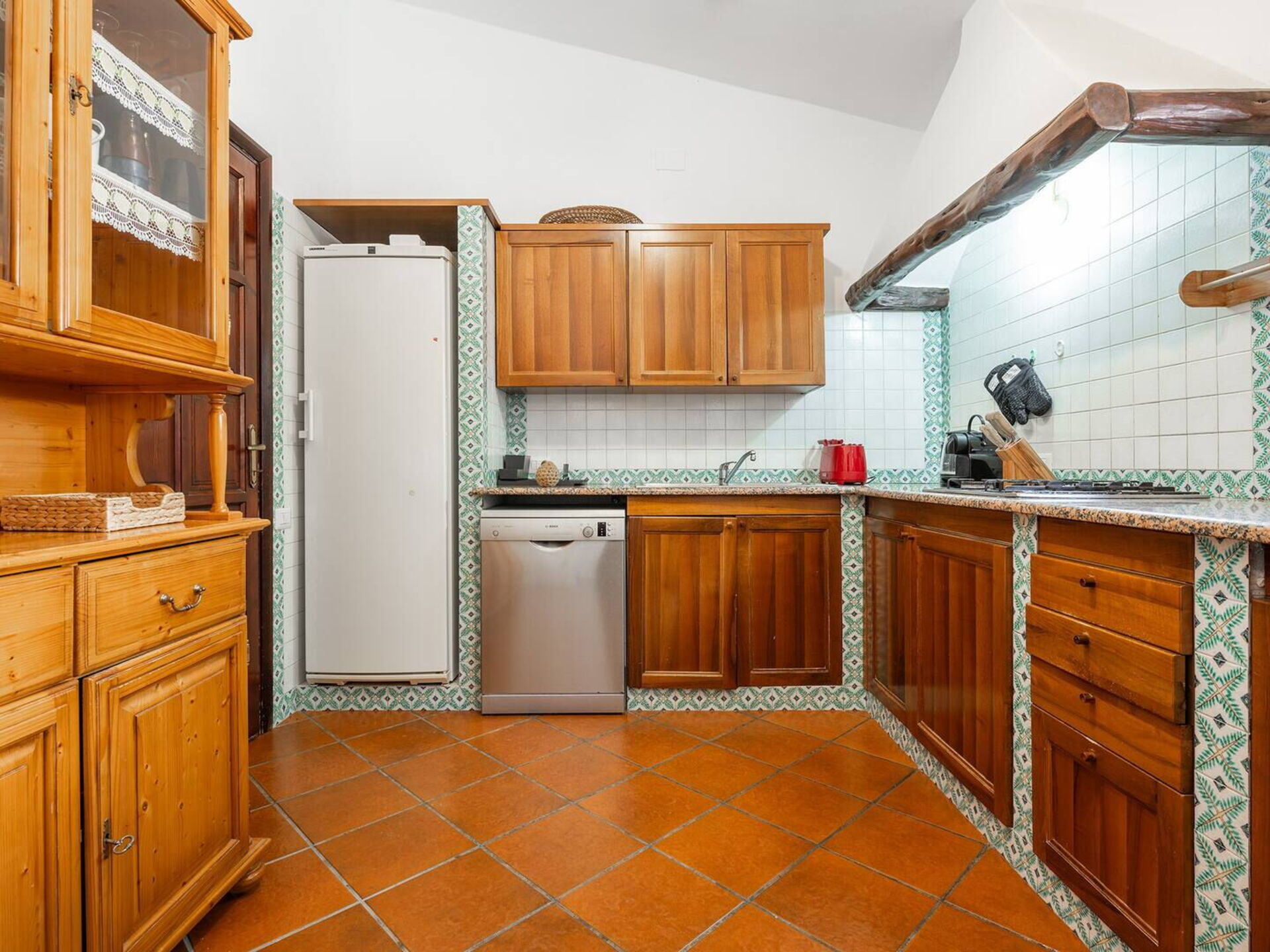 Klimaanlage, gut ausgestattete Küche, Ofen, Tiefkühler, Kühlschrank, Spülmaschine, Italienische Kaffeemaschine, Mikrowelle, Herd, Esstisch, Toaster