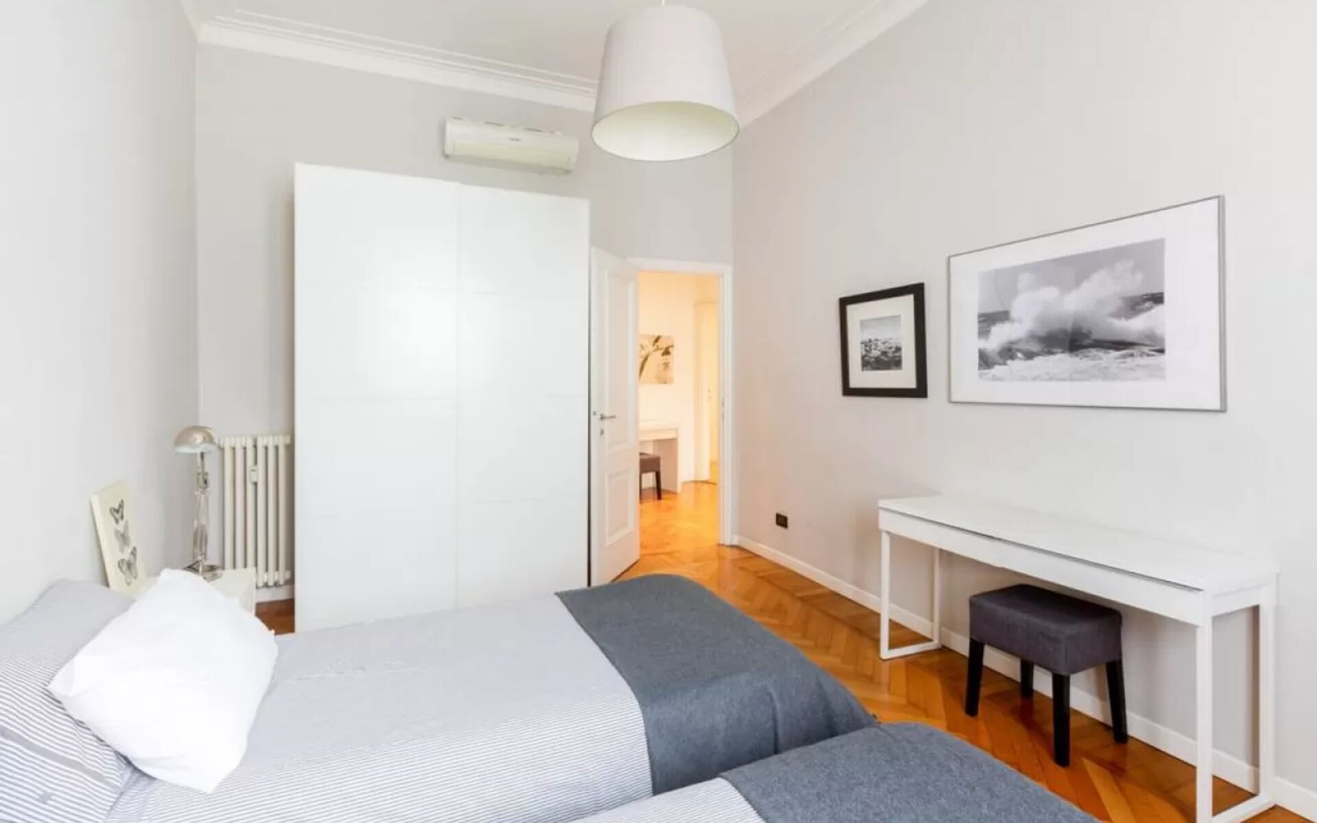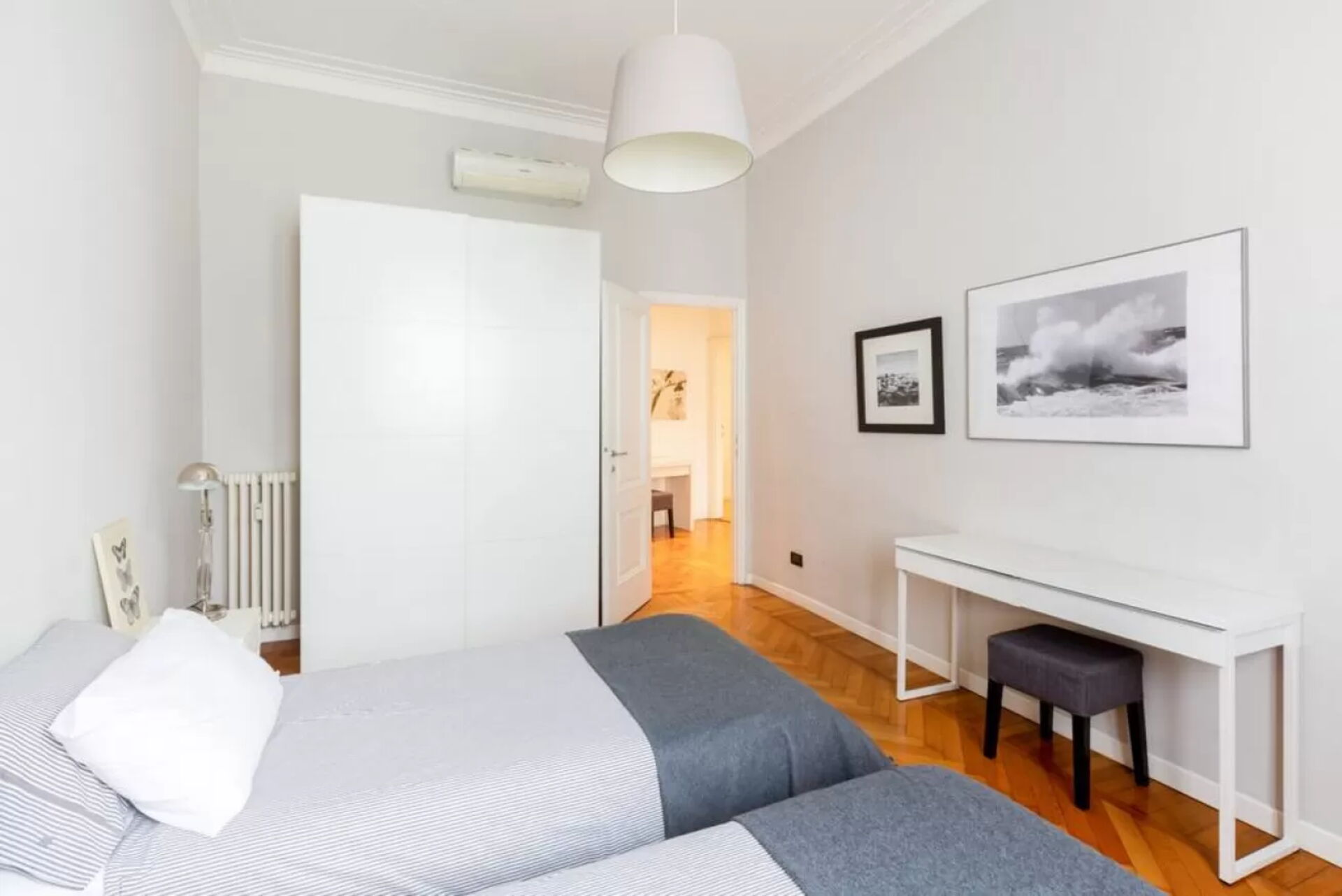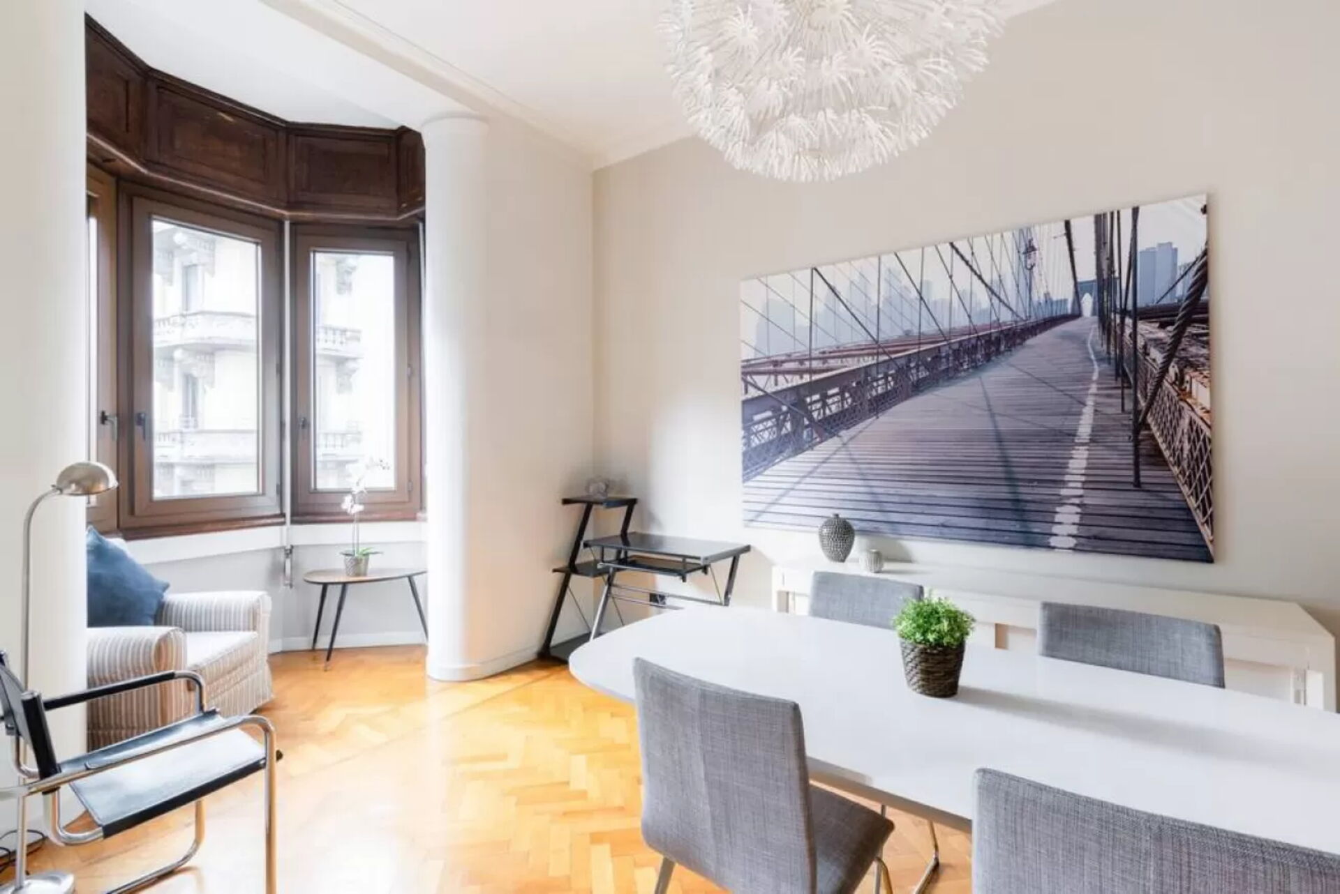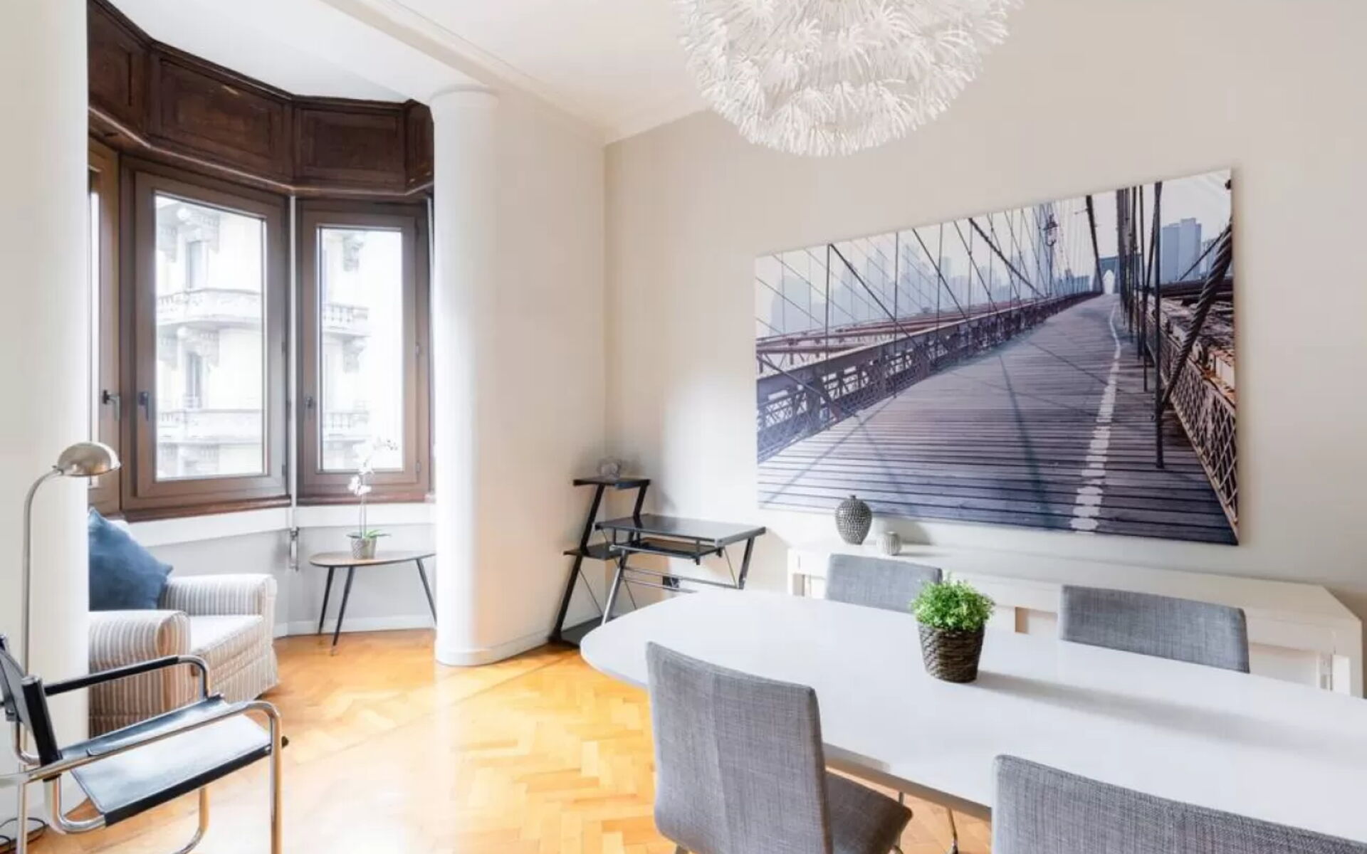 Smuk og lys bolig beliggende på fjerde sal med elevator i en elegant bygning med to store soveværelser, det ene med dobbeltseng og det andet med enkeltsenge. Resten af huset består af en indgang, der fører ind i en stor stue med en sovesofa, der er komfortabel for to personer, og et designerbord. Huset fuldendes af et superudstyret køkken. Det er udstyret med Wi-Fi, vaskemaskine, opvaskemaskine, lagner og håndklæder.