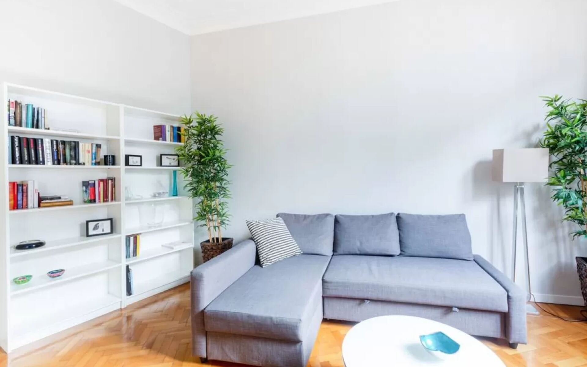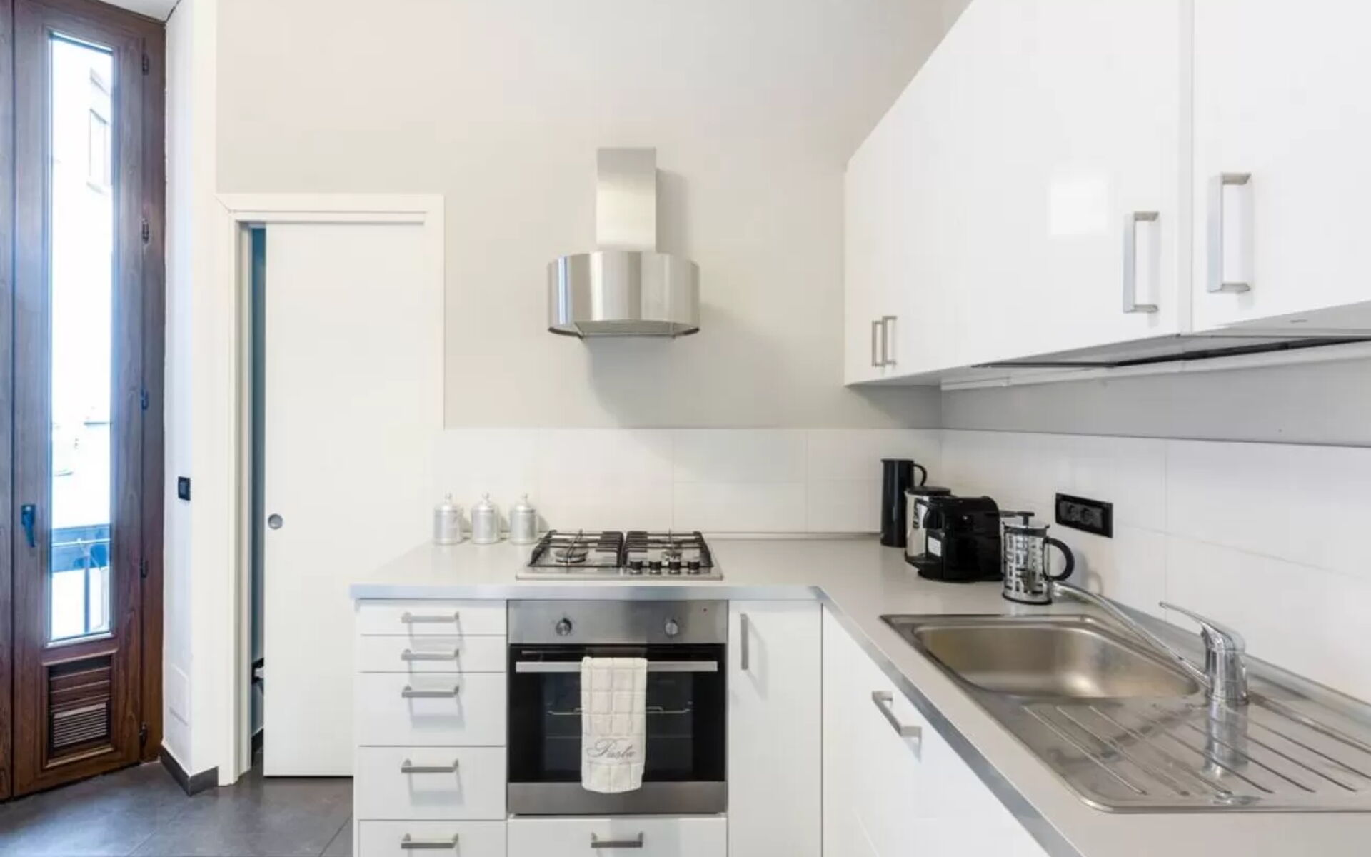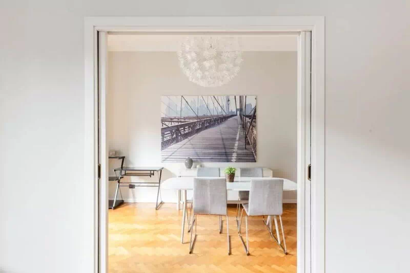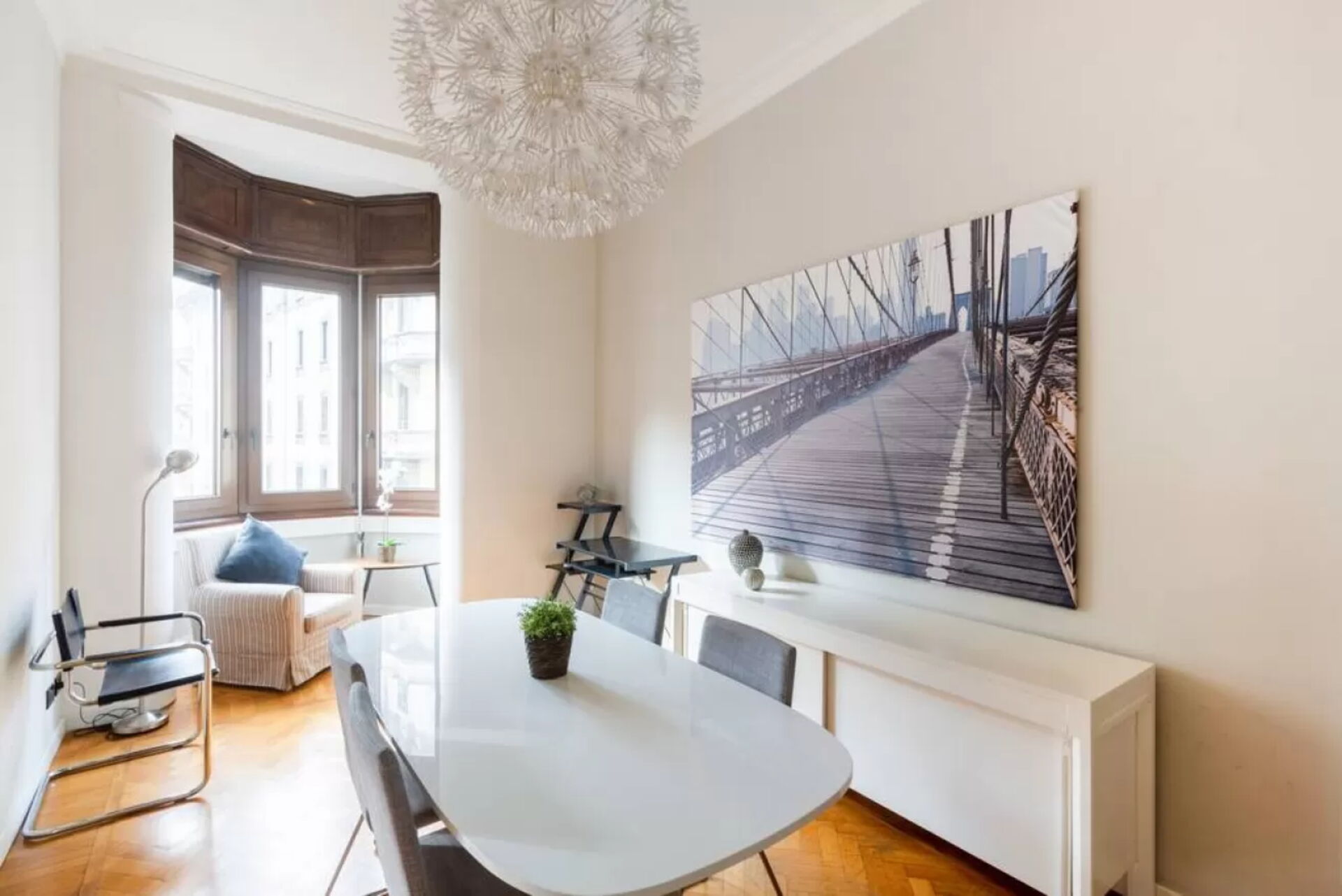 Smuk og lys bolig beliggende på fjerde sal med elevator i en elegant bygning med to store soveværelser, det ene med dobbeltseng og det andet med enkeltsenge. Resten af huset består af en indgang, der fører ind i en stor stue med en sovesofa, der er komfortabel for to personer, og et designerbord. Huset fuldendes af et superudstyret køkken. Det er udstyret med Wi-Fi, vaskemaskine, opvaskemaskine, lagner og håndklæder.