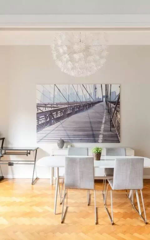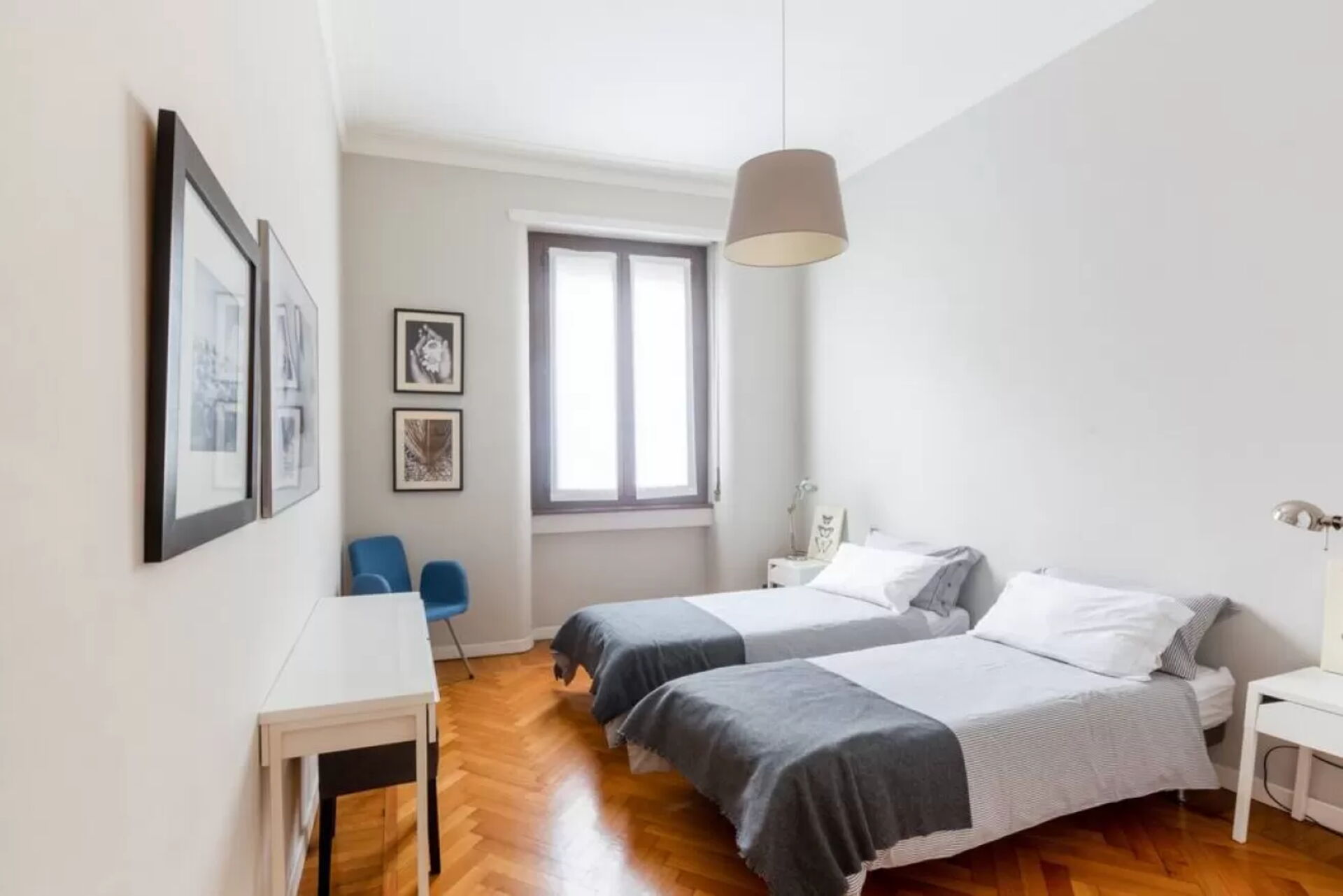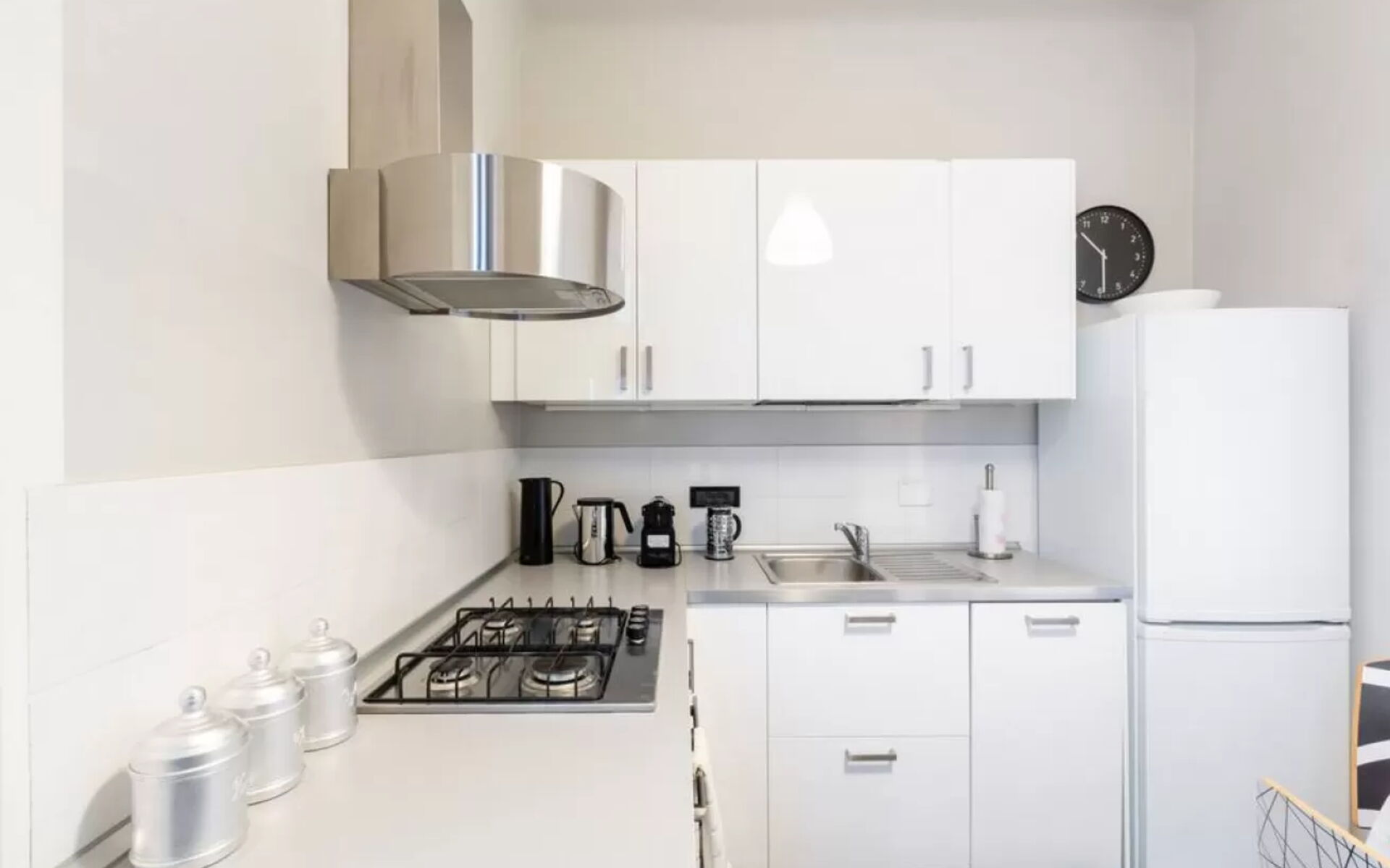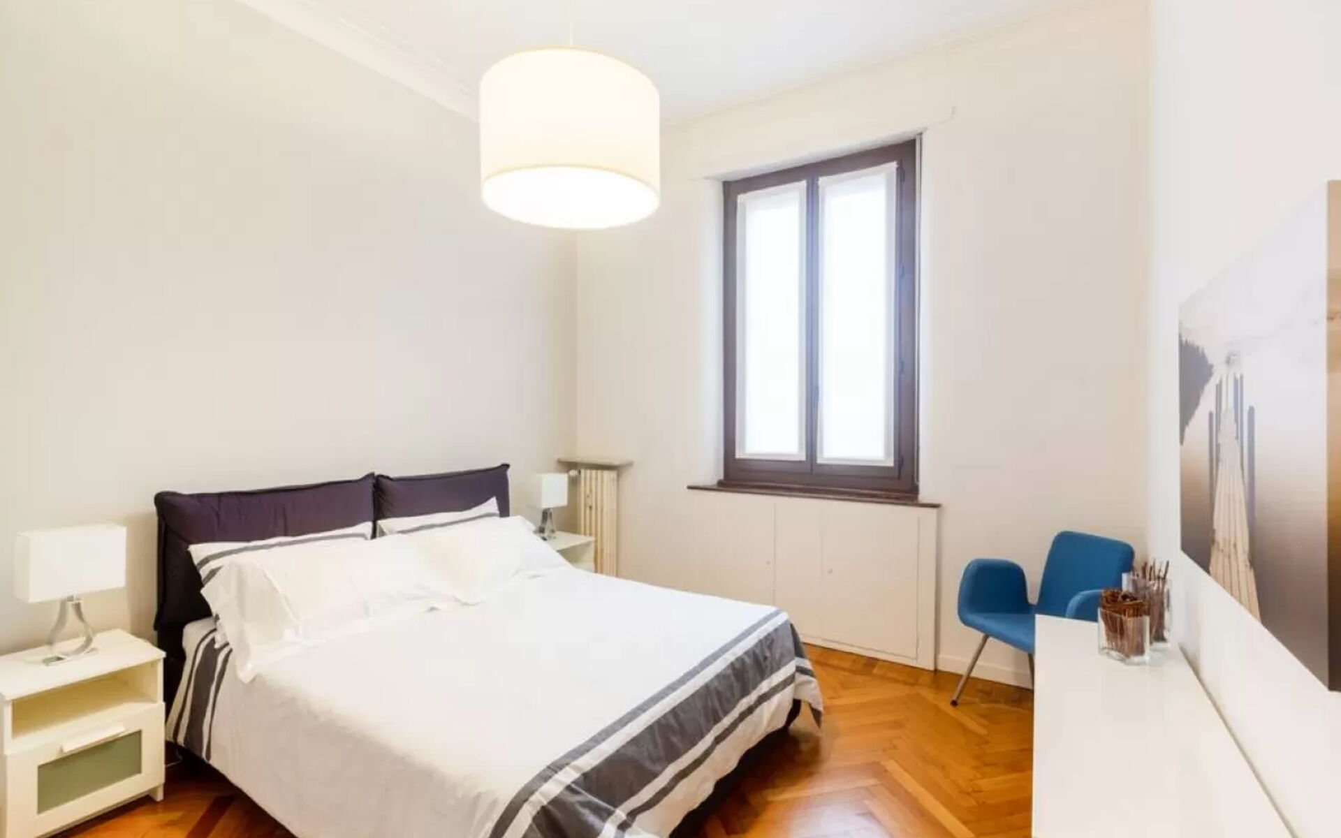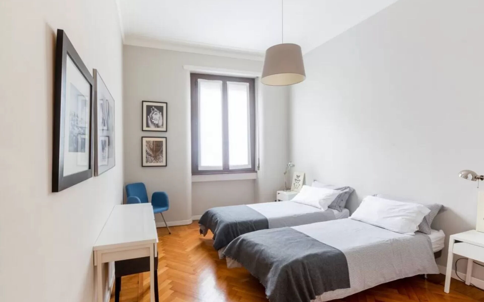 Smuk og lys bolig beliggende på fjerde sal med elevator i en elegant bygning med to store soveværelser, det ene med dobbeltseng og det andet med enkeltsenge. Resten af huset består af en indgang, der fører ind i en stor stue med en sovesofa, der er komfortabel for to personer, og et designerbord. Huset fuldendes af et superudstyret køkken. Det er udstyret med Wi-Fi, vaskemaskine, opvaskemaskine, lagner og håndklæder.