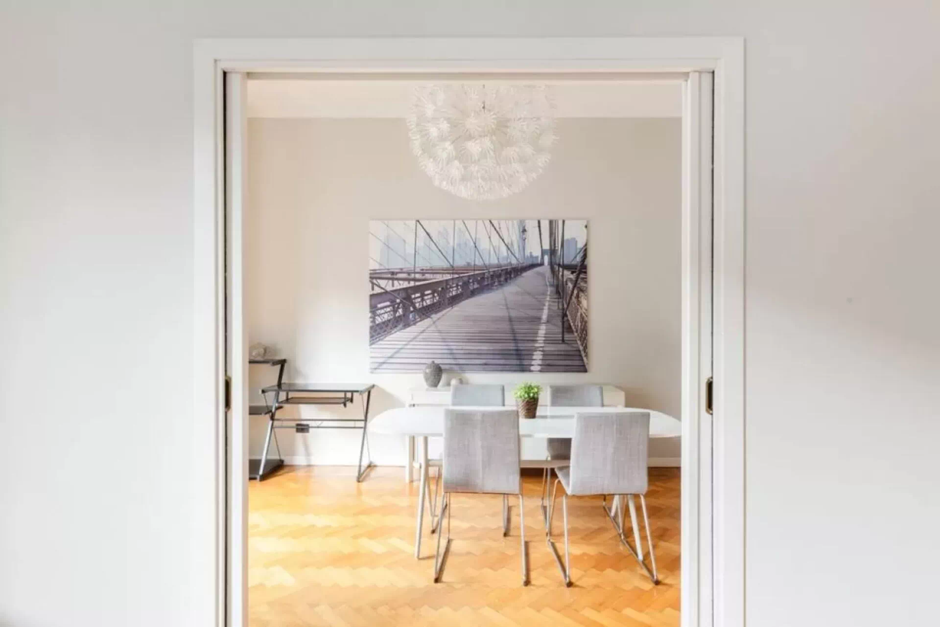 Lejligheden ligger i hjertet af byens historiske centrum. Bydelen er i dag synonym med elegance, mode og design. Nogle af byens vigtigste gader udgår fra pladsen: via Vittorio Emanuele, corso Europa, via Borgogna, corso Venezia, corso Matteotti, corso Monforte op til Piazza Duomo, få skridt fra Teatro alla Scala, Galleria Vittorio Emanuele II og Sforza-slottet. Ud over den berømte San Babila-basilika huser pladsen Torre Snia Viscosa. Det er den første skyskraber, der blev bygget i Milano. Et par skridt væk ligger »Quadrilatero della moda« med de mest eksklusive butikker og restauranter.