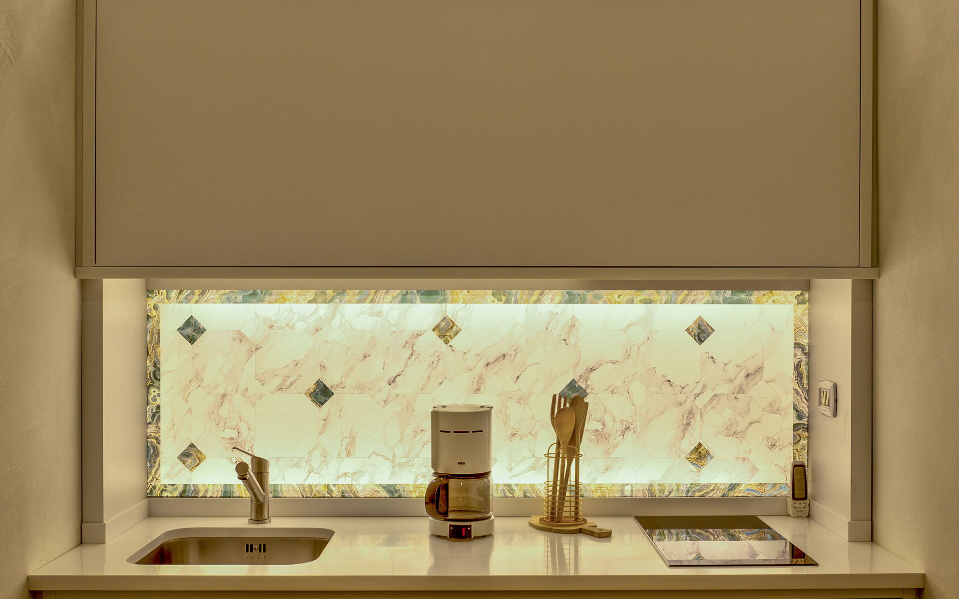 As soon as you enter, on the left there is a small kitchen, with a dining table.