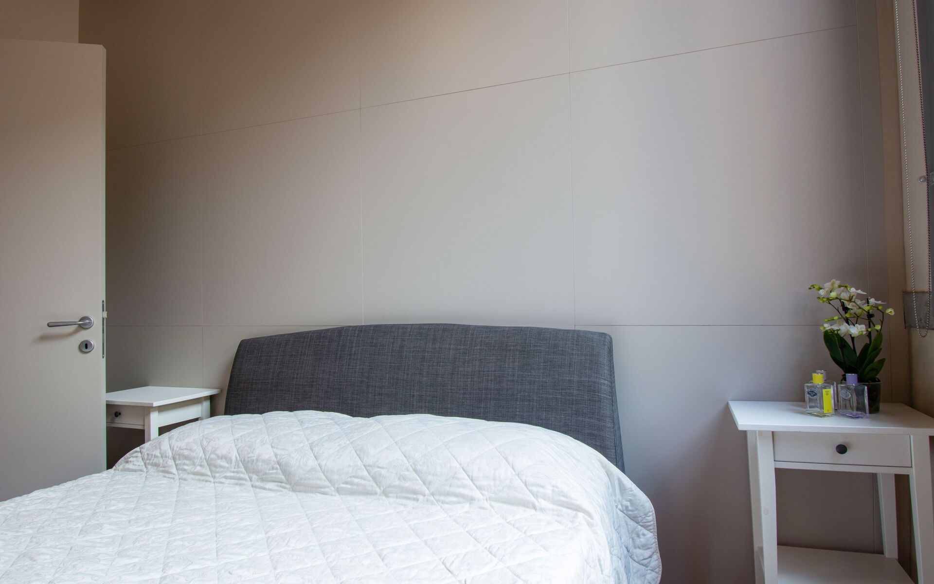 En central gang forbinder stuen med soveværelserne og sikrer privatliv og god gennemgang. Hvert soveværelse er smagfuldt indrettet med udvalgt kunst og blød belysning, der skaber en fredelig atmosfære overalt.