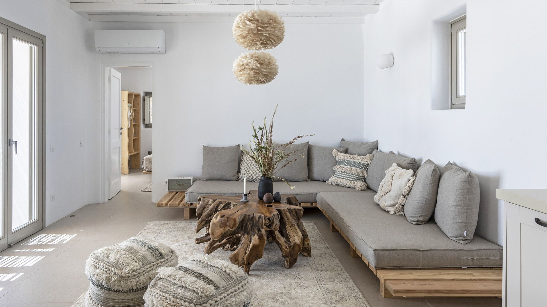 La Villa Sibille est une charmante résidence qui fait partie d'un petit complexe de deux villas sœurs, avec Babi, qui figure également dans notre collection. La zone tranquille de Kalafatis permet d'accéder facilement à plusieurs excellentes plages le long de la côte est, à quelques minutes en voiture. Kalo Livadi, Elia, Lia, Agia Anna et Kalafatis sont toutes facilement accessibles.