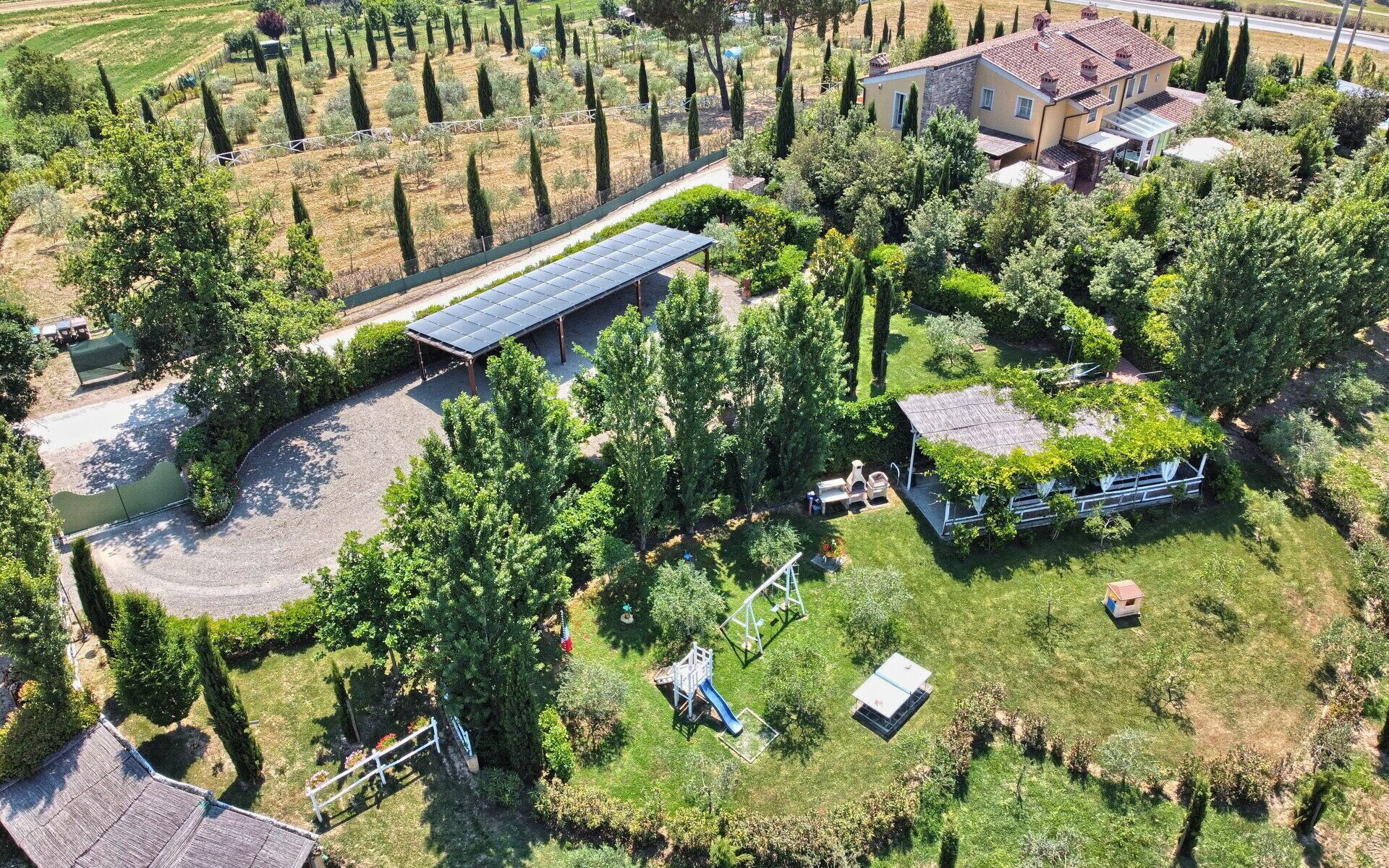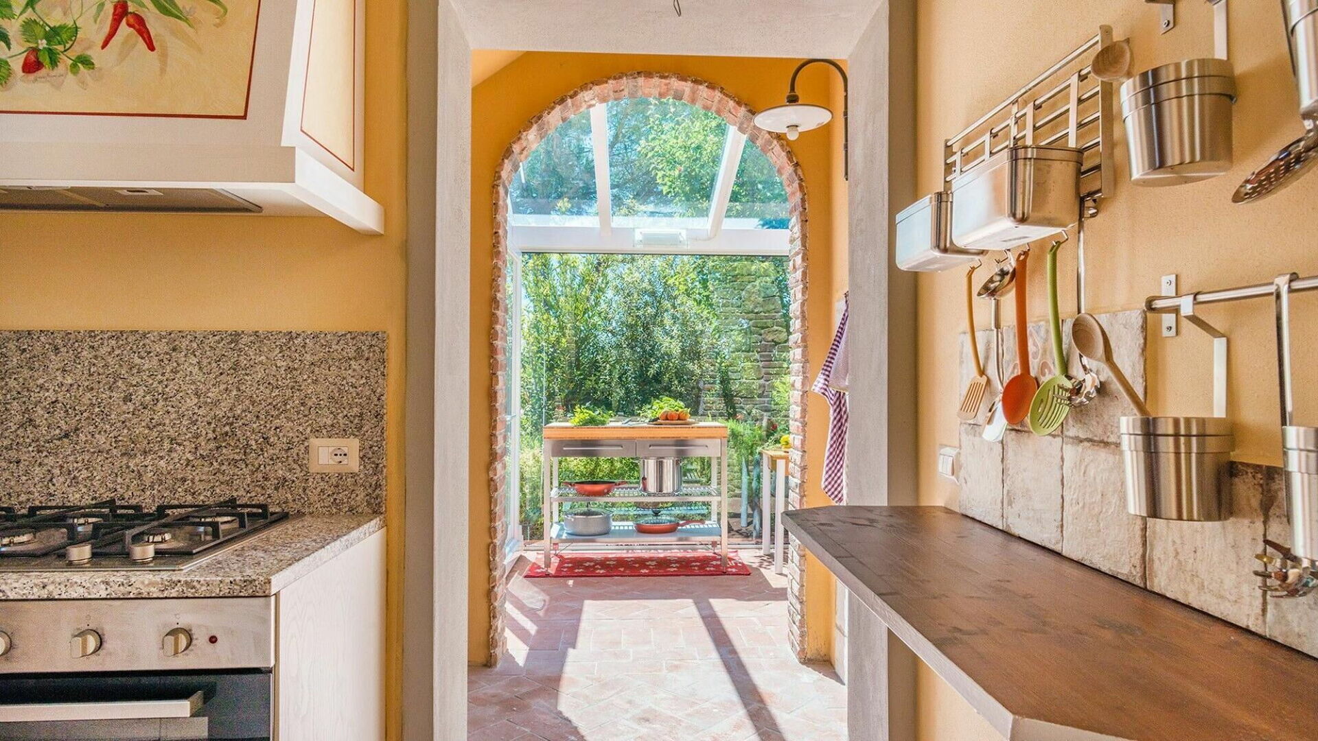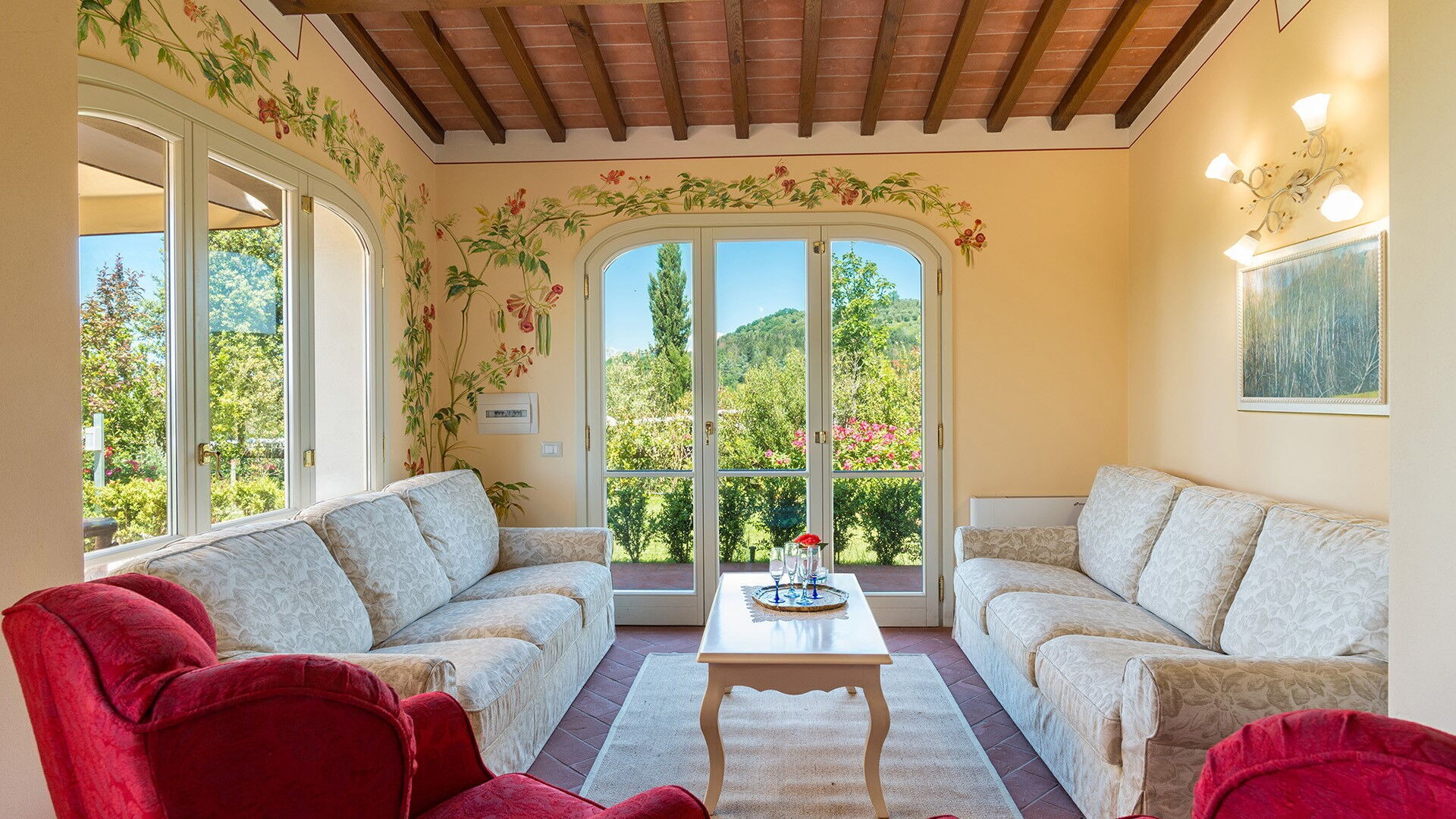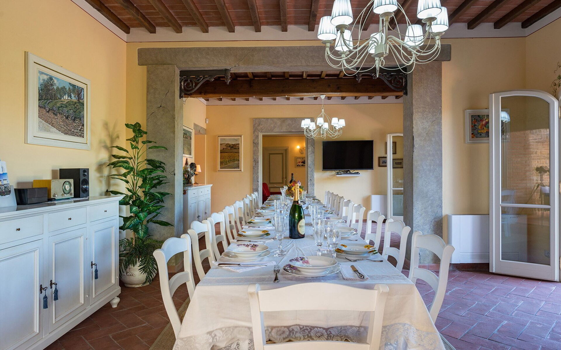 Dès votre arrivée, la villa dégage une atmosphère de luxe discret. Les sols traditionnels en terre cuite, les poutres apparentes en châtaignier et les peintures murales réalisées à la main complètent les grandes portes-fenêtres qui laissent entrer la lumière naturelle et l'air frais de la campagne dans chaque recoin. Chaque détail a été soigneusement pensé, du mobilier luxueux et de la cuisine gastronomique aux coins intimes et aux espaces communs ensoleillés, créant un environnement parfait pour la convivialité et la tranquillité.