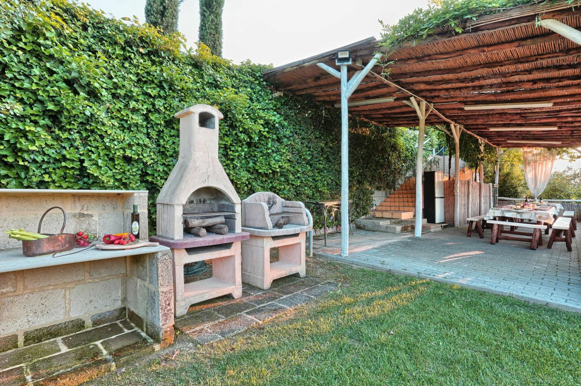 La villa est entourée de deux hectares d'oliviers et d'un jardin méditerranéen regorgeant d'herbes aromatiques, de lauriers, de cyprès et de magnolias en fleurs. Plusieurs terrasses pour prendre l'air, une pergola ombragée et une grande piscine d'eau salée (6x14 m) avec des marches romaines créent une expérience unique de vie en plein air. Les familles apprécieront également la gloriette, équipée d'une table de ping-pong, d'un baby-foot et d'une petite aire de jeux pour les enfants.