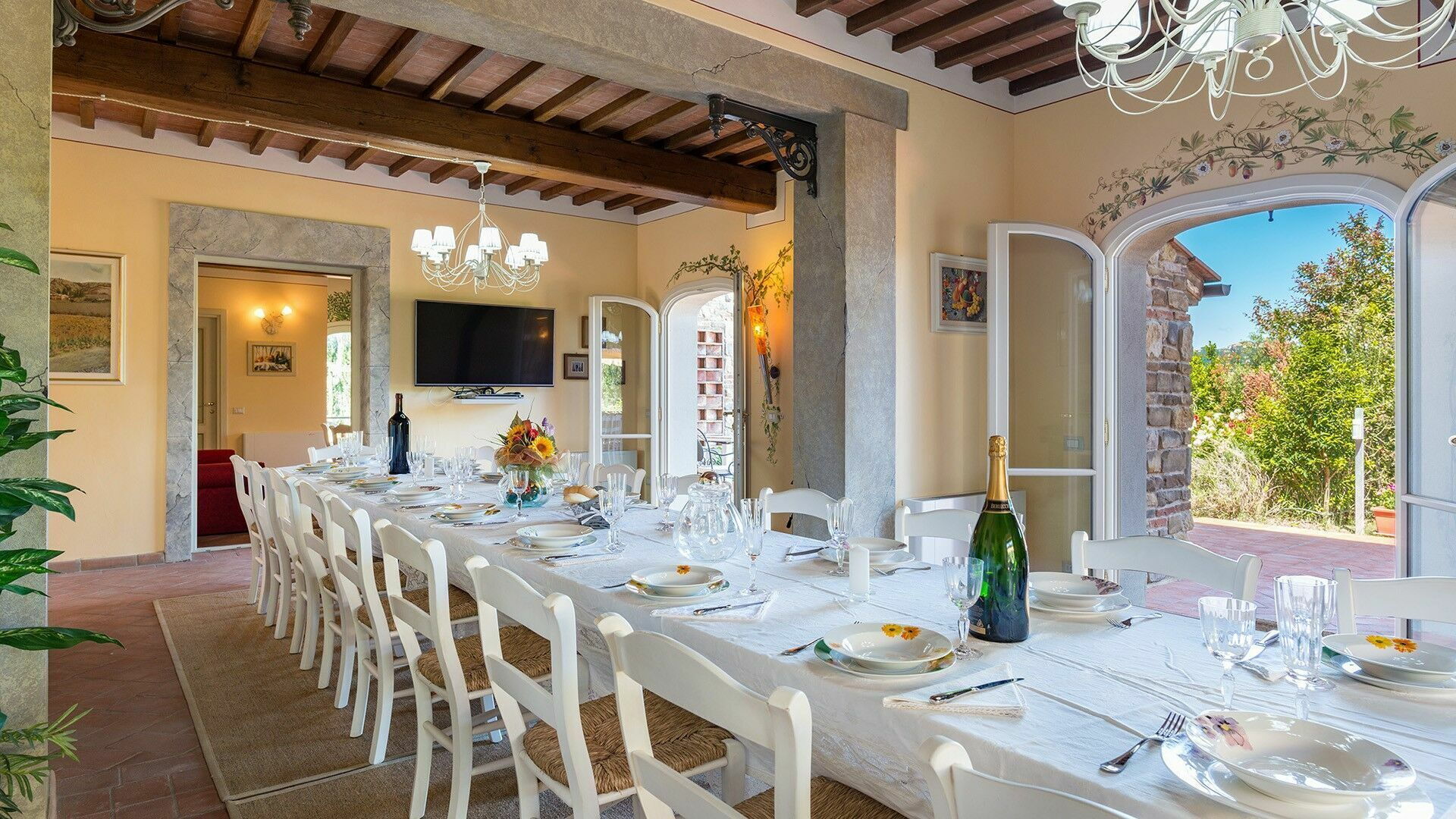 La Villa San Gerbero est parfaite pour les séjours multigénérationnels ou entre amis, pouvant accueillir jusqu'à 21 personnes entre la villa principale et trois appartements indépendants. L'agencement garantit un équilibre parfait entre vie sociale et intimité.