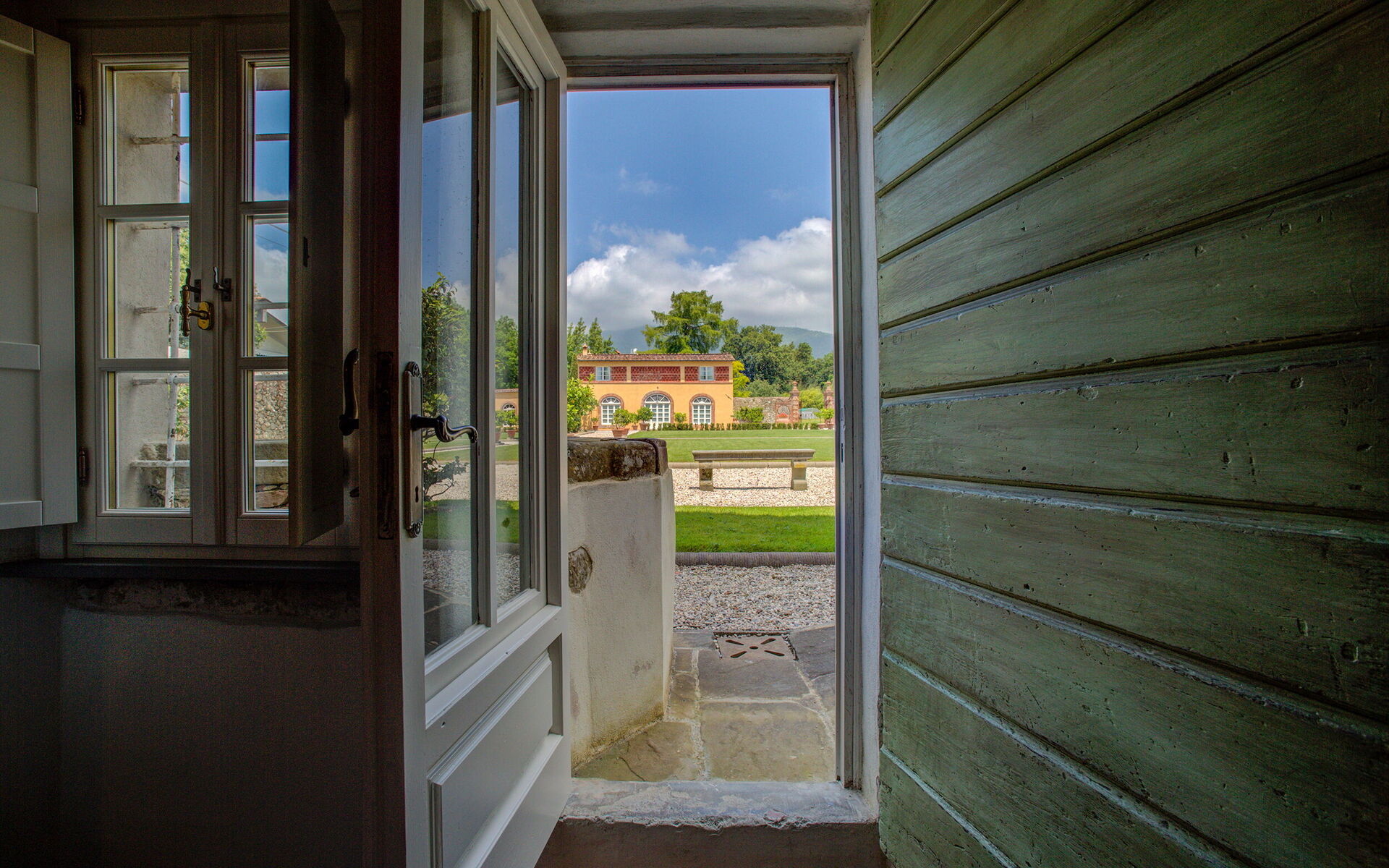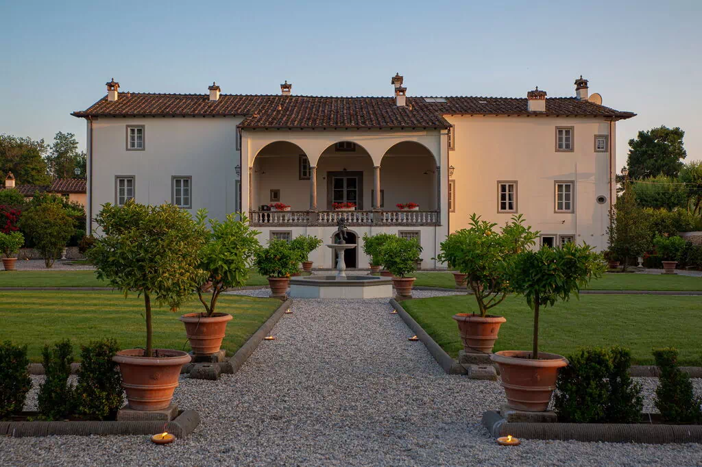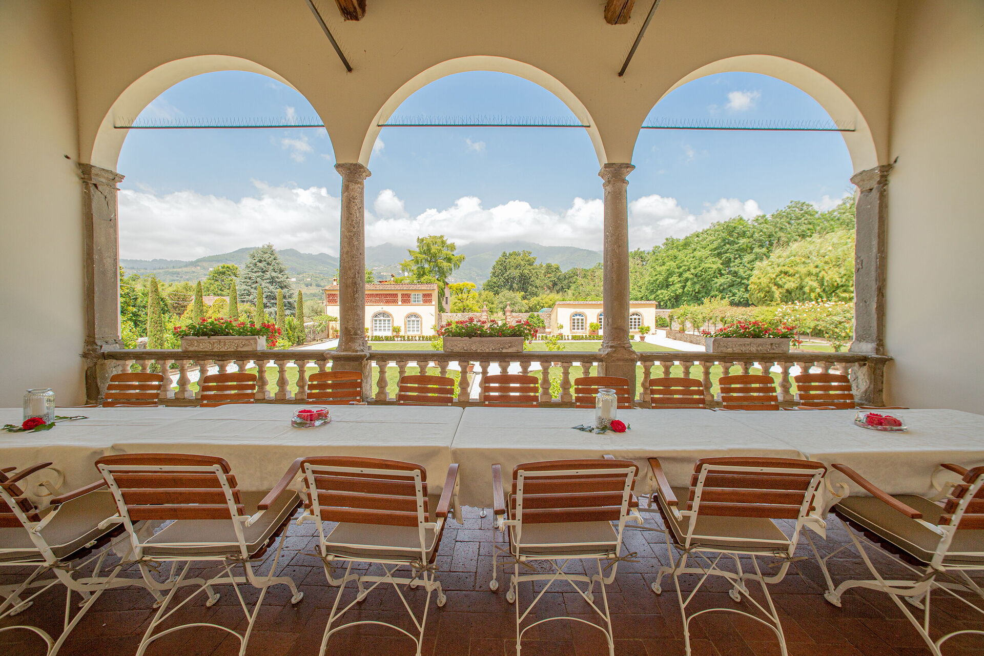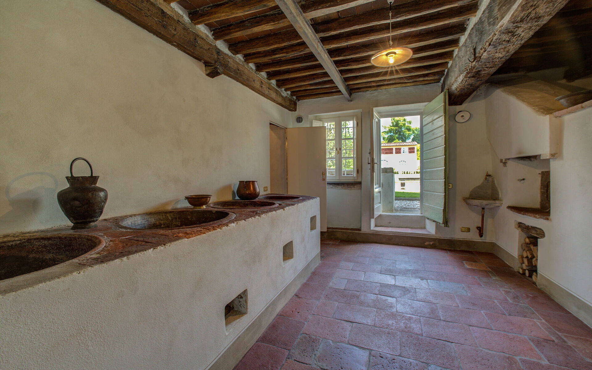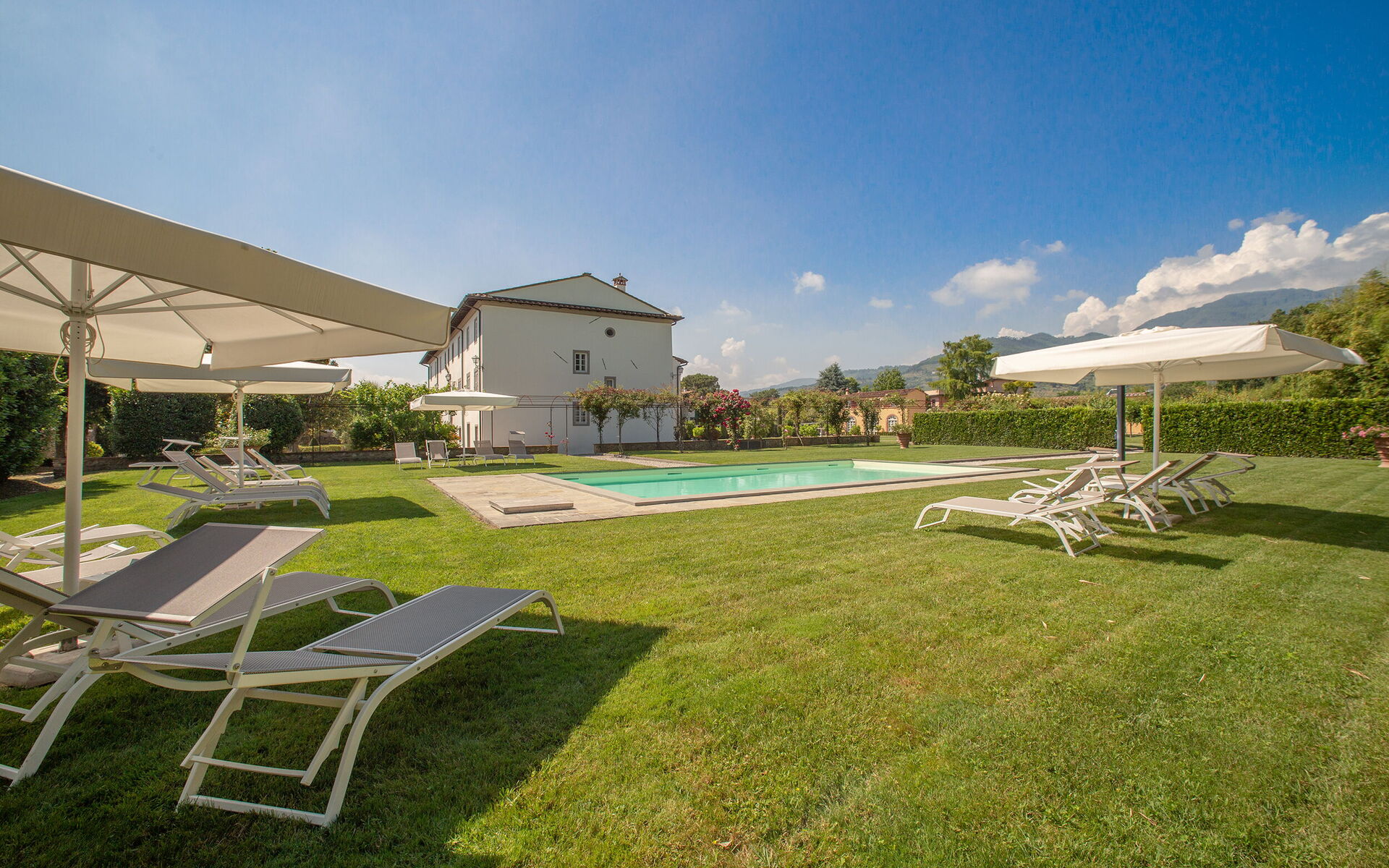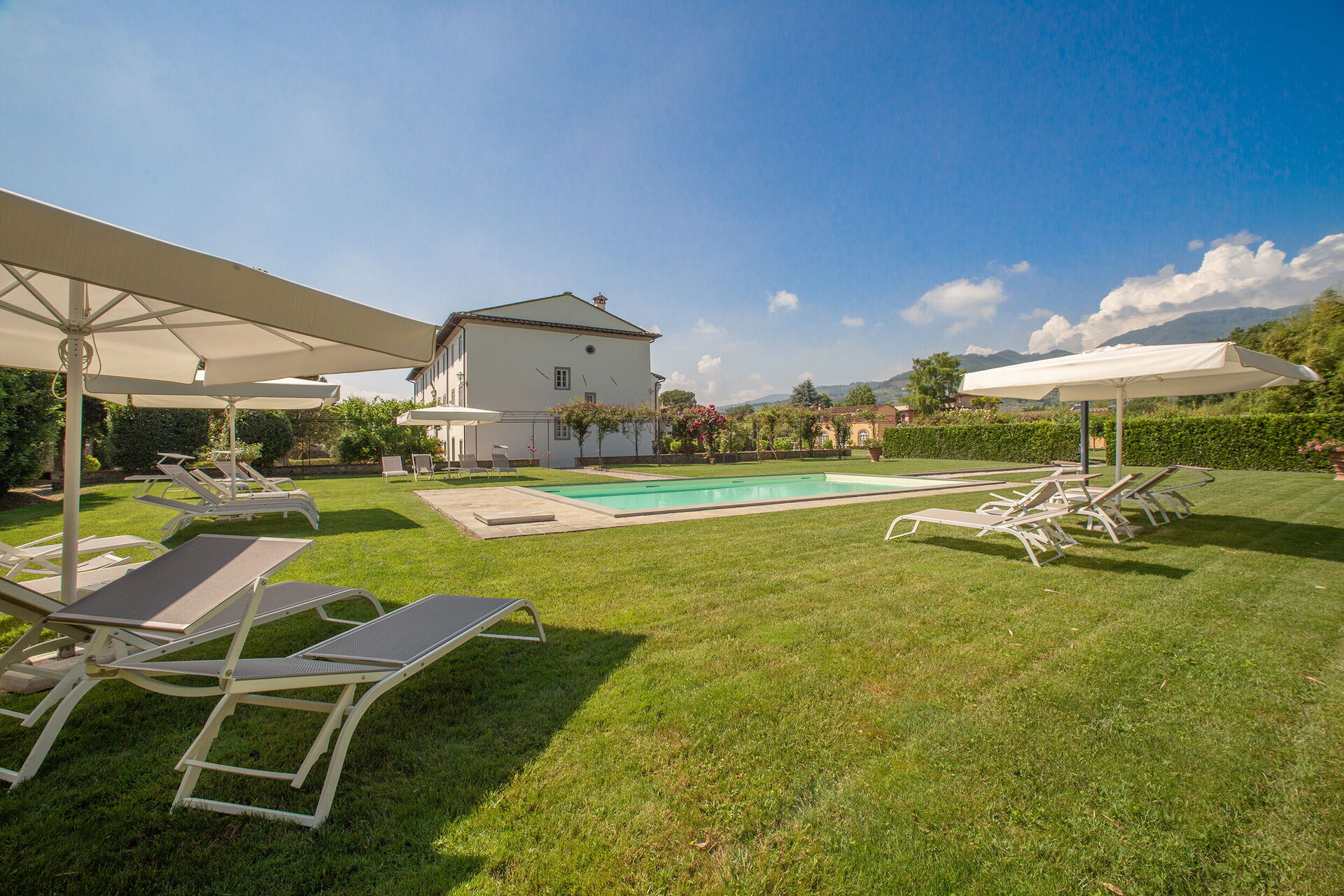 lavori di ricostruzione e consolidamento, i giardini e gli orti sono stati riprodotti secondo le informazioni orti sono riprodotti secondo le informazioni disponibili sul tipico stile lucchese delle ville. Stile lucchese delle ville fuori dalle mura. L'architettura richiama lo stile del stile quattrocentesco con la scala d'ingresso a due livelli sulla facciata principale, con balaustra e colonne in pietra e la loggia a tre archi di tipico ordine toscano che si affaccia sulla facciata posteriore. Ordine toscano che si affaccia sulla facciata posteriore. La proprietà dispone di un parco con alberi secolari, splendide piante mediterranee e un giardino di frutta. E un giardino di frutta. Una galleria di rose attraversa un lato del giardino, dalla piscina (13/6 metri e un'altezza di circa 2,5 metri) e dal giardino. Piscina (13/6 metri e profonda da 1,10 a 1,60) alle limonaie, una delle quali è dotata di ping pong e biliardo. Una delle quali ha un tavolo da ping pong e da biliardo, mentre l'altra ha una cucina per le lezioni di cucina e le pizze. Lezioni di cucina e pizza party. Forno per pizza (per feste su richiesta). Queste strutture possono essere utilizzate anche per occasioni speciali o semplicemente per leggere e rilassarsi.
