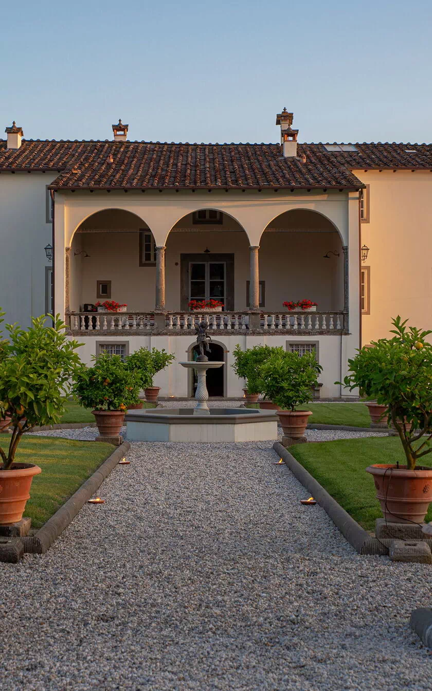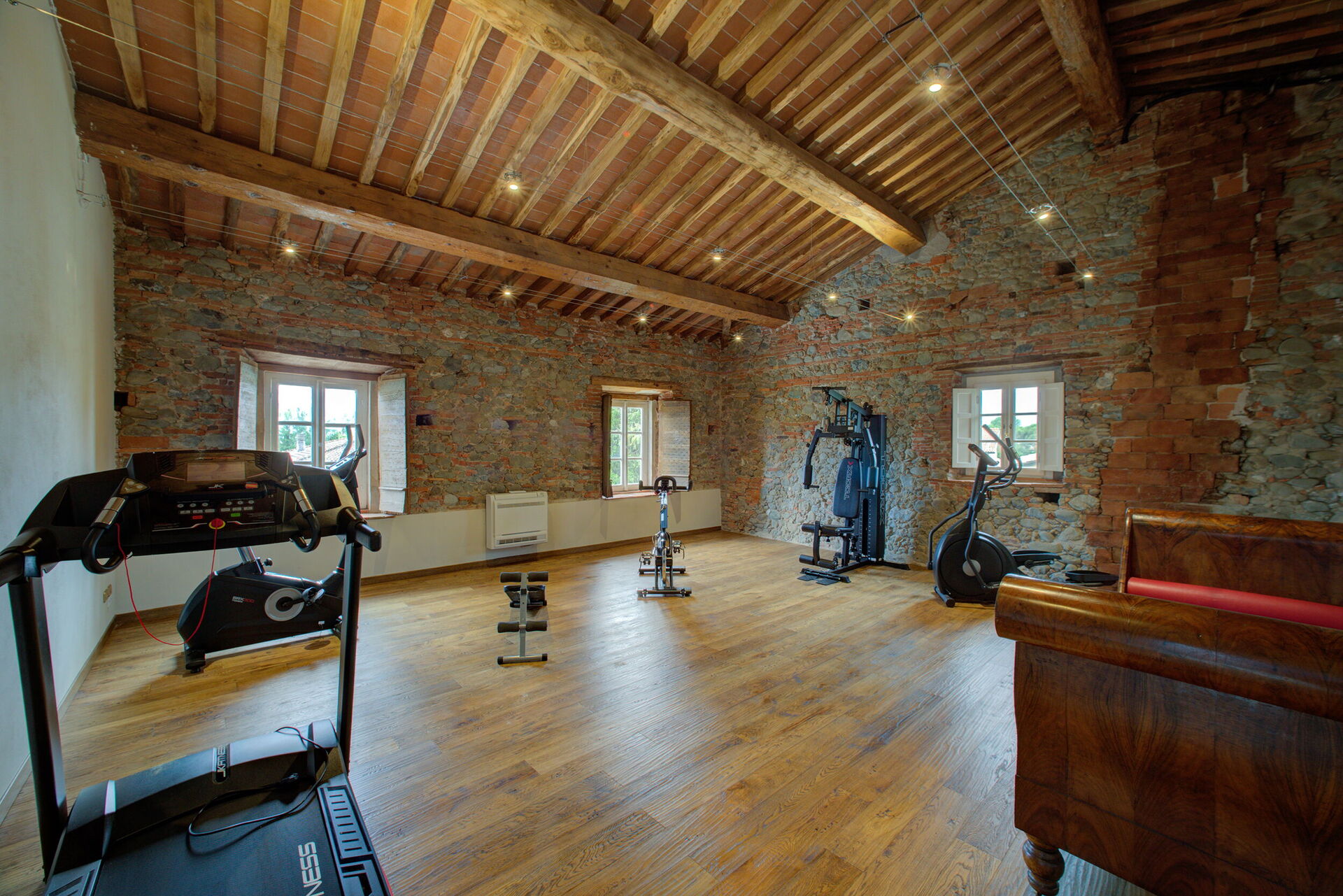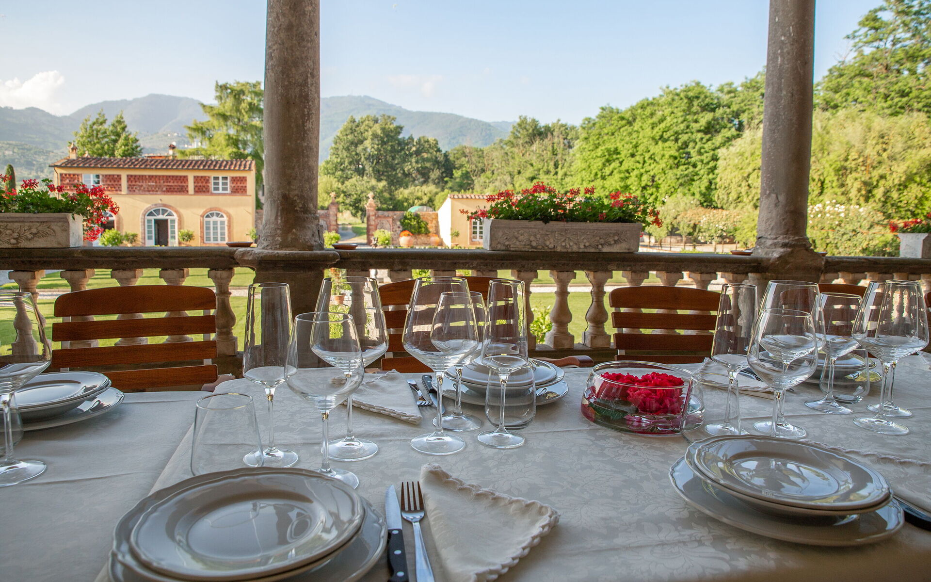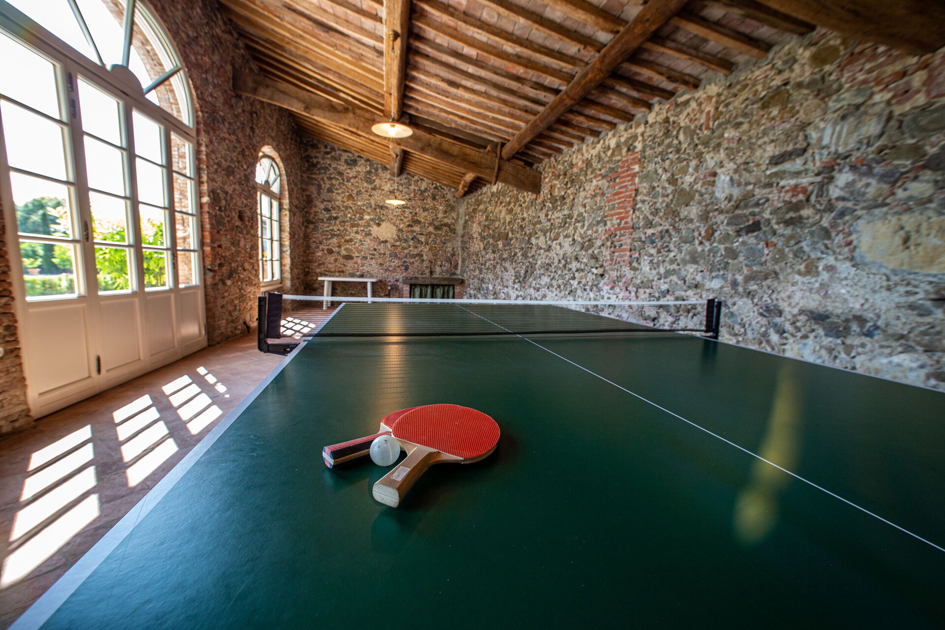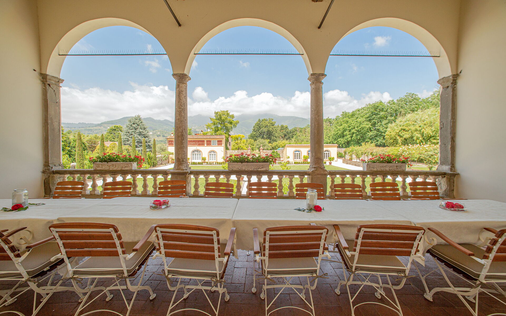 lavori di ricostruzione e consolidamento, i giardini e gli orti sono stati riprodotti secondo le informazioni orti sono riprodotti secondo le informazioni disponibili sul tipico stile lucchese delle ville. Stile lucchese delle ville fuori dalle mura. L'architettura richiama lo stile del stile quattrocentesco con la scala d'ingresso a due livelli sulla facciata principale, con balaustra e colonne in pietra e la loggia a tre archi di tipico ordine toscano che si affaccia sulla facciata posteriore. Ordine toscano che si affaccia sulla facciata posteriore. La proprietà dispone di un parco con alberi secolari, splendide piante mediterranee e un giardino di frutta. E un giardino di frutta. Una galleria di rose attraversa un lato del giardino, dalla piscina (13/6 metri e un'altezza di circa 2,5 metri) e dal giardino. Piscina (13/6 metri e profonda da 1,10 a 1,60) alle limonaie, una delle quali è dotata di ping pong e biliardo. Una delle quali ha un tavolo da ping pong e da biliardo, mentre l'altra ha una cucina per le lezioni di cucina e le pizze. Lezioni di cucina e pizza party. Forno per pizza (per feste su richiesta). Queste strutture possono essere utilizzate anche per occasioni speciali o semplicemente per leggere e rilassarsi.