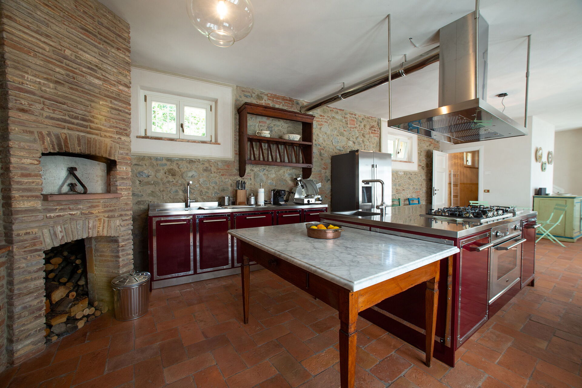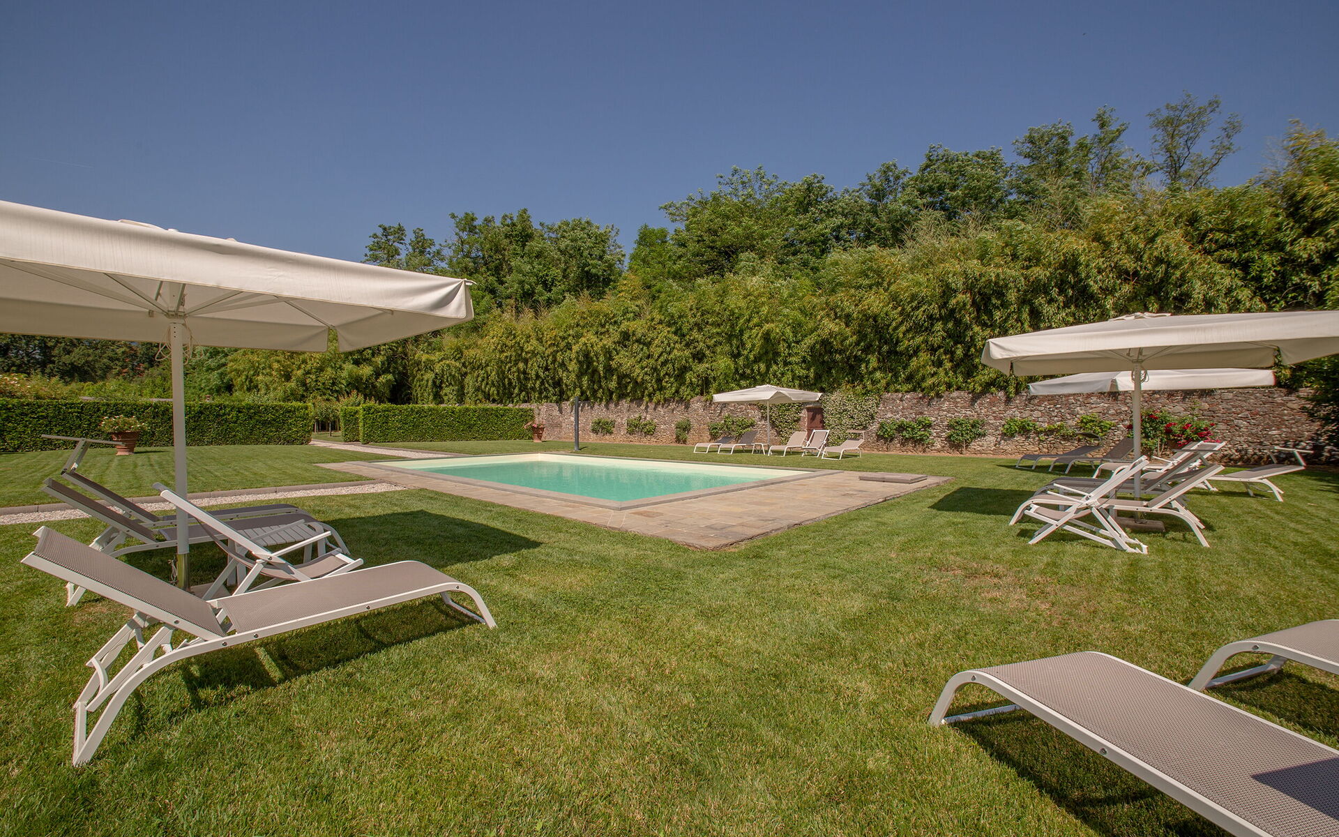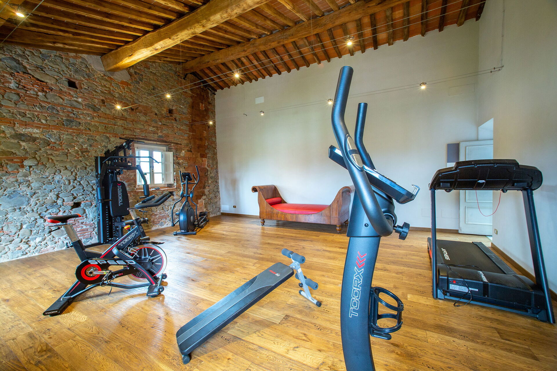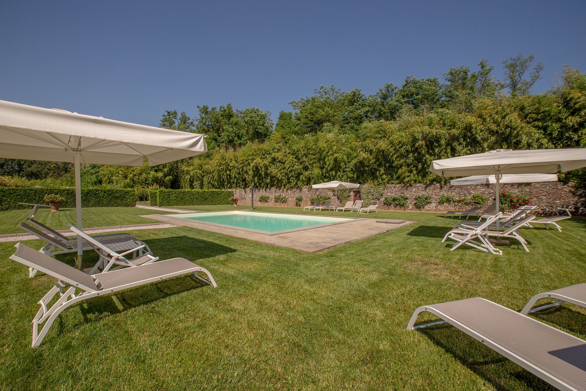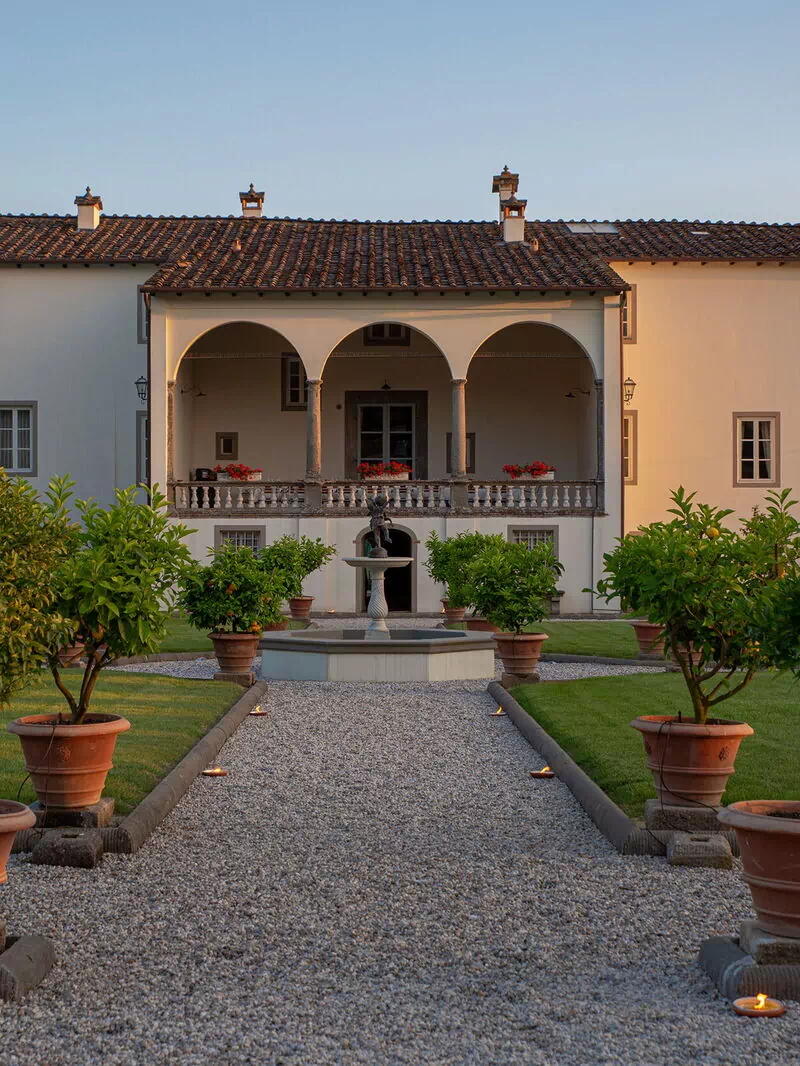 lavori di ricostruzione e consolidamento, i giardini e gli orti sono stati riprodotti secondo le informazioni orti sono riprodotti secondo le informazioni disponibili sul tipico stile lucchese delle ville. Stile lucchese delle ville fuori dalle mura. L'architettura richiama lo stile del stile quattrocentesco con la scala d'ingresso a due livelli sulla facciata principale, con balaustra e colonne in pietra e la loggia a tre archi di tipico ordine toscano che si affaccia sulla facciata posteriore. Ordine toscano che si affaccia sulla facciata posteriore. La proprietà dispone di un parco con alberi secolari, splendide piante mediterranee e un giardino di frutta. E un giardino di frutta. Una galleria di rose attraversa un lato del giardino, dalla piscina (13/6 metri e un'altezza di circa 2,5 metri) e dal giardino. Piscina (13/6 metri e profonda da 1,10 a 1,60) alle limonaie, una delle quali è dotata di ping pong e biliardo. Una delle quali ha un tavolo da ping pong e da biliardo, mentre l'altra ha una cucina per le lezioni di cucina e le pizze. Lezioni di cucina e pizza party. Forno per pizza (per feste su richiesta). Queste strutture possono essere utilizzate anche per occasioni speciali o semplicemente per leggere e rilassarsi.