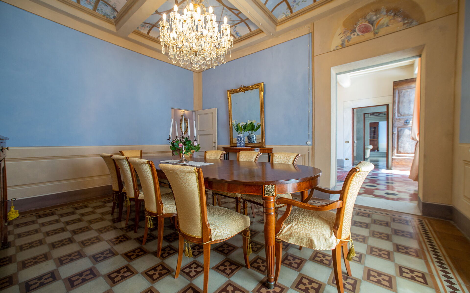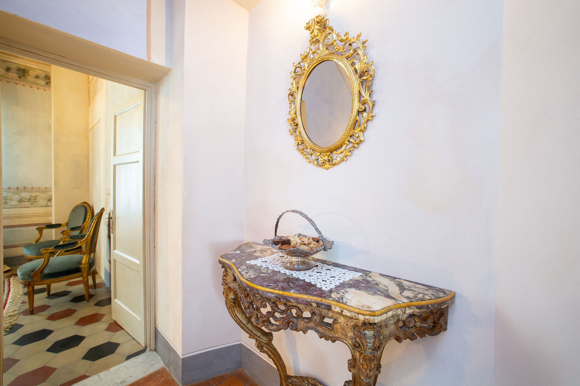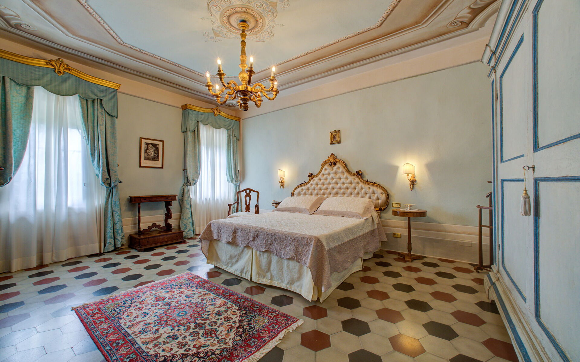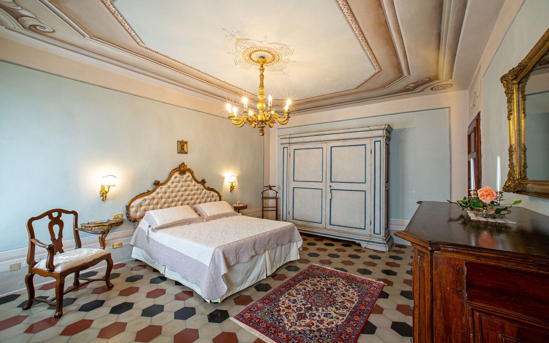 materiali pregiati ed eleganti dorature conferiscono grande fascino ed emozioni uniche a questo antico edificio. La villa, di circa 1.000 mq, si sviluppa su tre piani e può ospitare 18 persone. L'aria condizionata è presente in tutte le stanze, tranne che nella "limonaia".