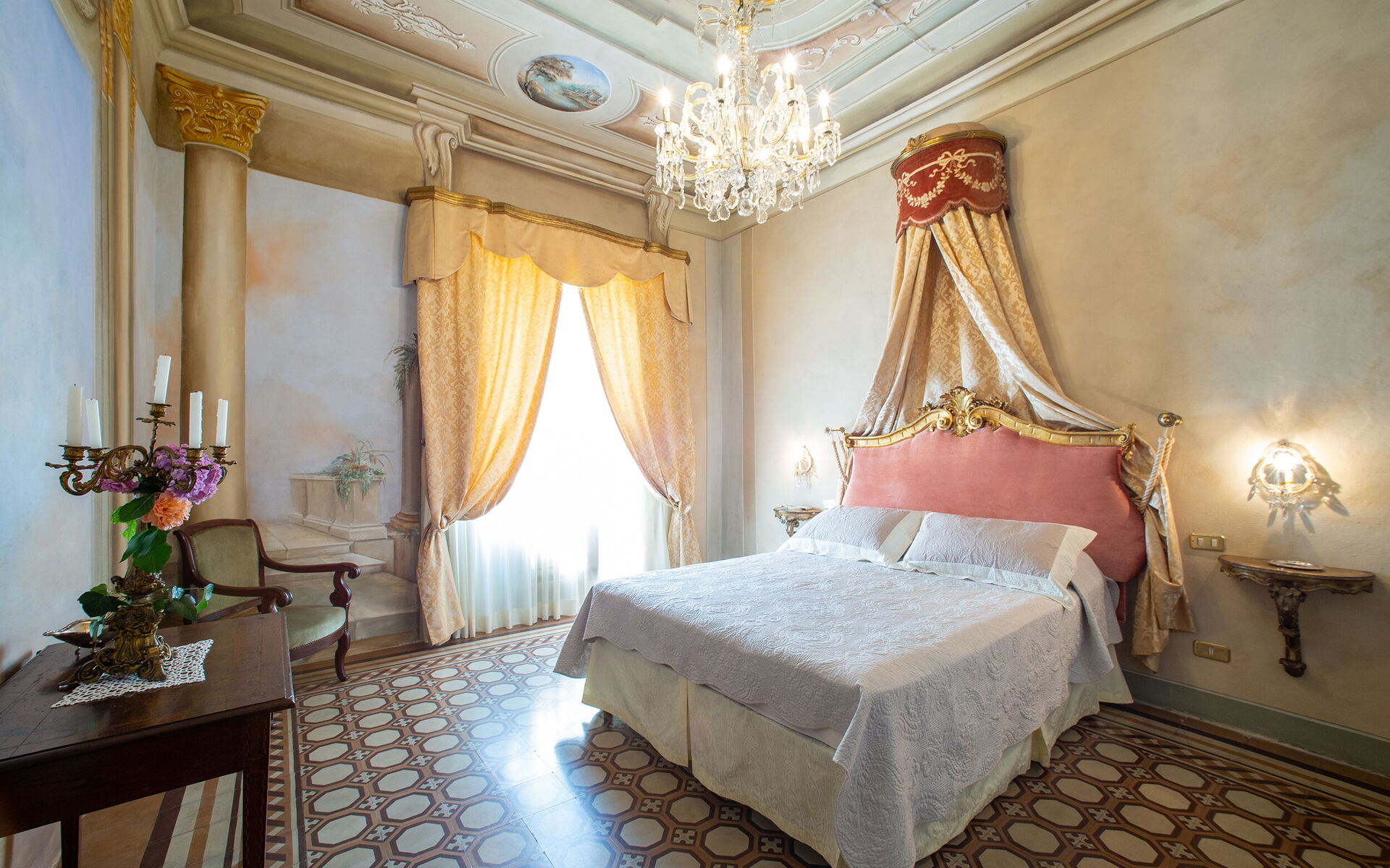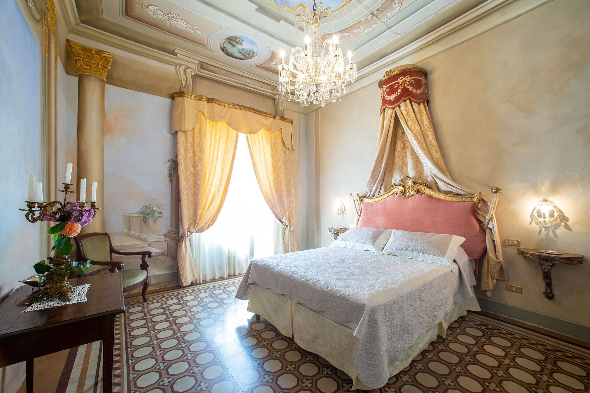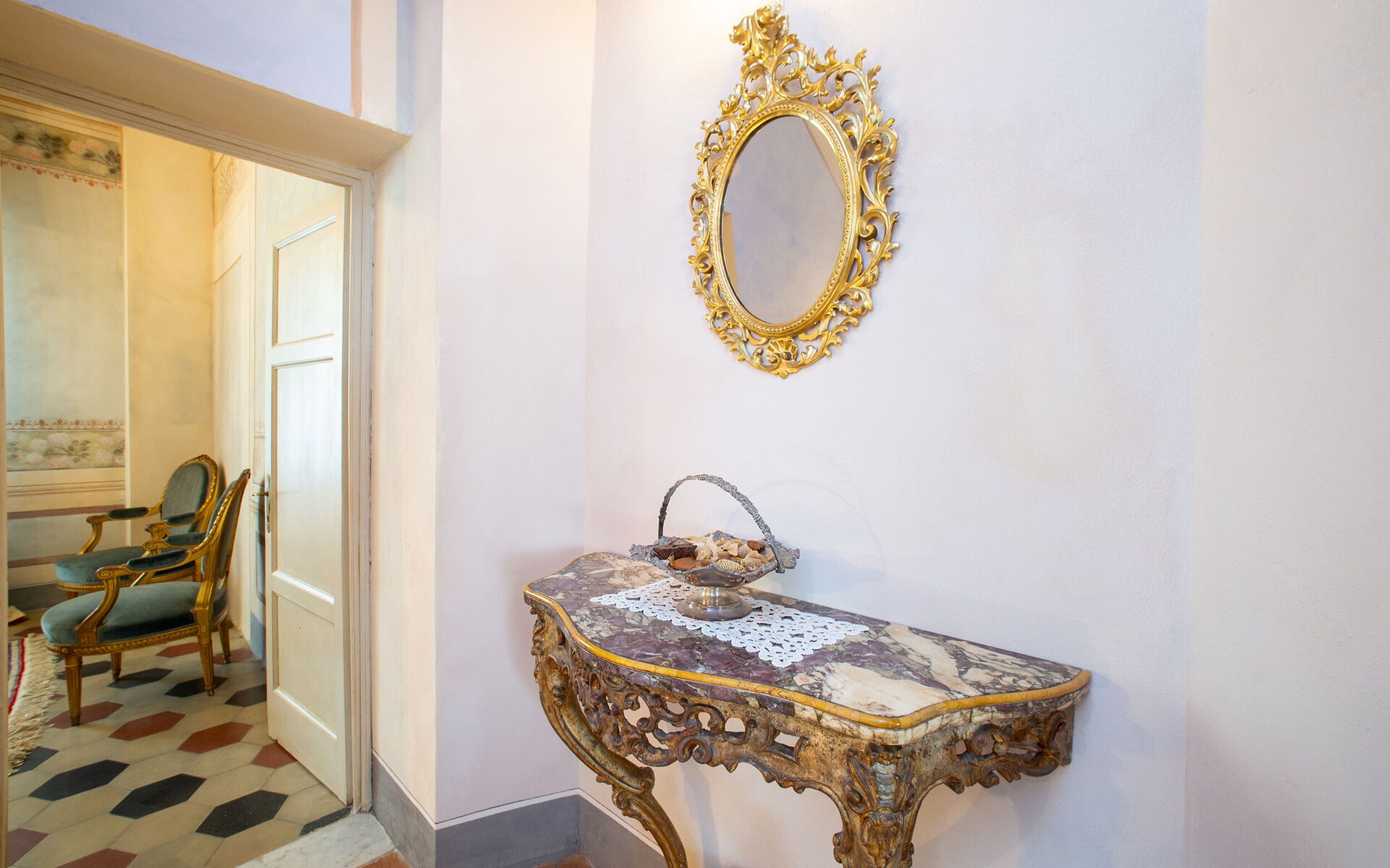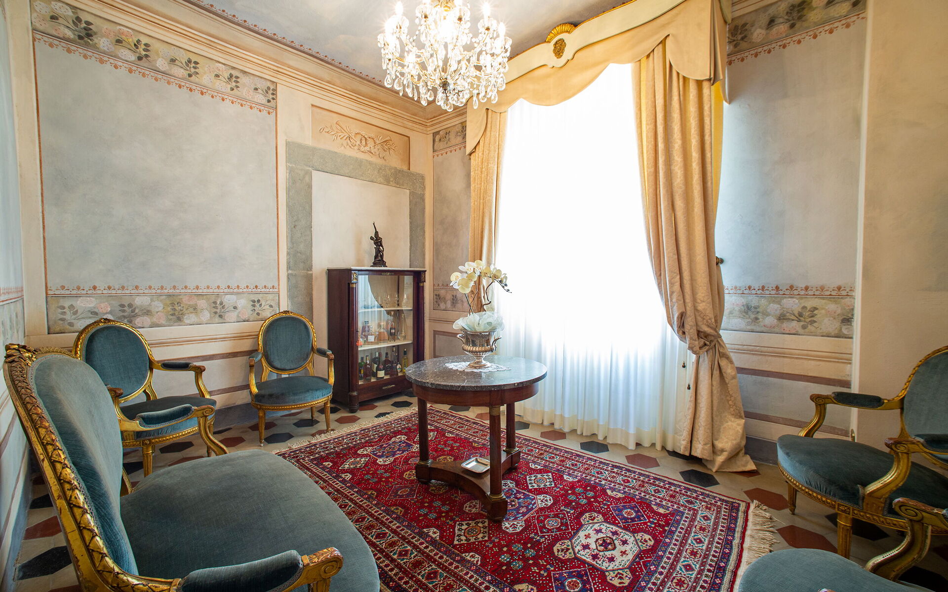 materiali pregiati ed eleganti dorature conferiscono grande fascino ed emozioni uniche a questo antico edificio. La villa, di circa 1.000 mq, si sviluppa su tre piani e può ospitare 18 persone. L'aria condizionata è presente in tutte le stanze, tranne che nella "limonaia".