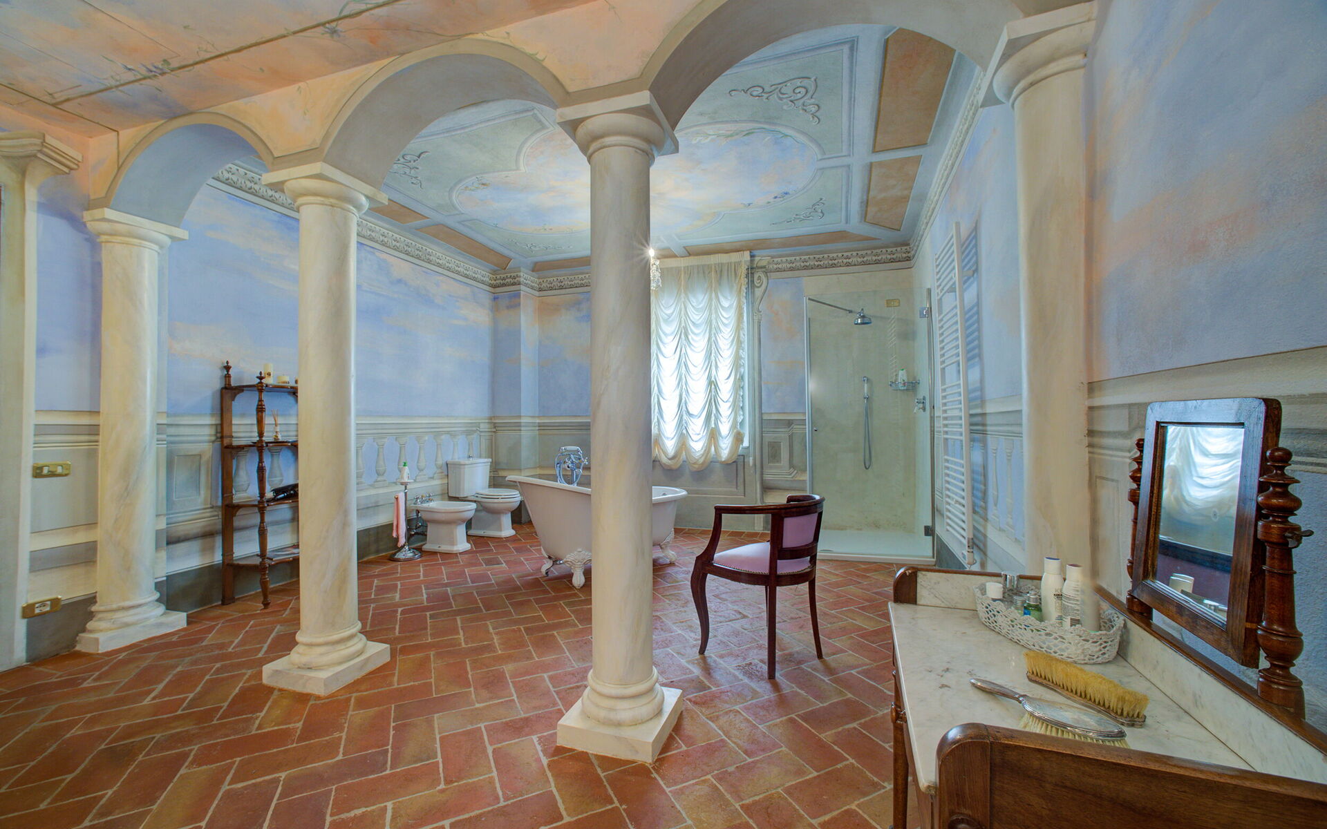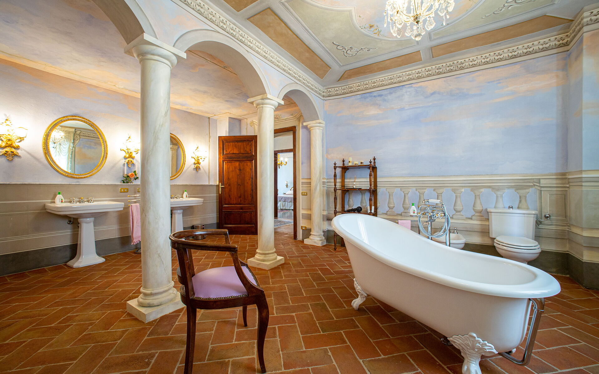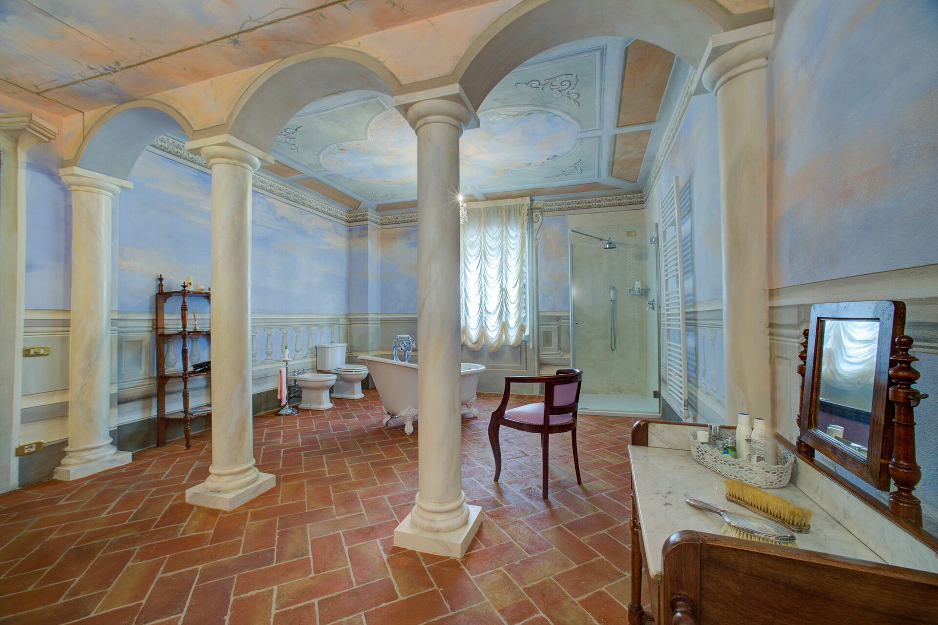 Ci sono 9 camere da letto e 9 bagni. L'interno della villa è decorato con affreschi del 1600/1700, riportati al loro originale splendore nel 2018. Al loro splendore originale nel 2018. Tutti gli elementi che arredano questa spettacolare proprietà sono di altissimo valore storico grazie alla loro autenticità. Dai pavimenti in cotto originali ai soffitti con travi in legno, dai deliziosi camini alle colonne in marmo, fino ai preziosi affreschi. Colonne in marmo, ai preziosi affreschi e decorazioni. L'arredamento elegante e sofisticato con materiali pregiati e