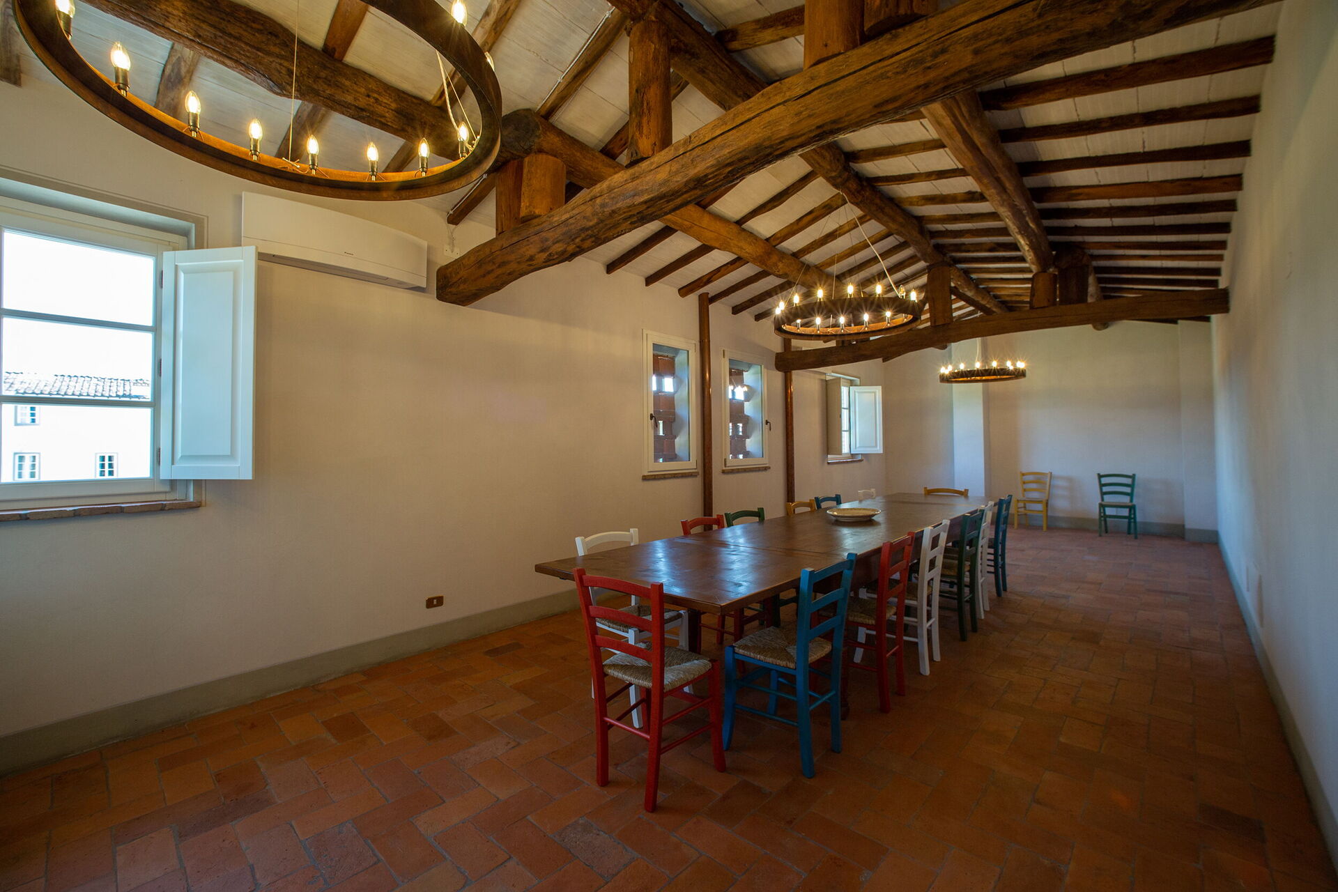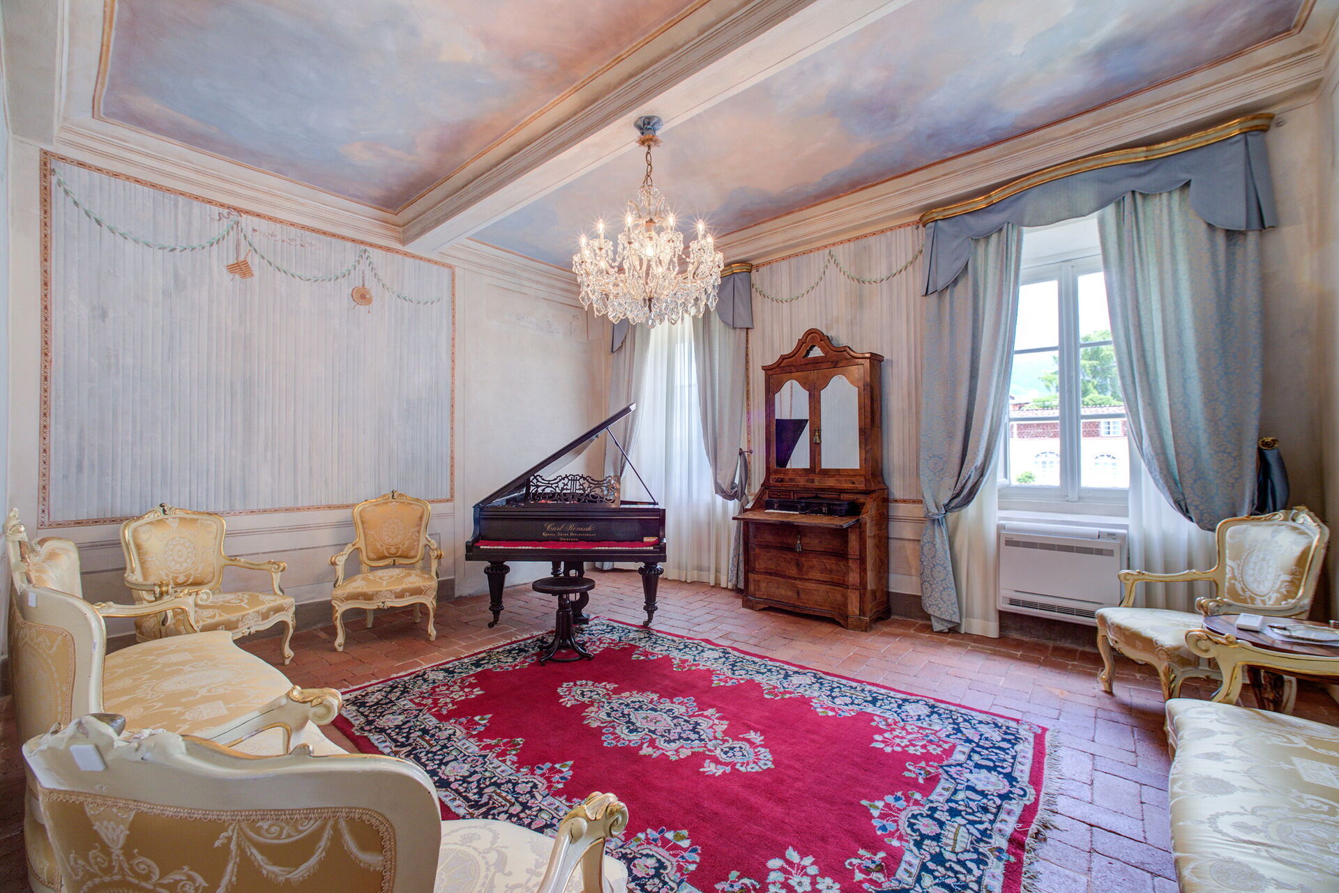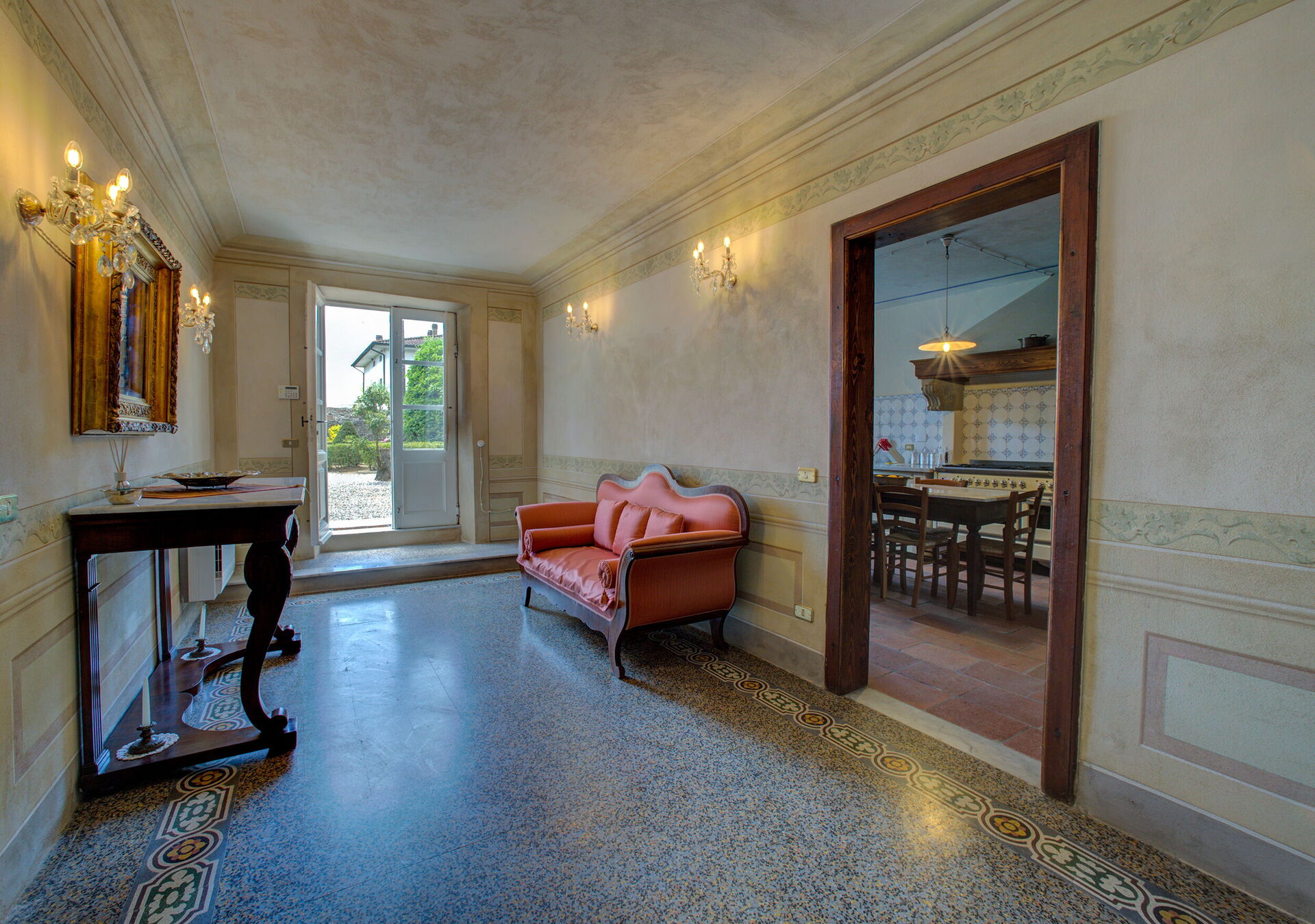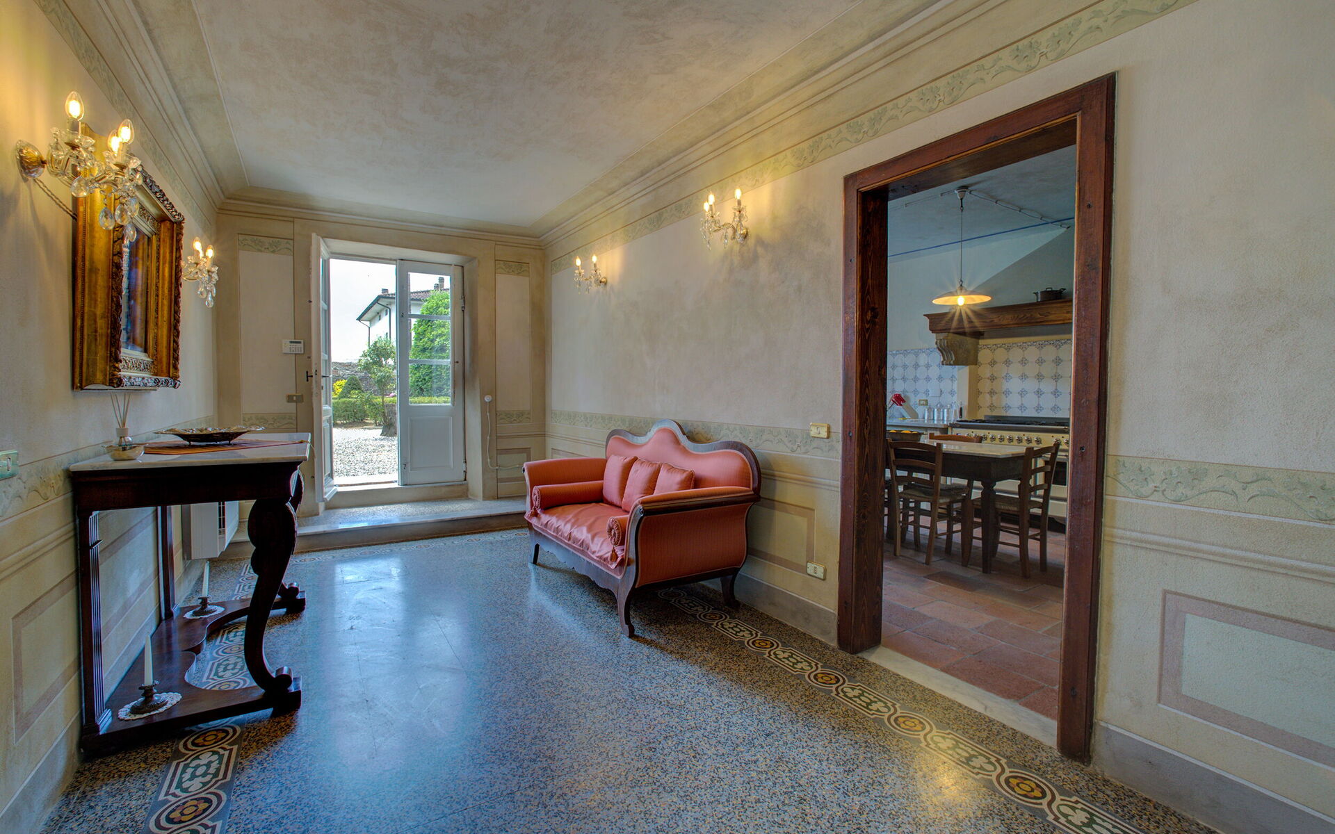 L'ingresso al salone avviene tramite una tipica scala lucchese del XVI secolo. Da questo salone centrale si accede a: un salotto con camino, una sala da pranzo, una sala da pranzo, una sala da pranzo e una sala da pranzo.