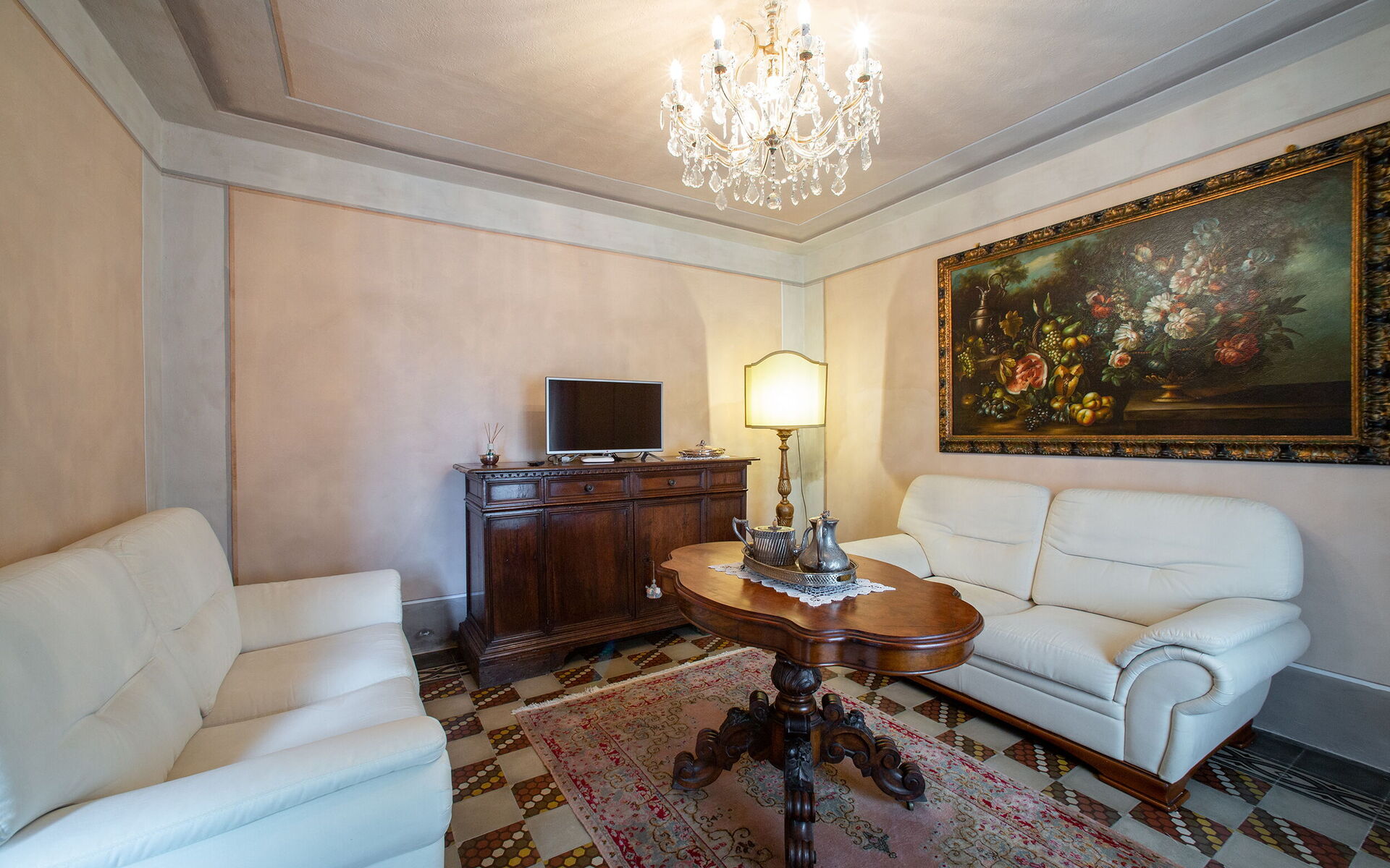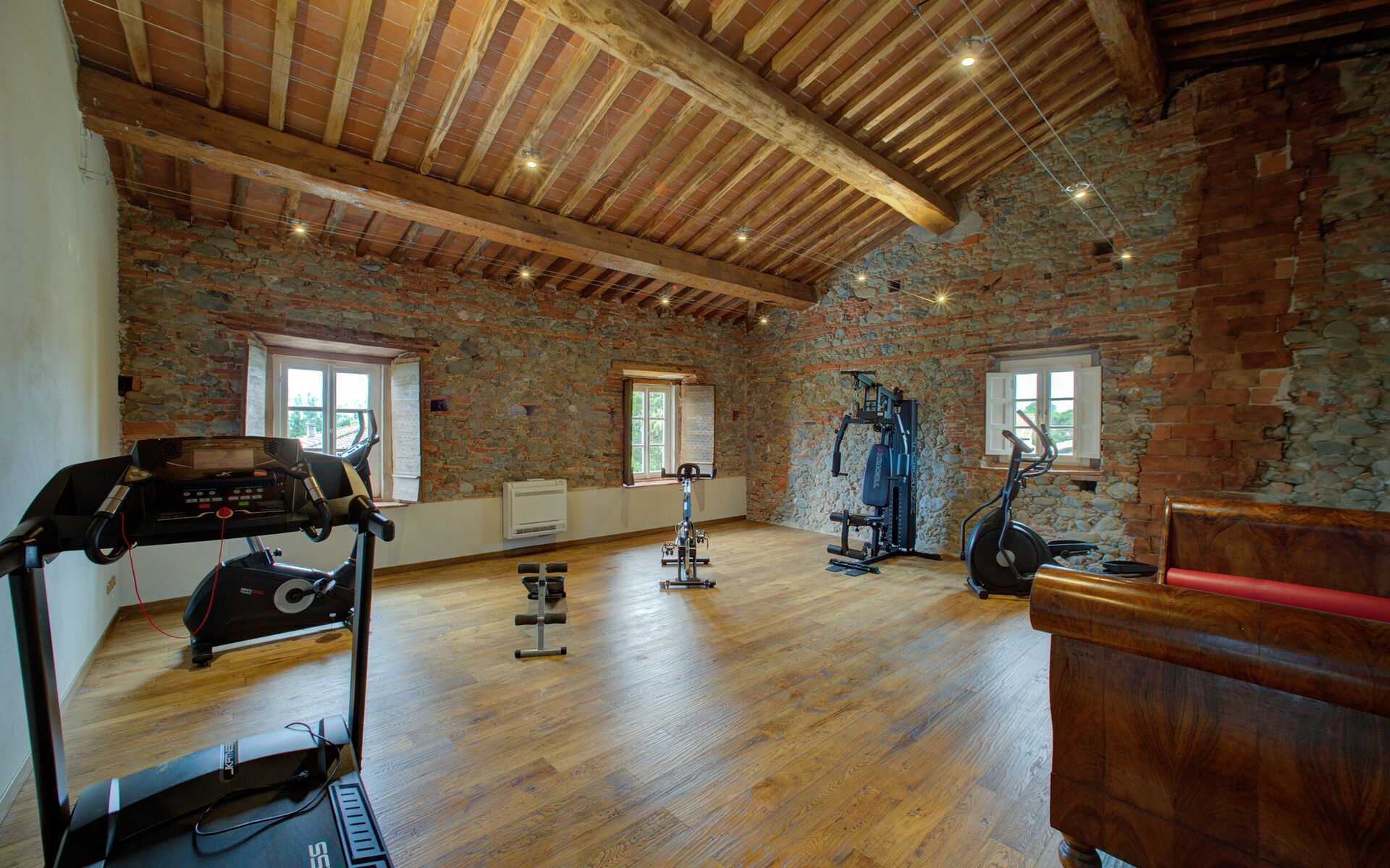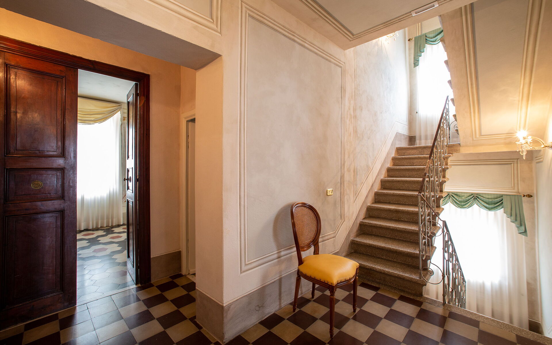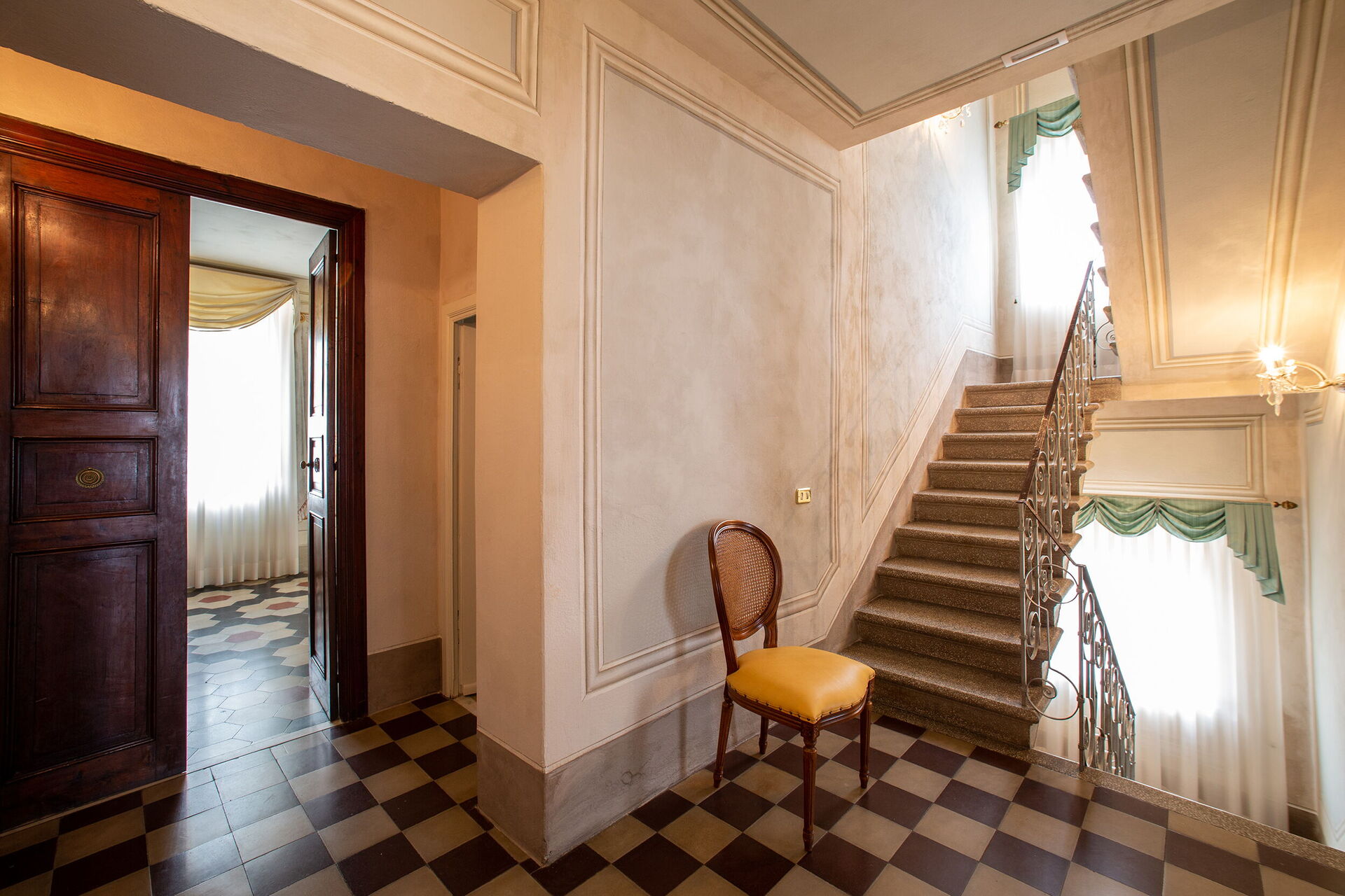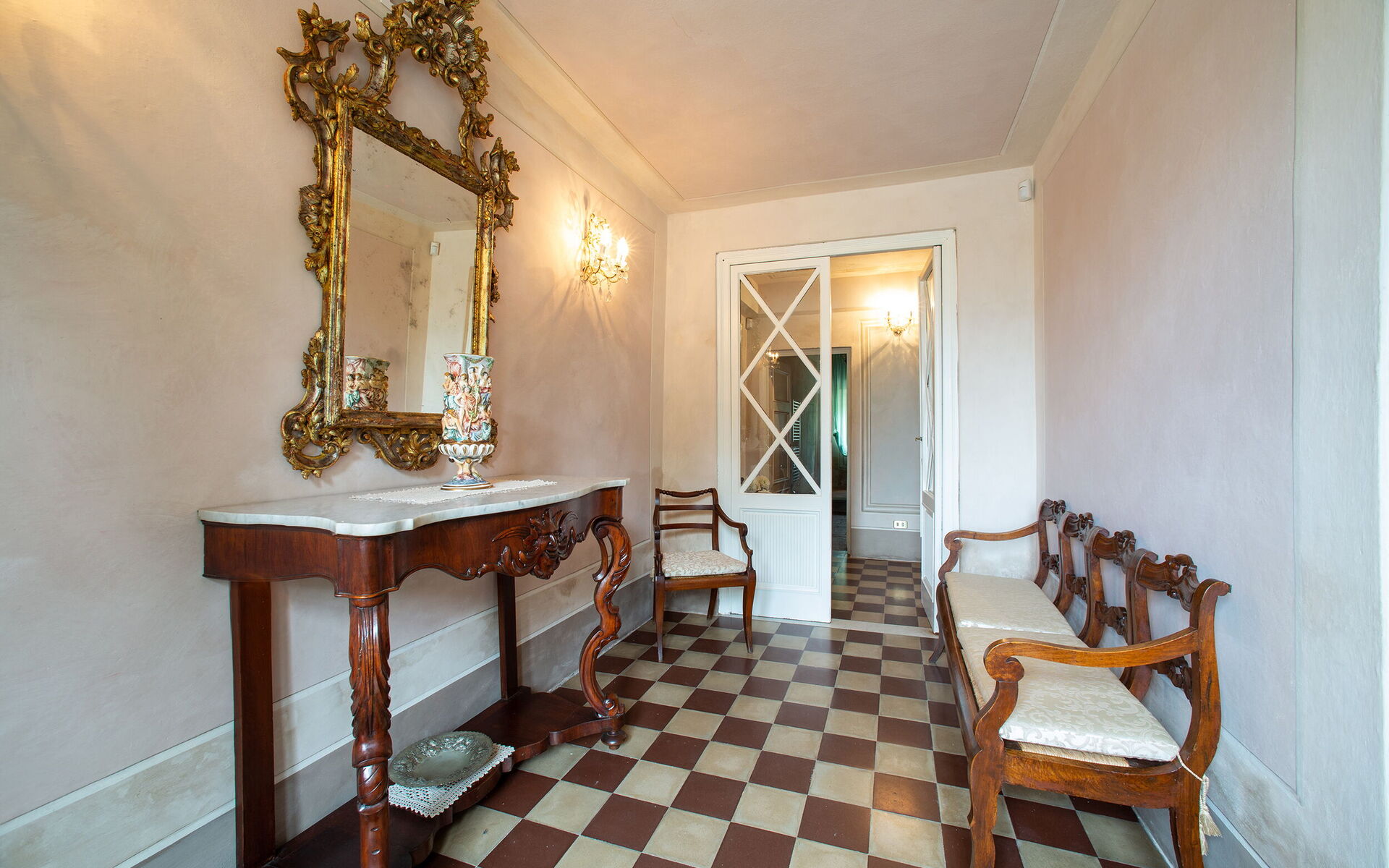 L'ingresso al salone avviene tramite una tipica scala lucchese del XVI secolo. Da questo salone centrale si accede a: un salotto con camino, una sala da pranzo, una sala da pranzo, una sala da pranzo e una sala da pranzo.