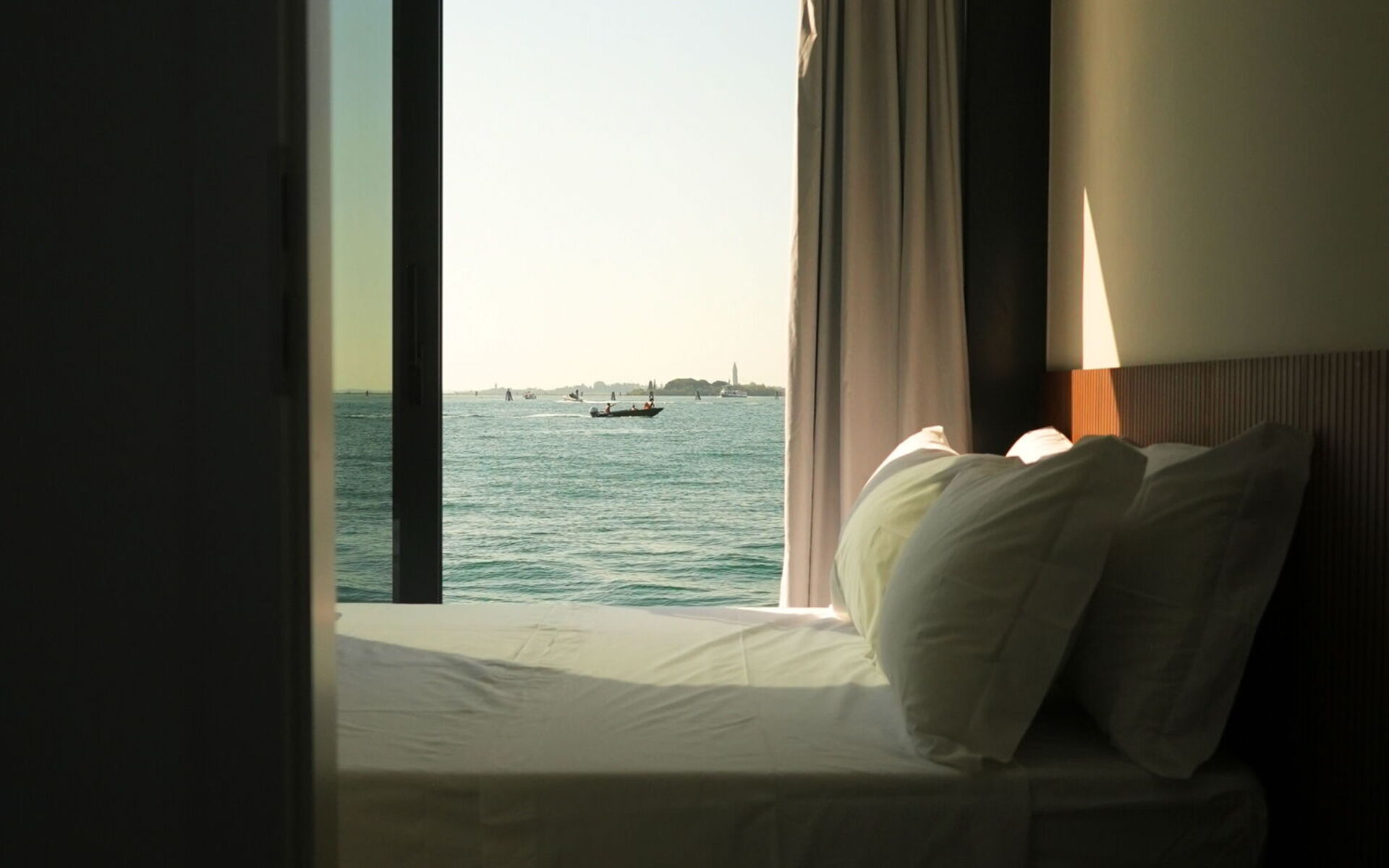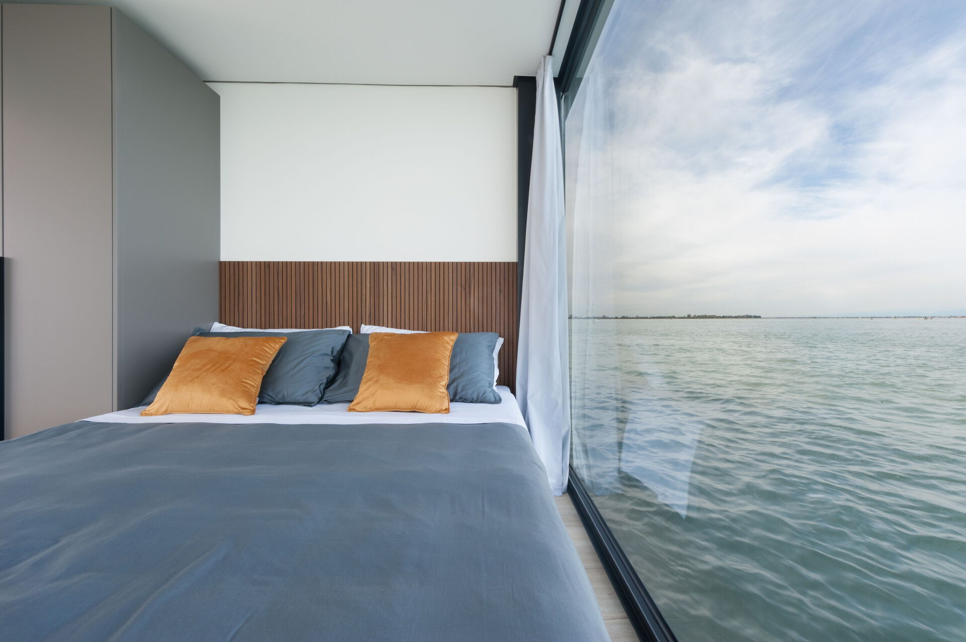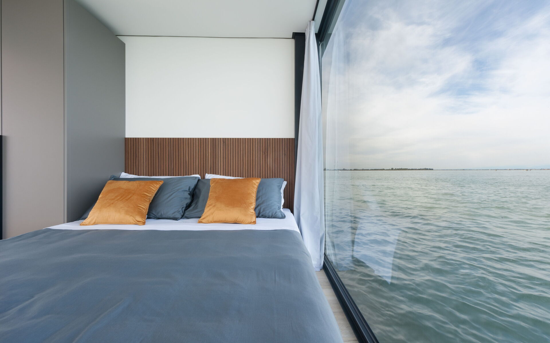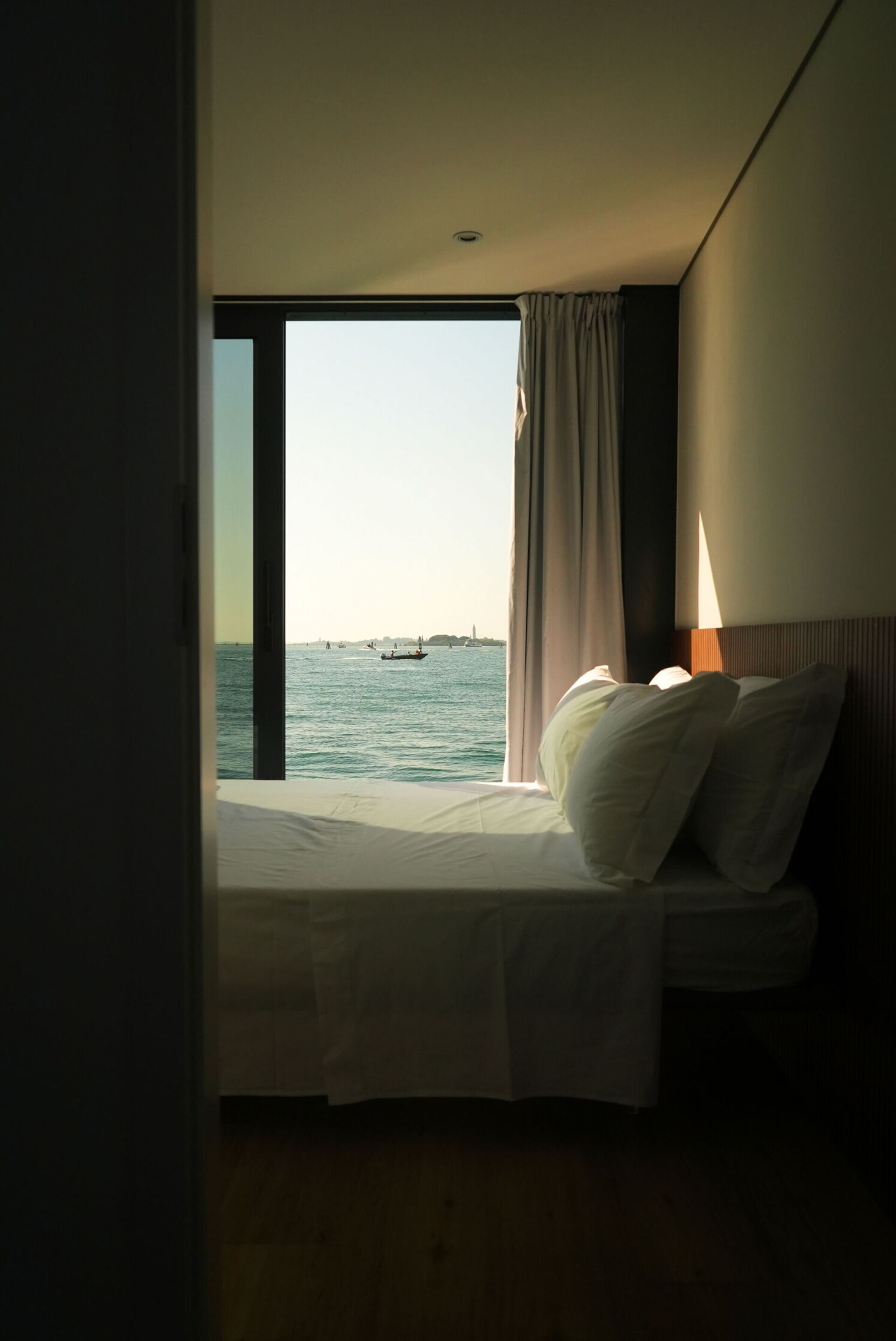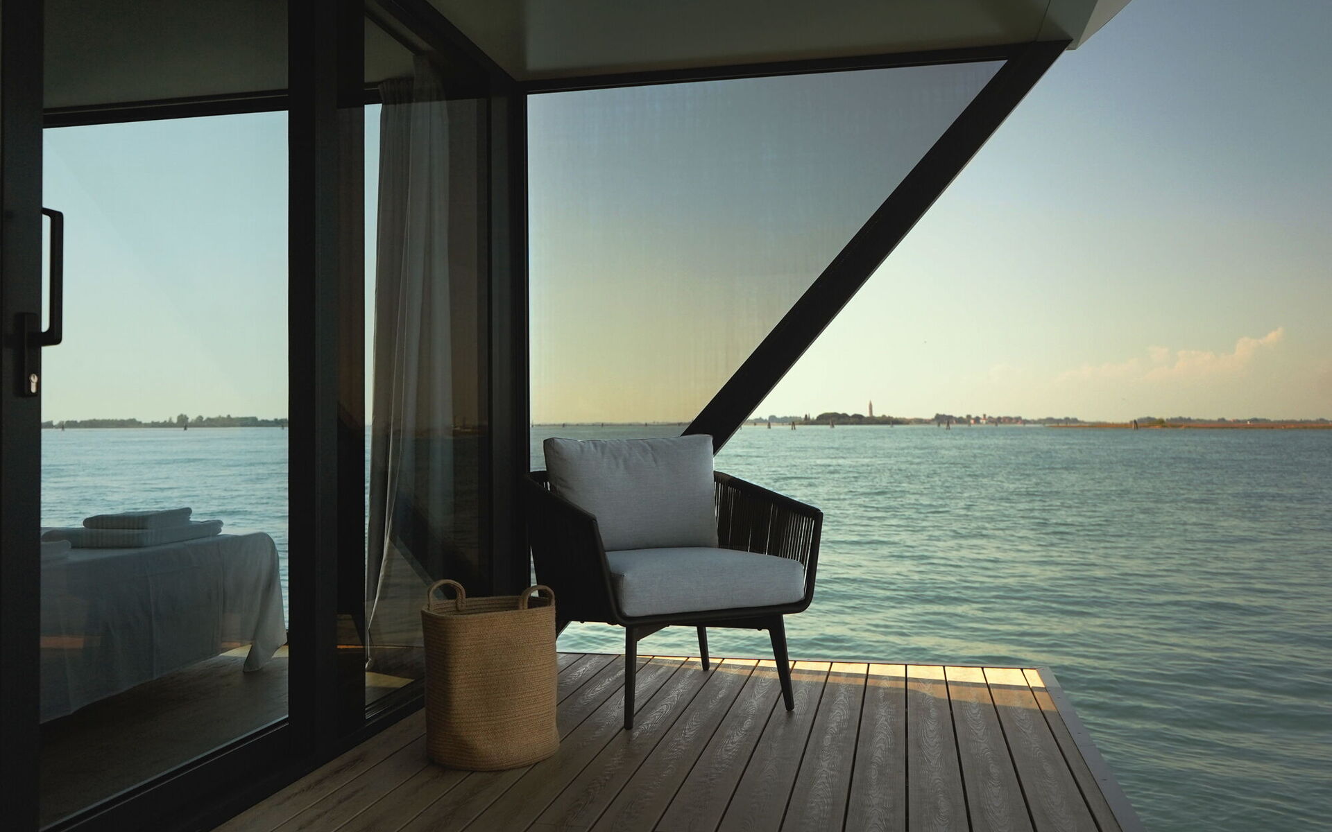 Ogni dettaglio di Venice Escape è stato curato con attenzione per creare una fusione armoniosa di eleganza e comfort. Circondato da pareti di vetro che vanno dal pavimento al soffitto, il loft offre una vista senza ostacoli sulla tranquilla laguna, creando uno spazio abitativo che si sente un tutt'uno con la natura.
