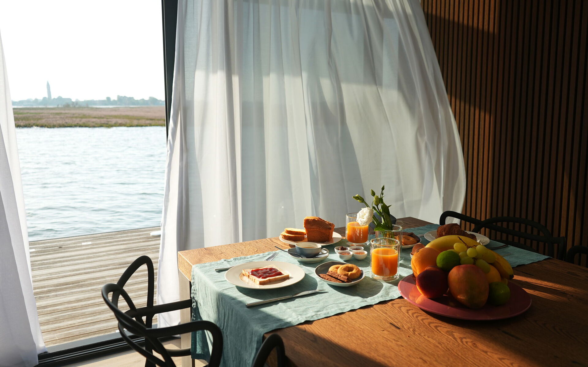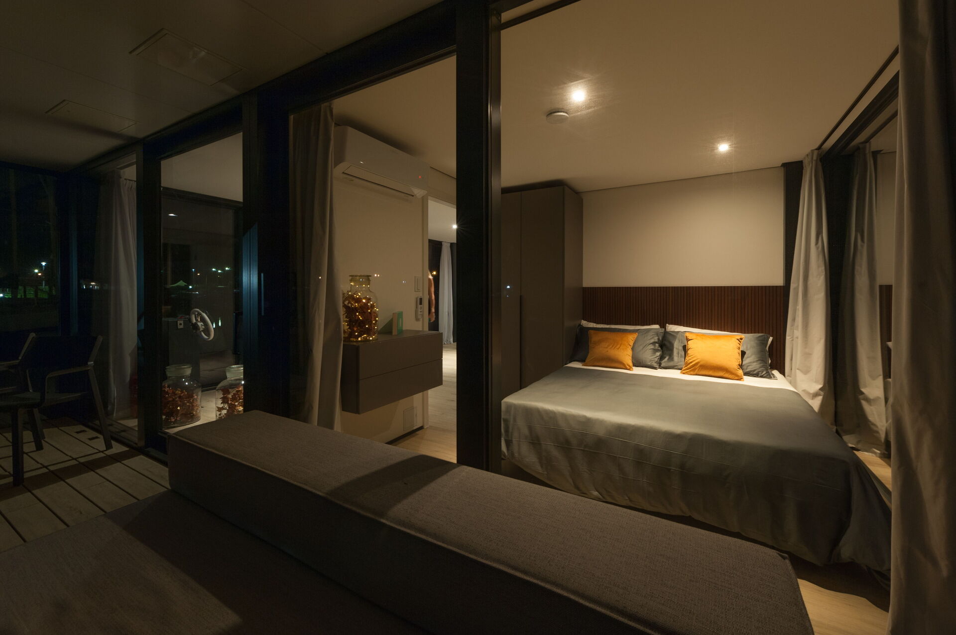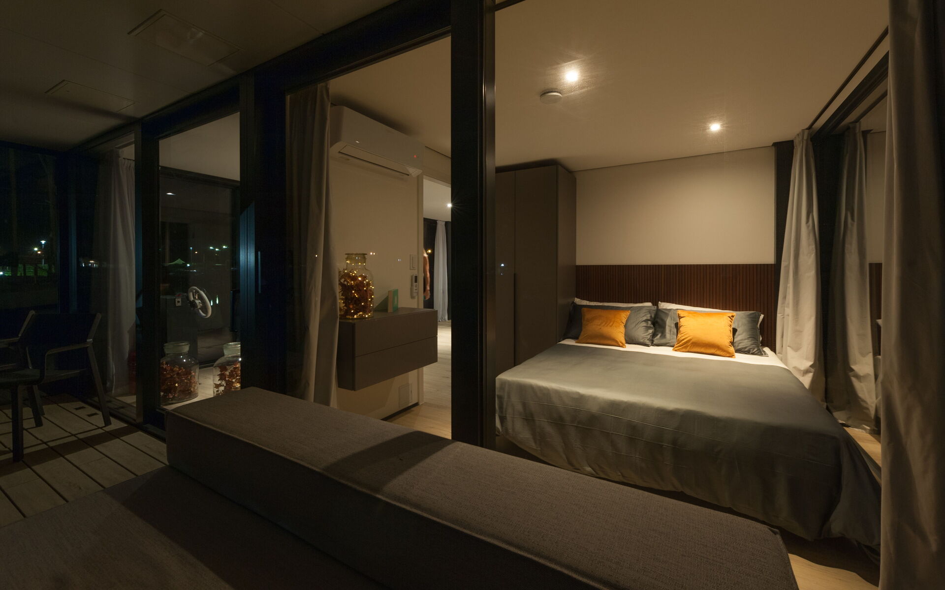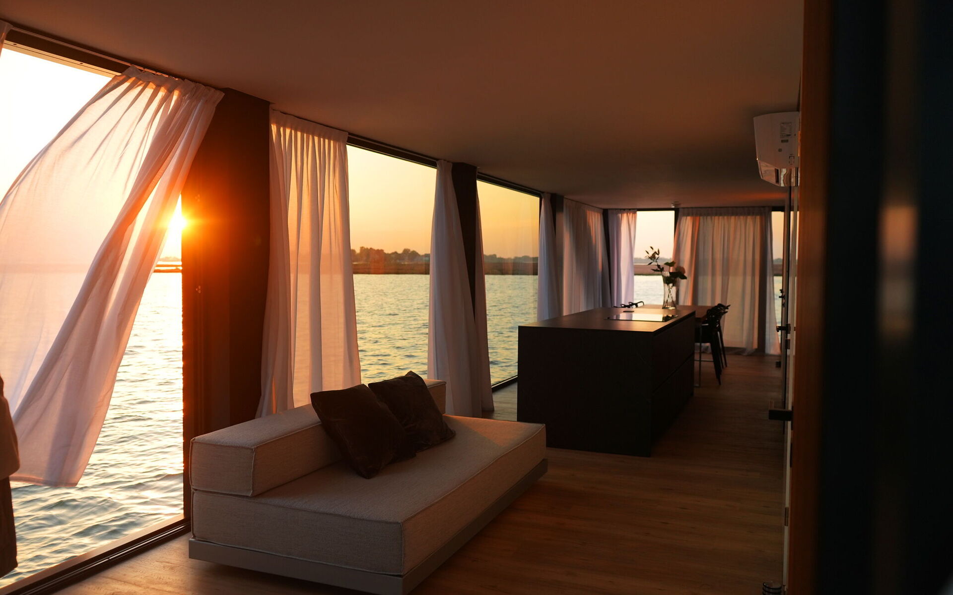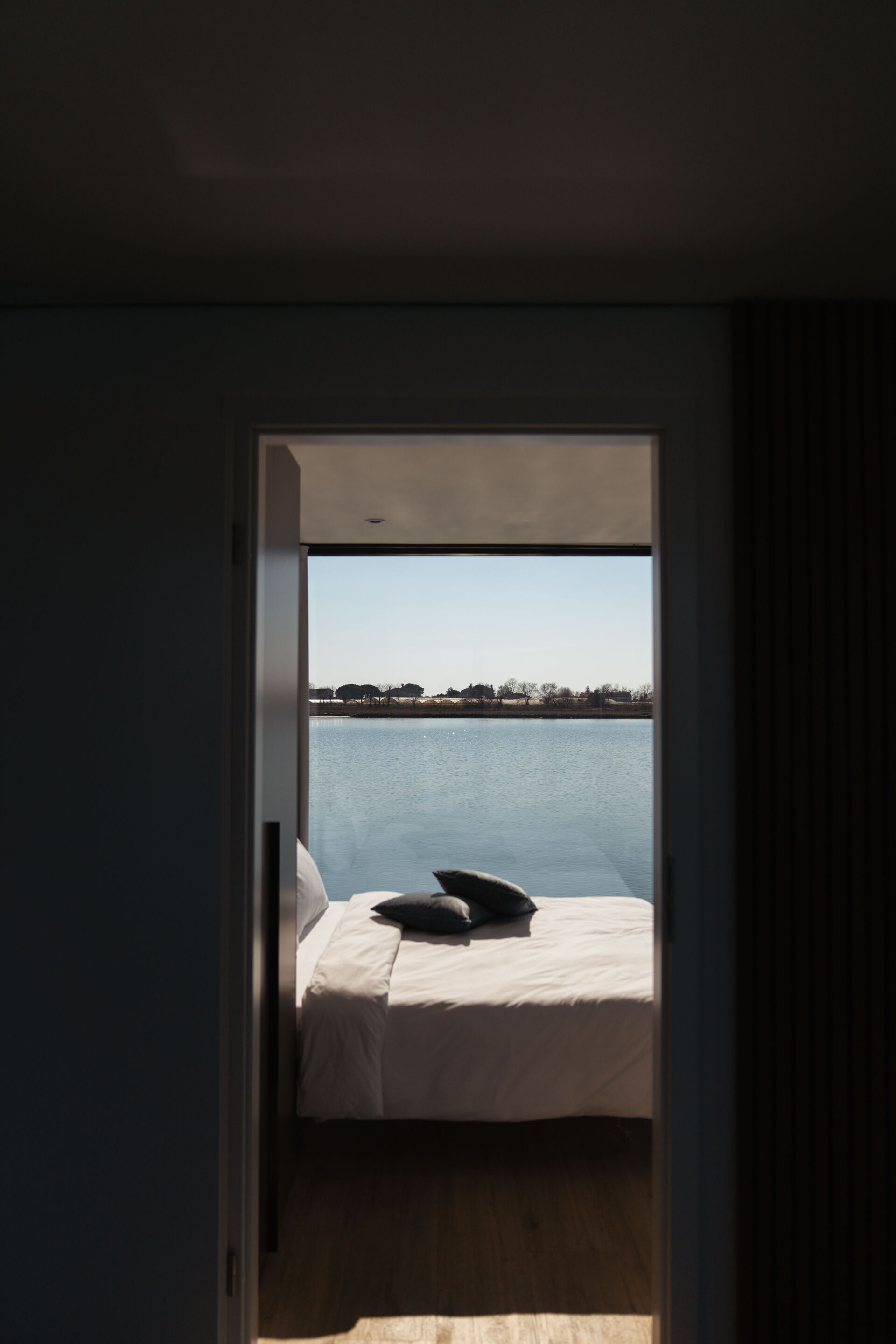 Ogni dettaglio di Venice Escape è stato curato con attenzione per creare una fusione armoniosa di eleganza e comfort. Circondato da pareti di vetro che vanno dal pavimento al soffitto, il loft offre una vista senza ostacoli sulla tranquilla laguna, creando uno spazio abitativo che si sente un tutt'uno con la natura.