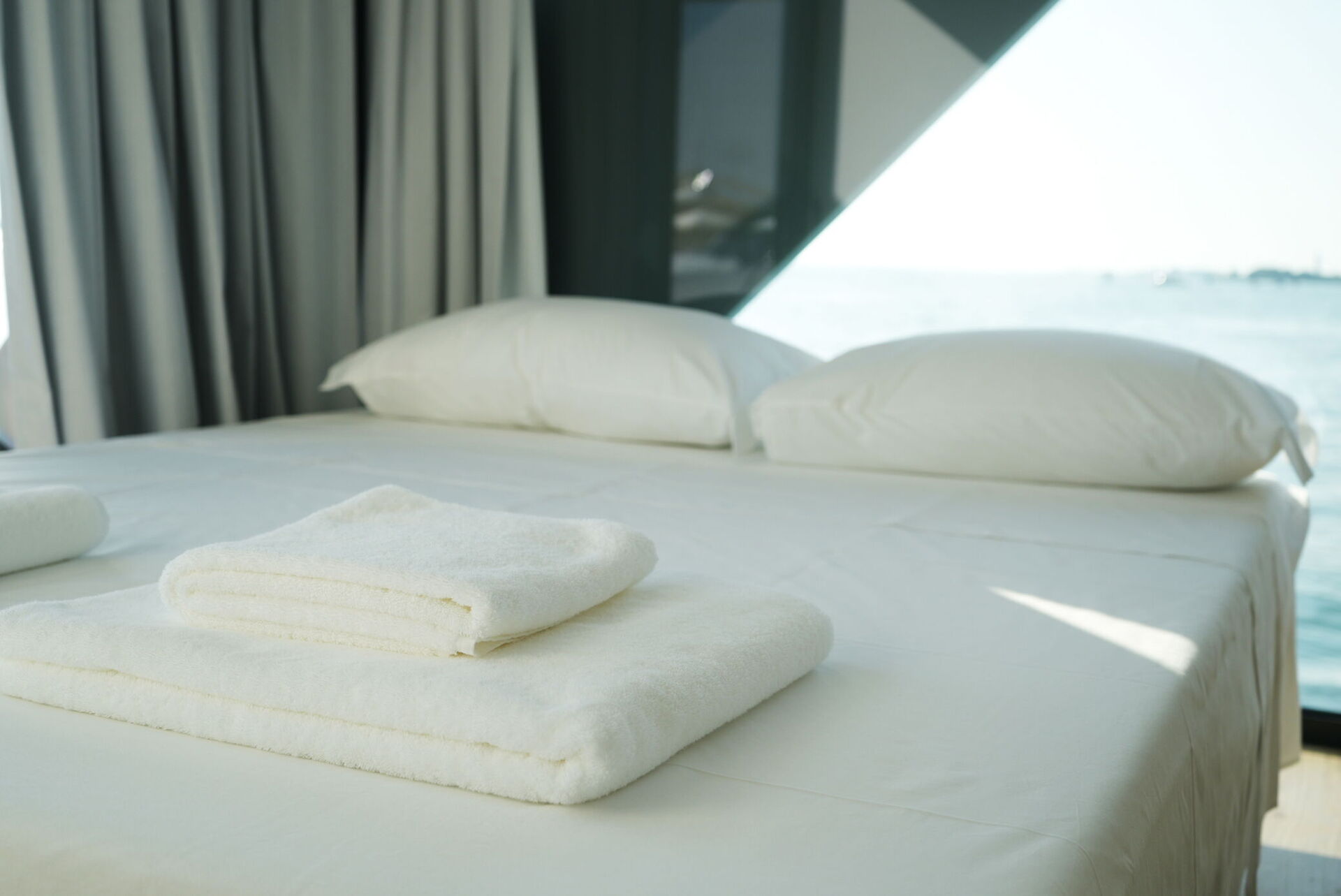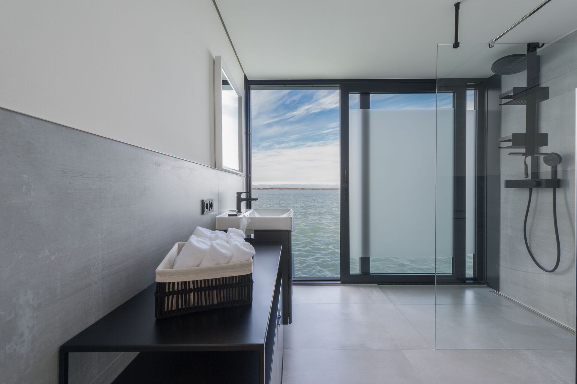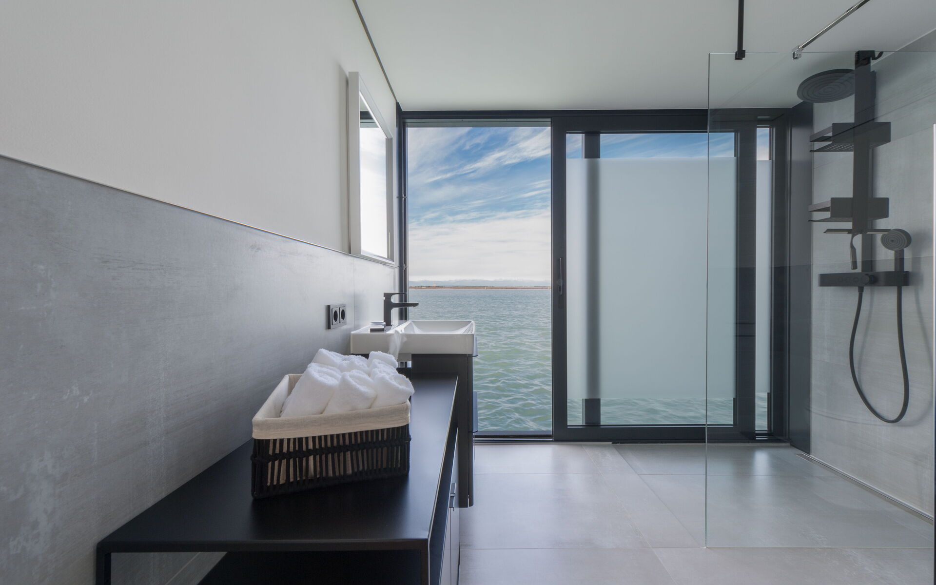 Il bagno moderno è un vero capolavoro di design. Con finiture di alto livello e una spaziosa doccia walk-in che sembra un'estensione della laguna, ogni dettaglio è stato realizzato per garantire comfort e stile. Articoli da bagno e prodotti di lusso completano l'esperienza, offrendo momenti di indulgenza e relax.