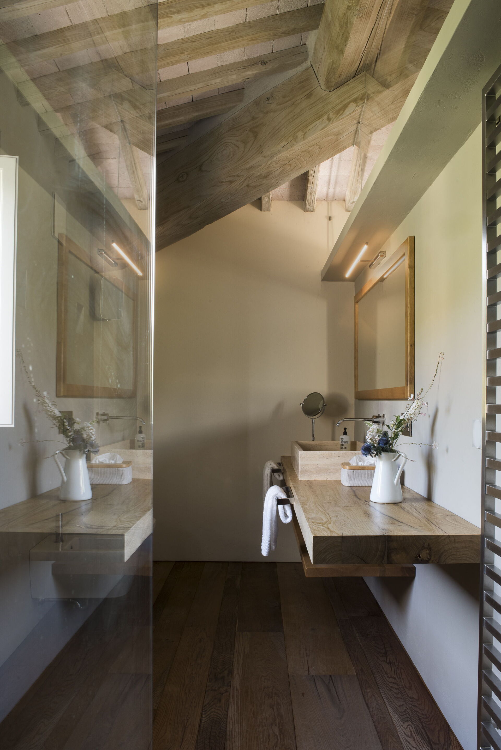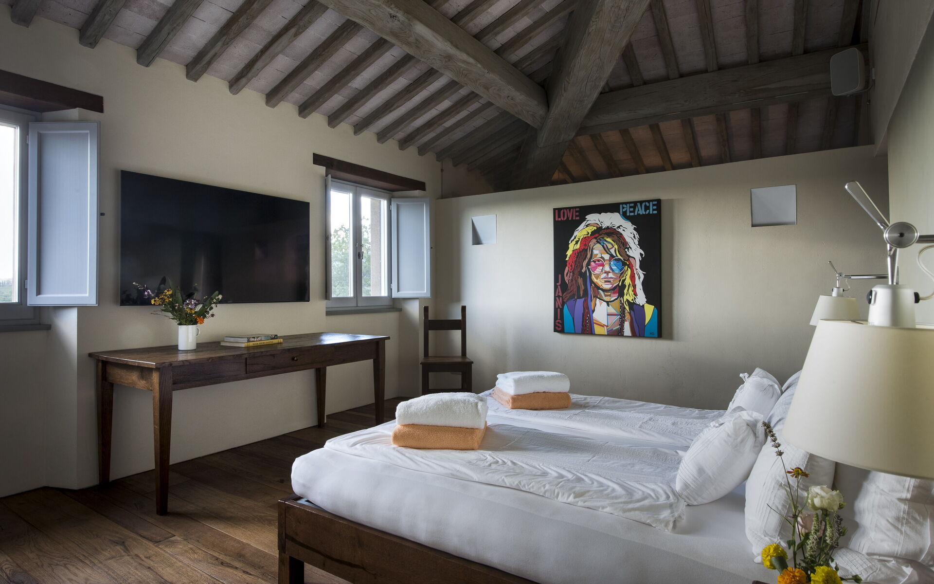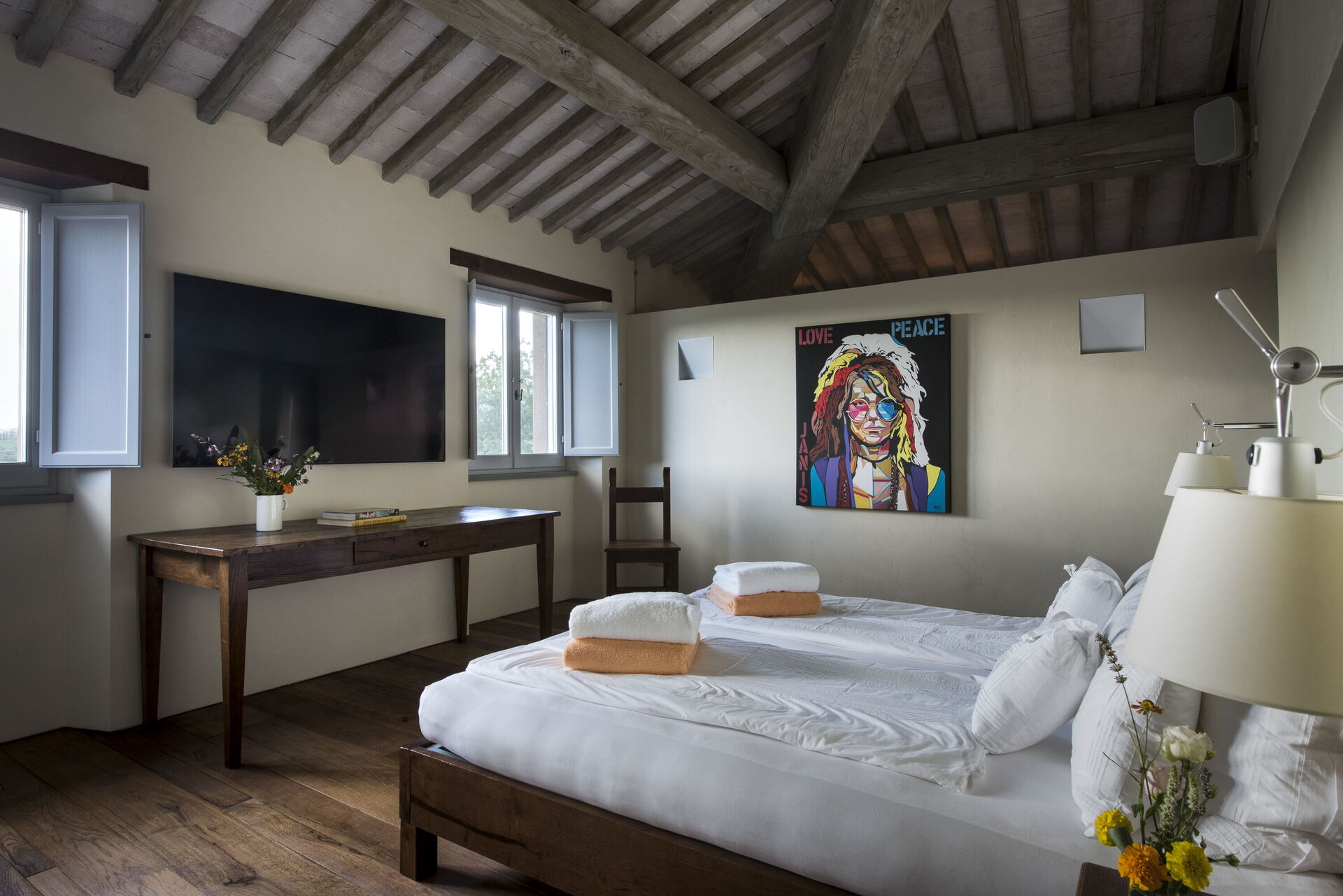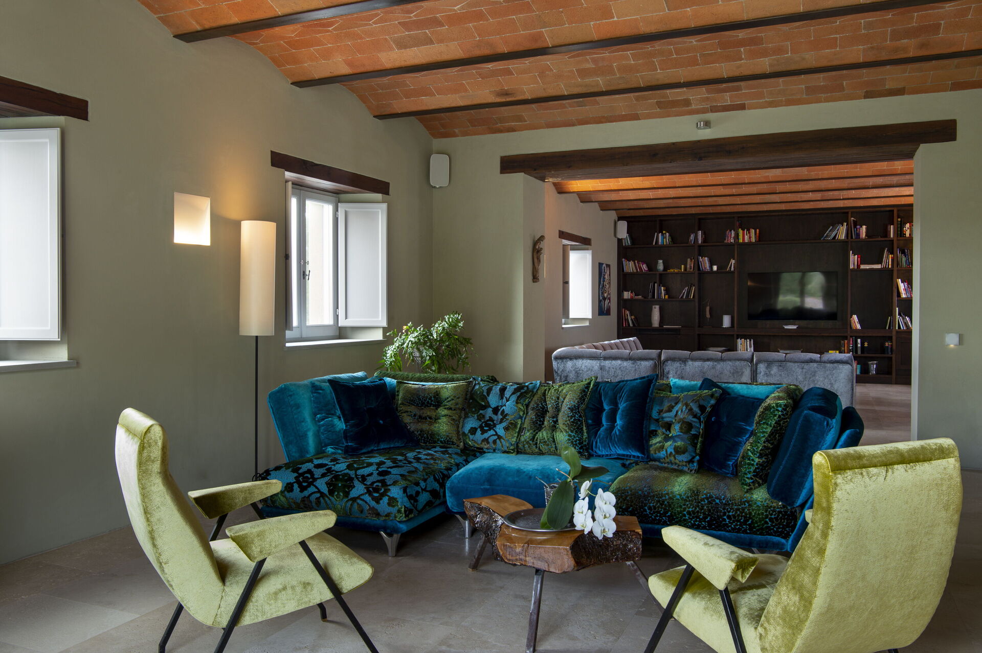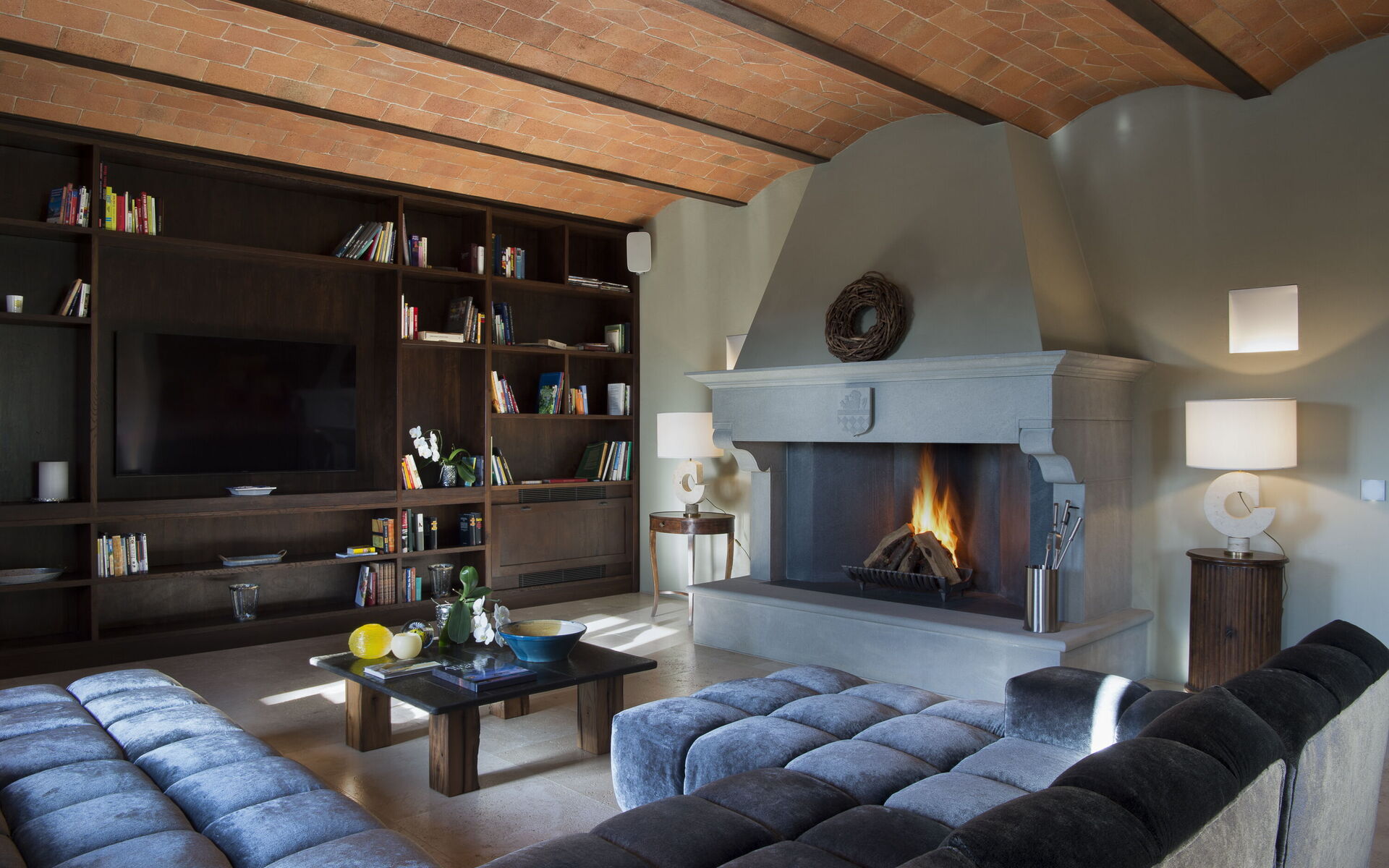 The interior of the villa offers the fascination of stone walls, “cotto” vaulted ceilings, wooden beams and the spaciousness typical of this kind of architecture. This is united to a fresh, modern, creative design in the furnishings. An eclectic mix of rustic and modern styles.