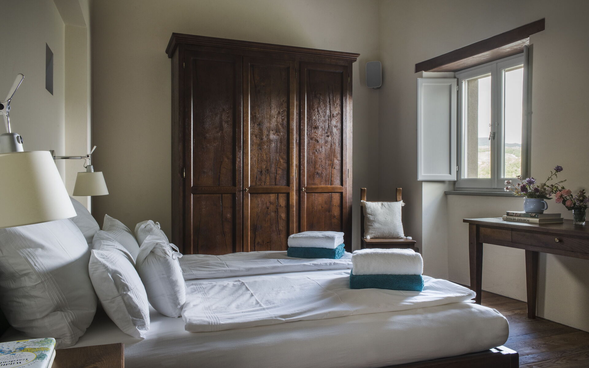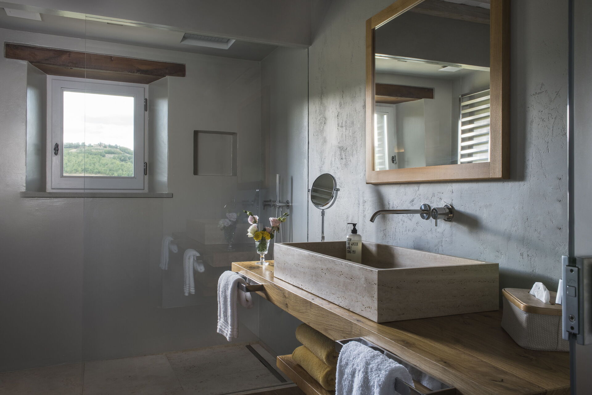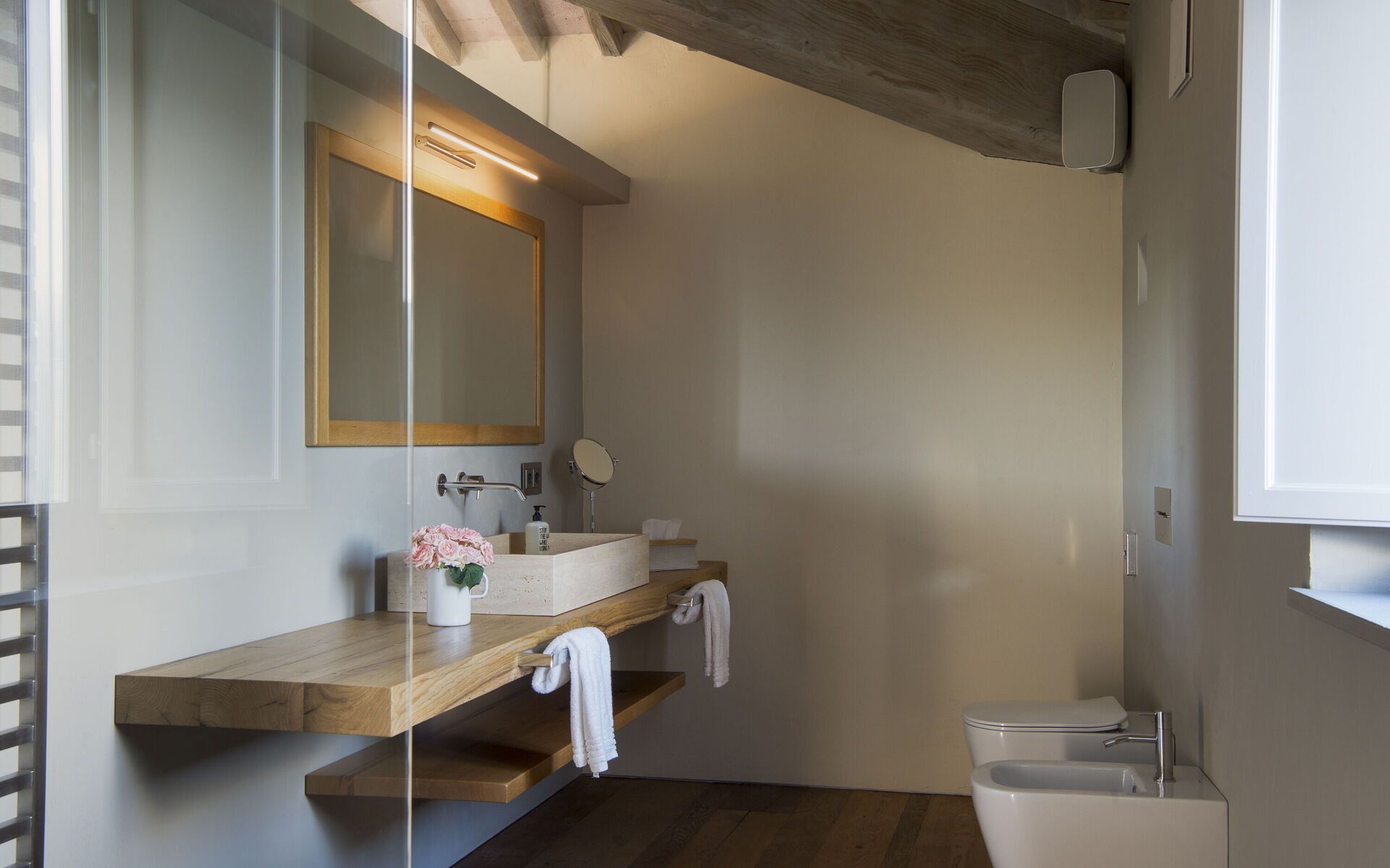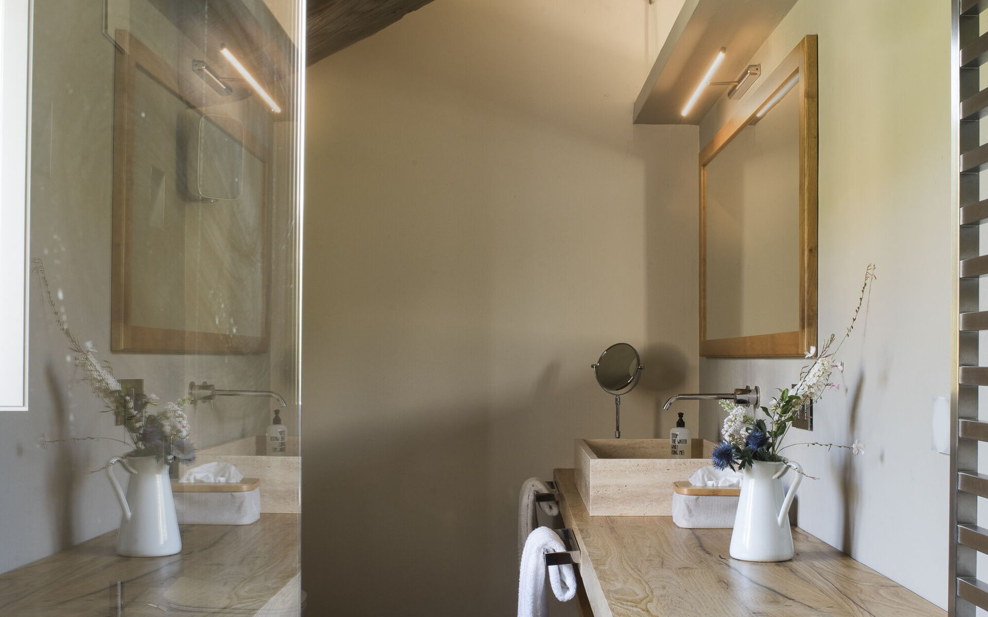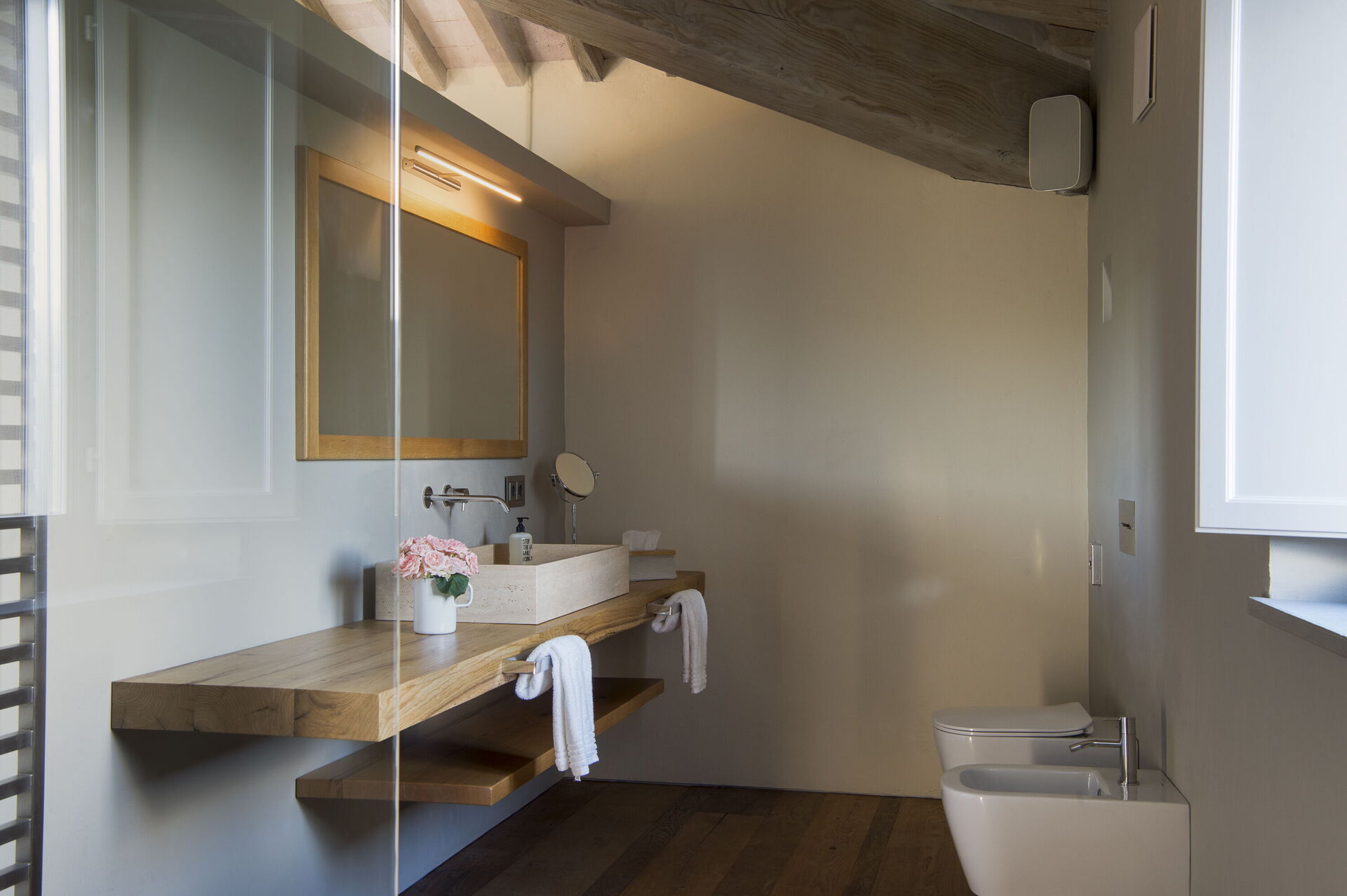 The interior of the villa offers the fascination of stone walls, “cotto” vaulted ceilings, wooden beams and the spaciousness typical of this kind of architecture. This is united to a fresh, modern, creative design in the furnishings. An eclectic mix of rustic and modern styles.