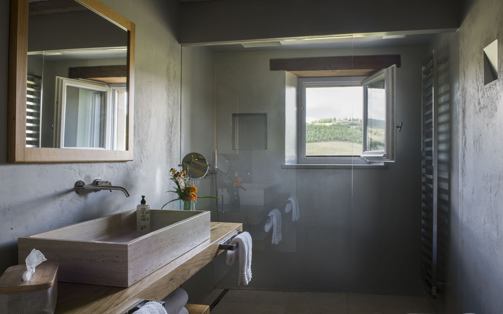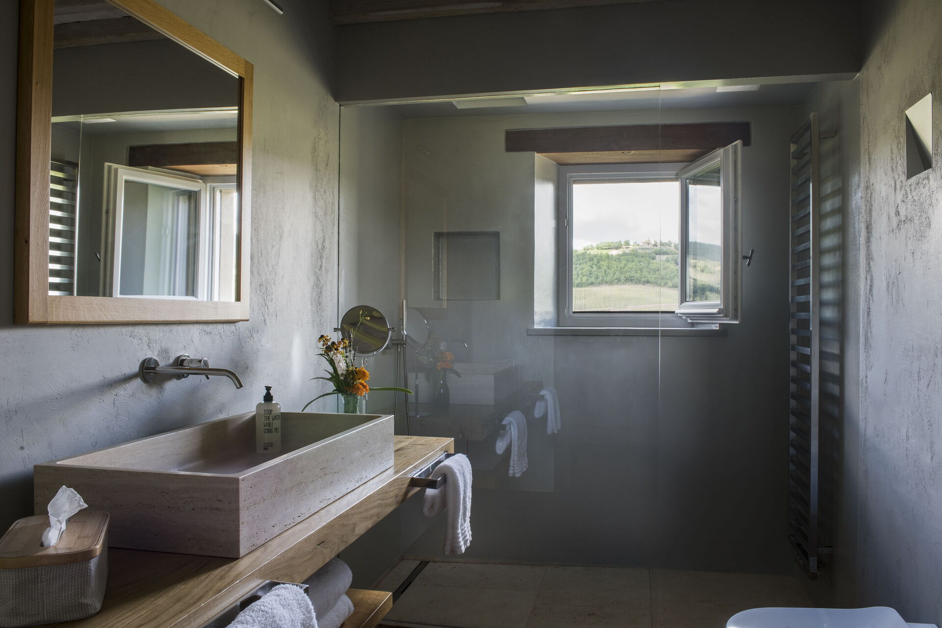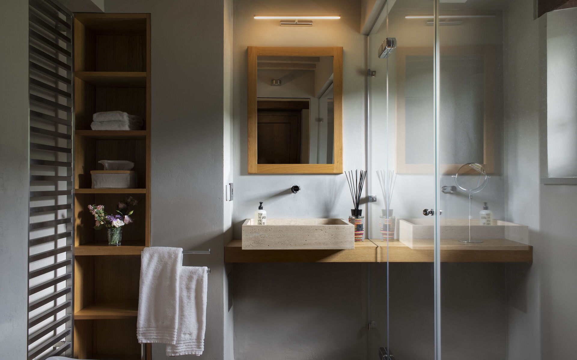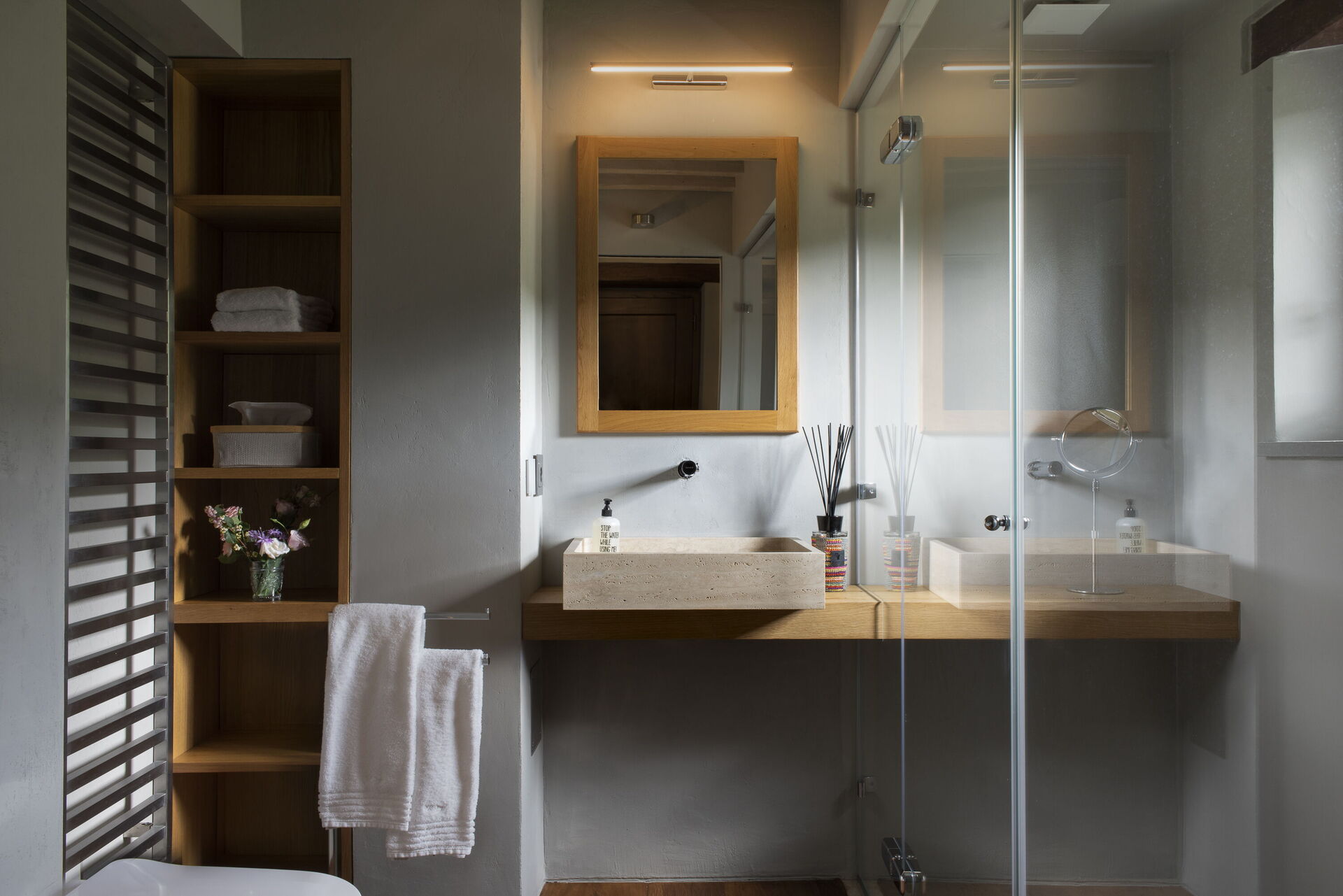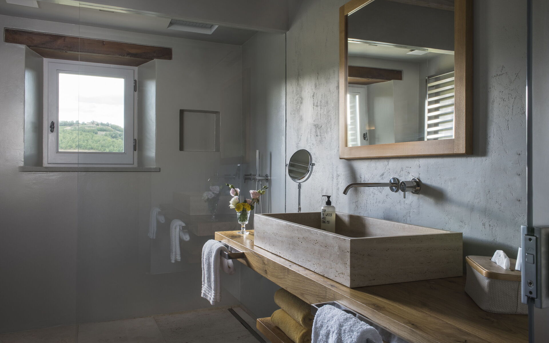 The interior of the villa offers the fascination of stone walls, “cotto” vaulted ceilings, wooden beams and the spaciousness typical of this kind of architecture. This is united to a fresh, modern, creative design in the furnishings. An eclectic mix of rustic and modern styles.
