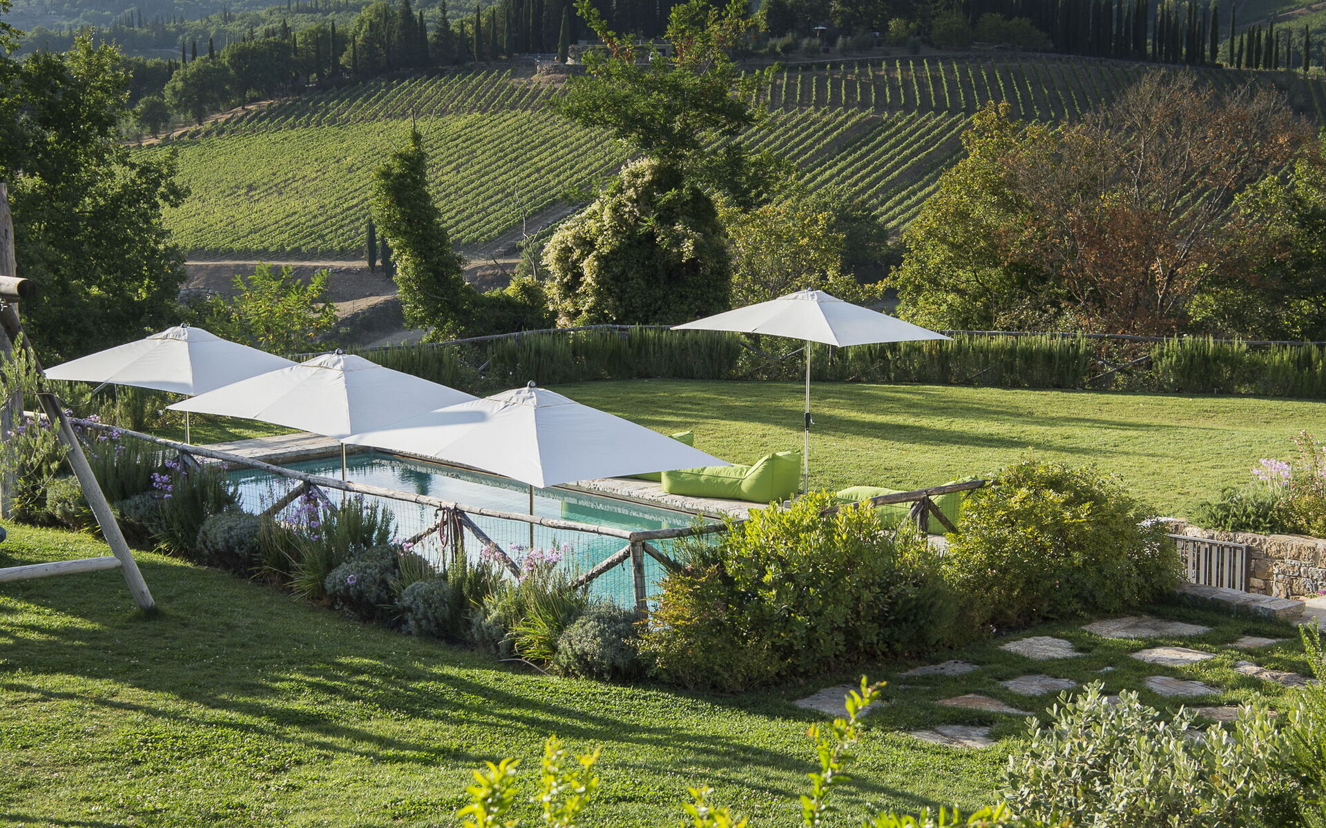 Villa Pianoro is a charming, panoramic villa in the rolling hills of Radda in Chianti which looks out over vineyards and olive groves.