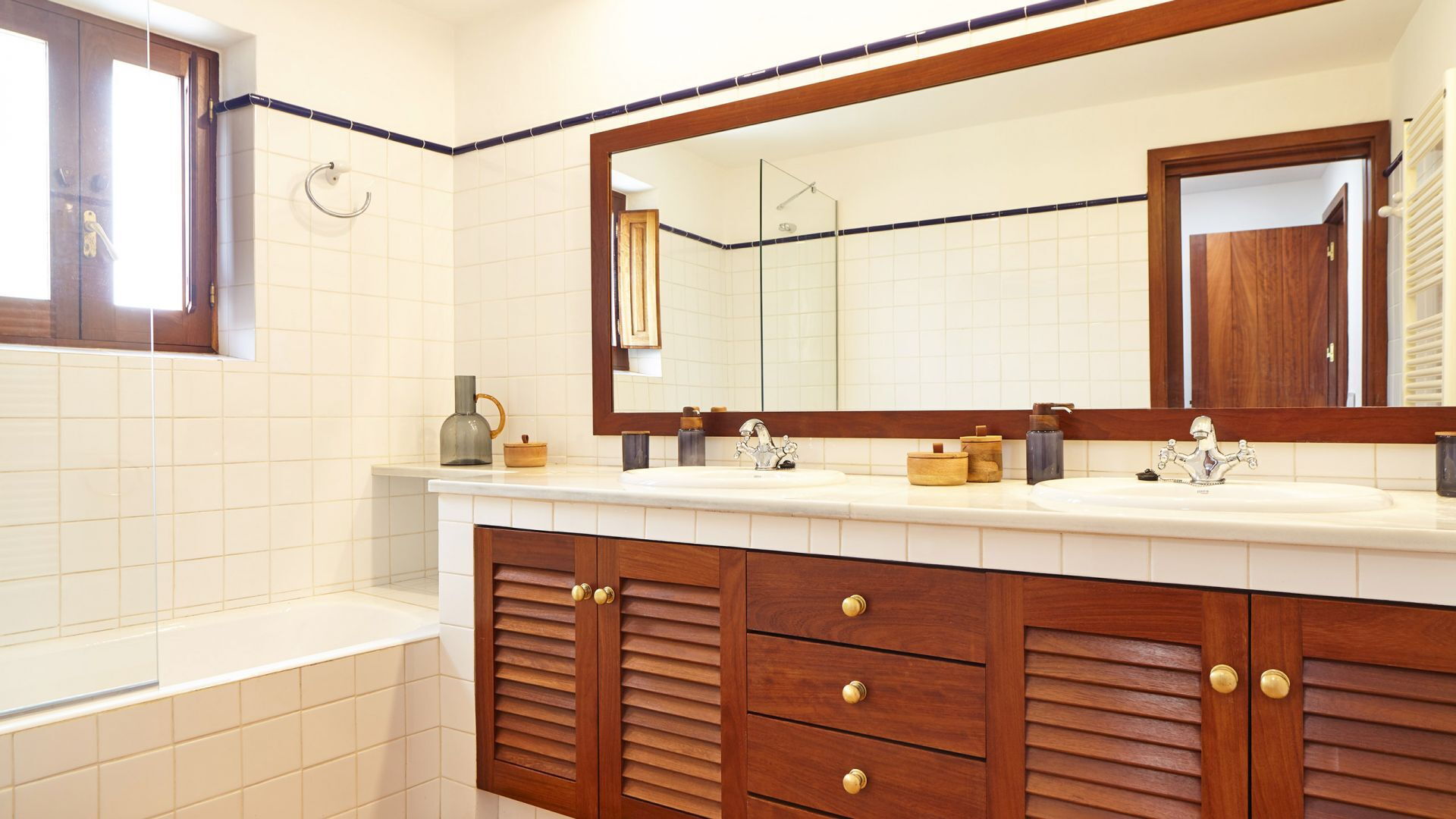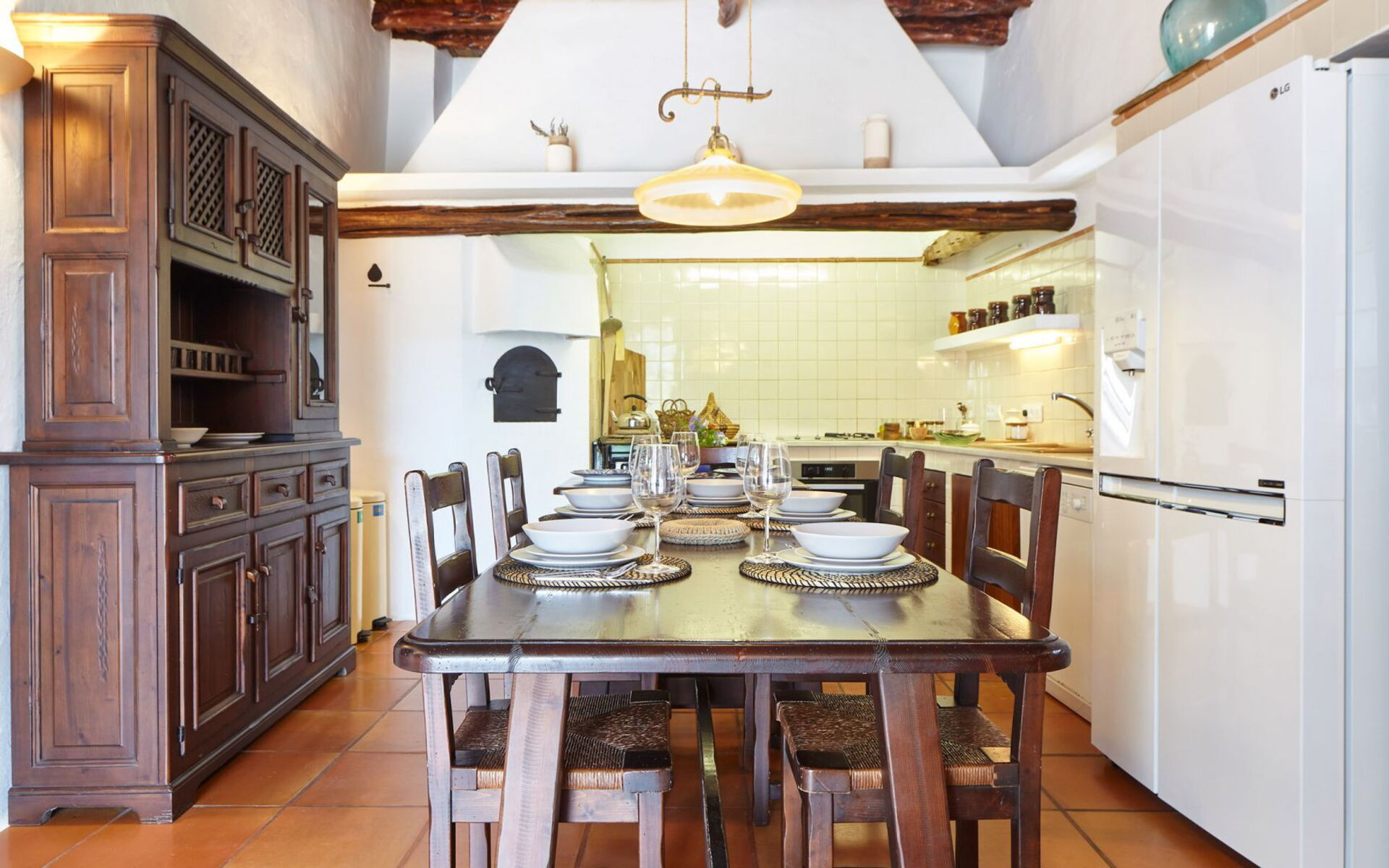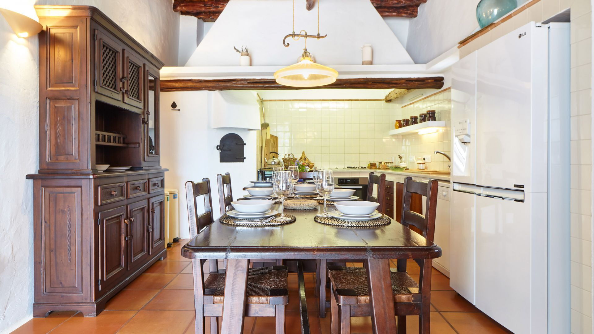 Het huis zelf volgt een typische traditionele stijl, met al zijn karakteristieke kenmerken behouden tijdens de renovatie die in 2020 werd voltooid. Het interieur behoudt de charme van een oude landelijke finca, met veel gebruik van hout in contrast met de witte muren, aangevuld met moderne voorzieningen die naadloos zijn geïntegreerd.