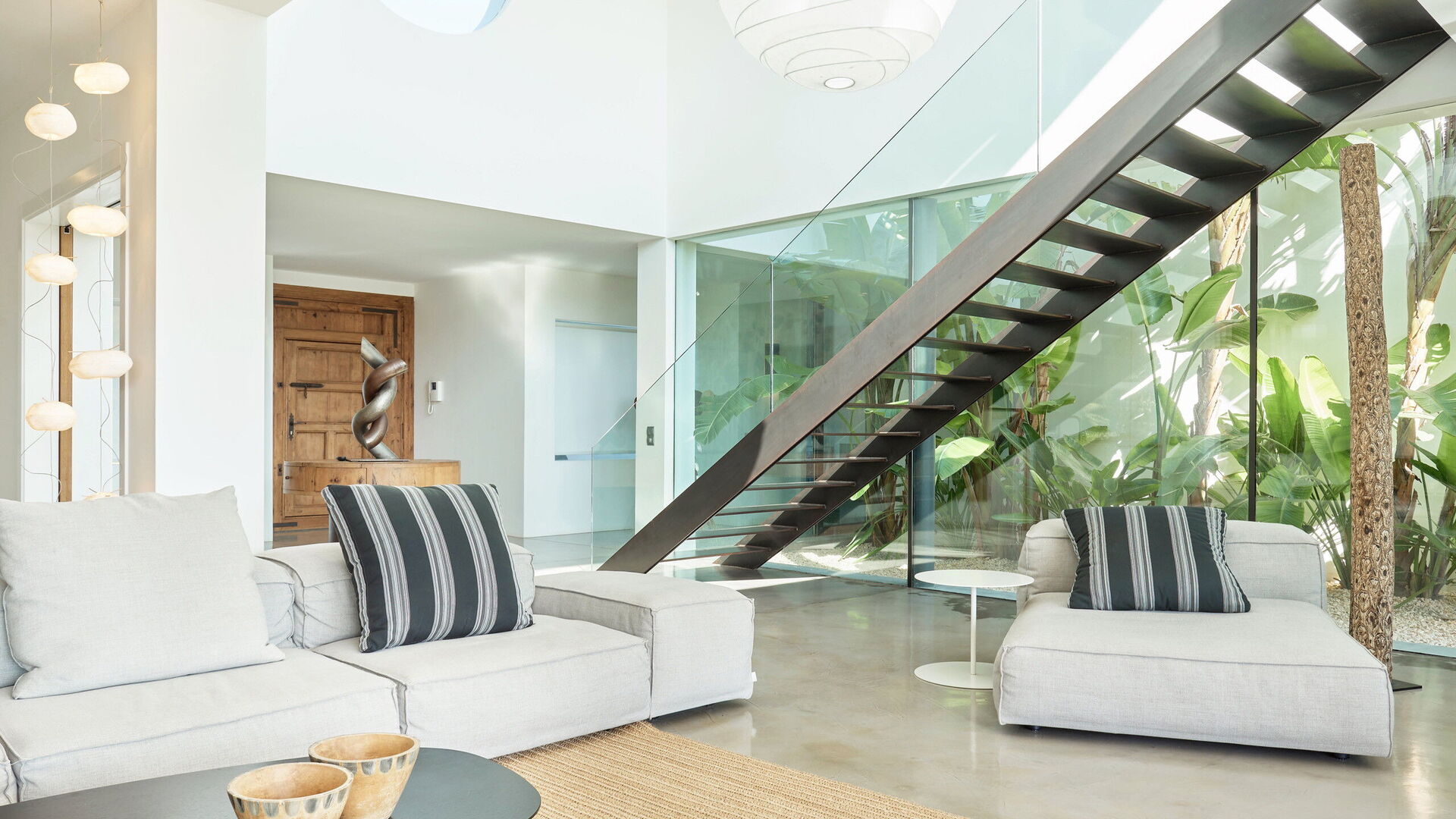 De interieurs van Martini weerspiegelen perfect de zeer moderne en minimalistische aanpak, waarbij wit domineert en hoogwaardige materialen overvloedig worden gebruikt, waaronder bijzonder interessante glazen en stalen elementen die de ruimtes op doorslaggevende wijze karakteriseren. De bovenste verdieping, met een prachtig uitzicht, wordt volledig in beslag genomen door de grote slaapkamer met een aangrenzend kantoor, terwijl de extra 3 gastenkamers zich aan een kant van het pand bevinden met directe toegang tot de tuin, allemaal met dezelfde uitstekende kwaliteitsnormen en technologische voorzieningen.